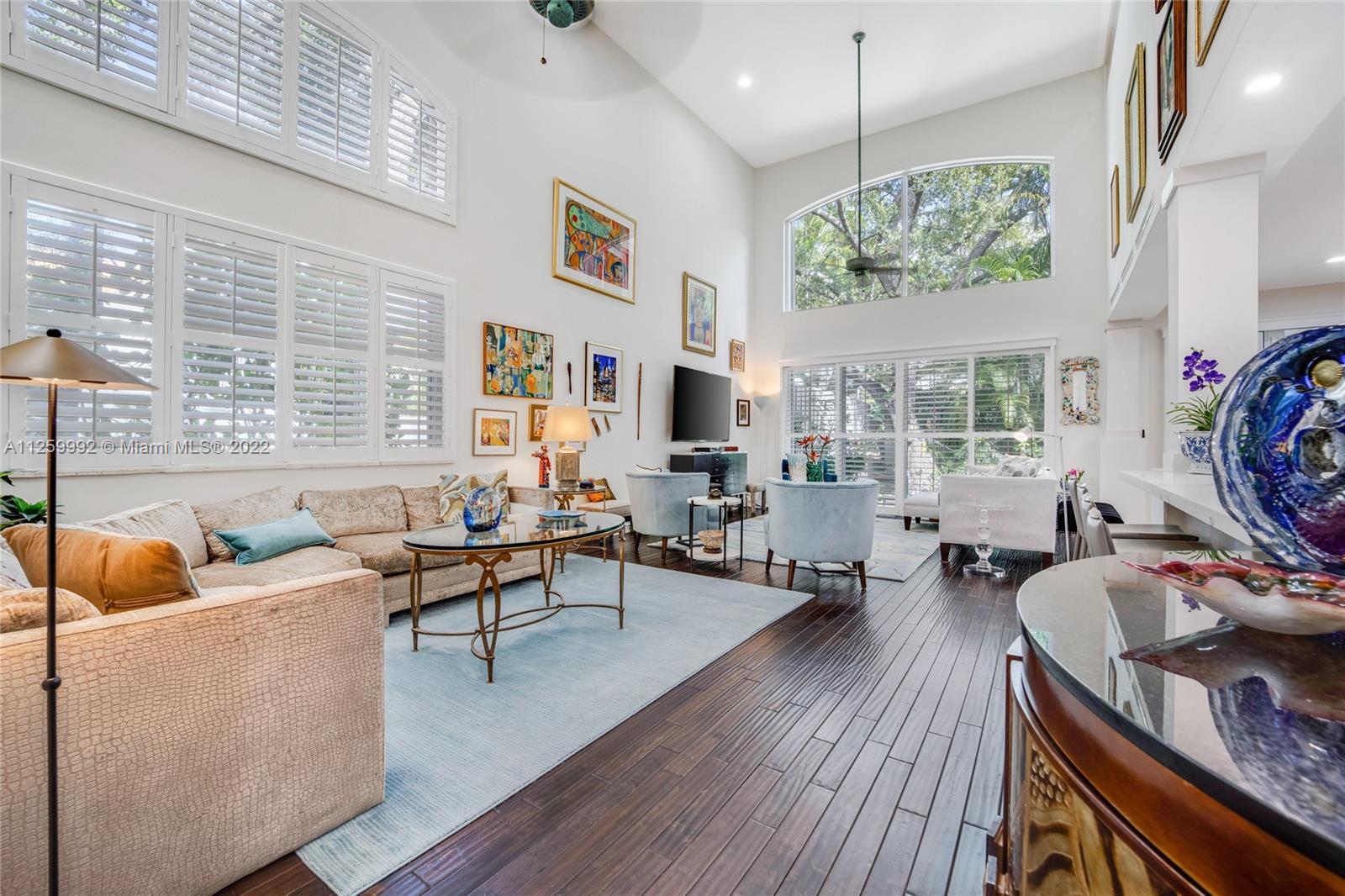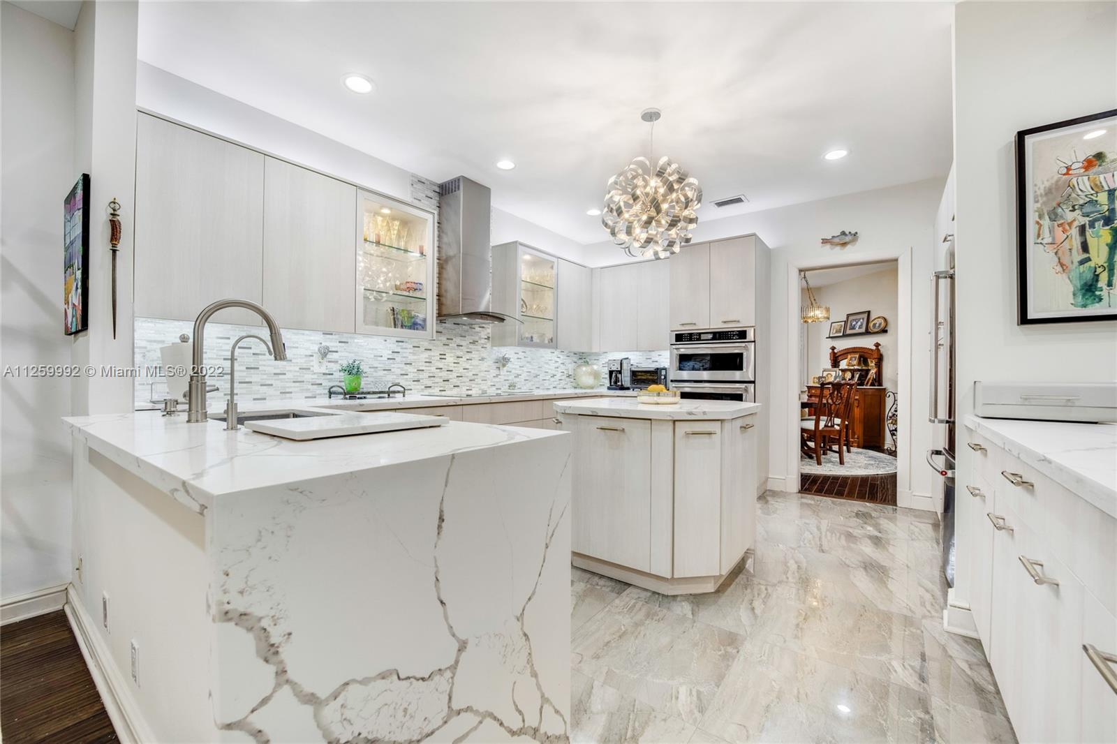 Rarely available end unit on large lot in 24-hour manned, gated community of Swan Lake. This gracious villa has over 3000 sq ft, 3 bed/3 bath (one on first floor) and a bonus room which could easily be converted to a fourth bedroom. The large living & dining area have volume ceilings & ample windows which let in great light. The home has plantation shutters, real hardwood floors & strand woven bamboo flooring. The kitchen was totally remodeled w/custom cabinetry, stainless steel appliances, inc gourmet range hood & quartz counters w/waterfall edge. The bathrooms were also totally redone w/the finest materials & plumbing fixtures. The spacious Master Bath has a freestanding tub & separate shower, 2 vanities & separate water closet. Also, new impact windows & an elevator! Hurry, won’t last!