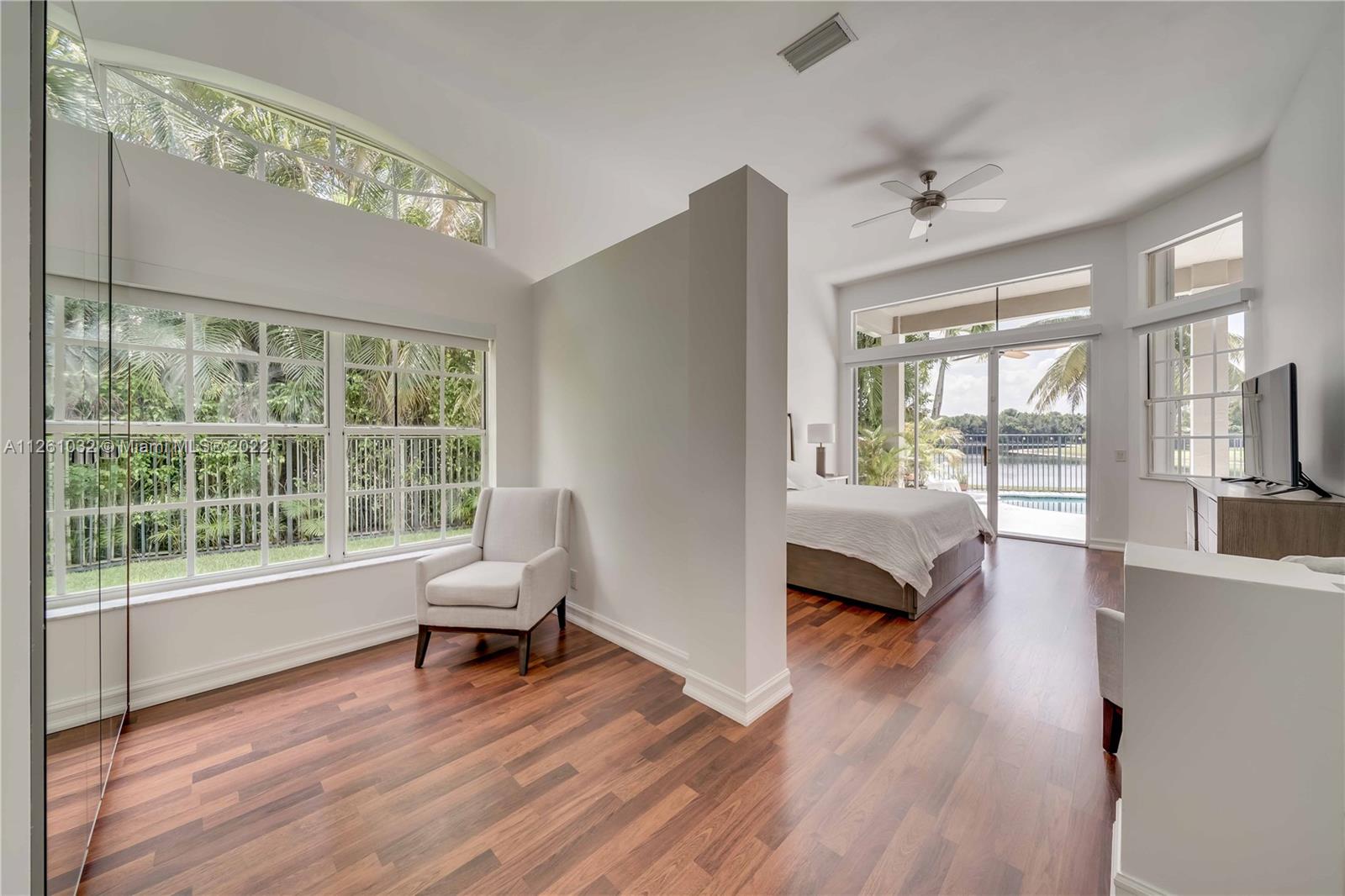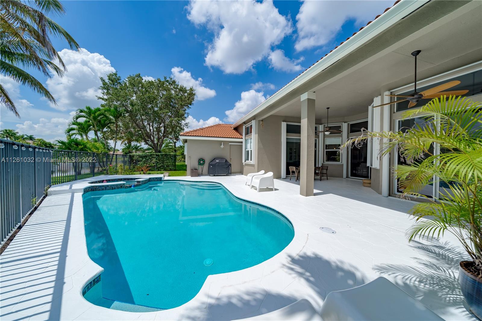 Open high-ceiling floor plan with one of the best lake views in Weston. 5 bedrooms and 3.5 bathrooms in one story. Spacious formal dining, family, living rooms. Well mantained house. Stainless newer appliances. Accordion shutters and new roof (2018). Heated pool and jacuzzi.