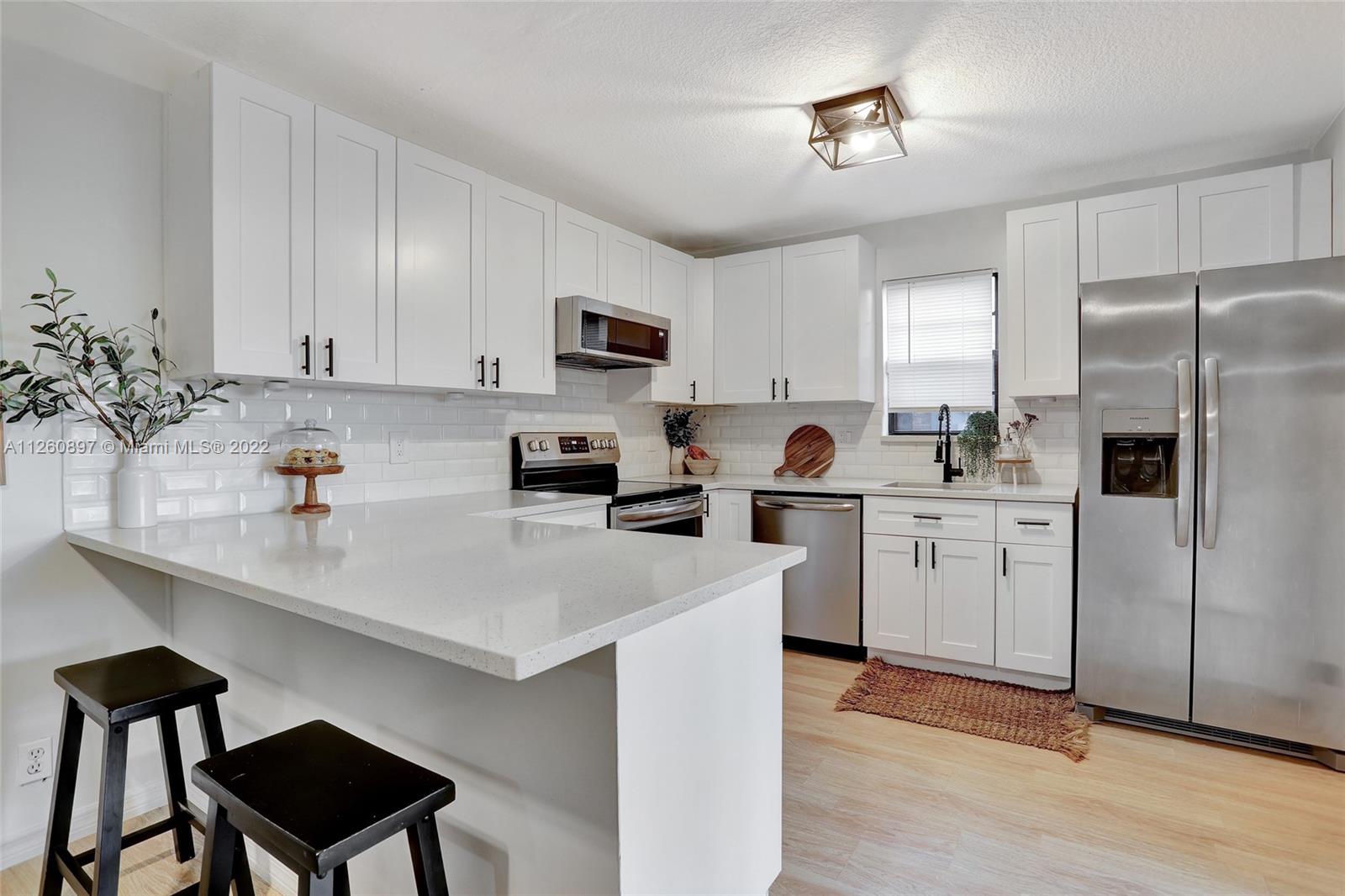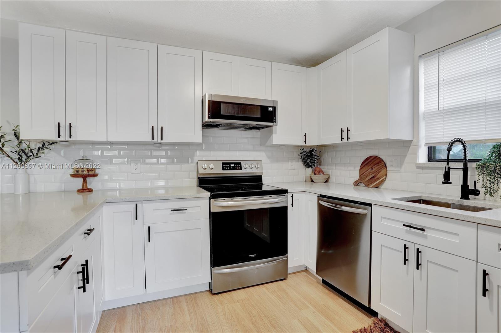 This townhome looks like it was renovated by an interior designer! Absolutely beautiful 3 bed 2.5 bath townhome with private fenced courtyard and a brand new roof replaced in 2022! Light and bright kitchen featuring white shaker cabinets with black hardware, subway tiles and stunning quartz countertops. Lovely and durable vinyl throughout the home. All bedrooms are located upstairs making it a perfect floorplan for separating entertaining space from living space. Oversized bedrooms and large closets in all rooms. The upstairs windows are hurricane impact resistant! Fantastic location close to highways, hospital, grocery stores, dining and shopping.