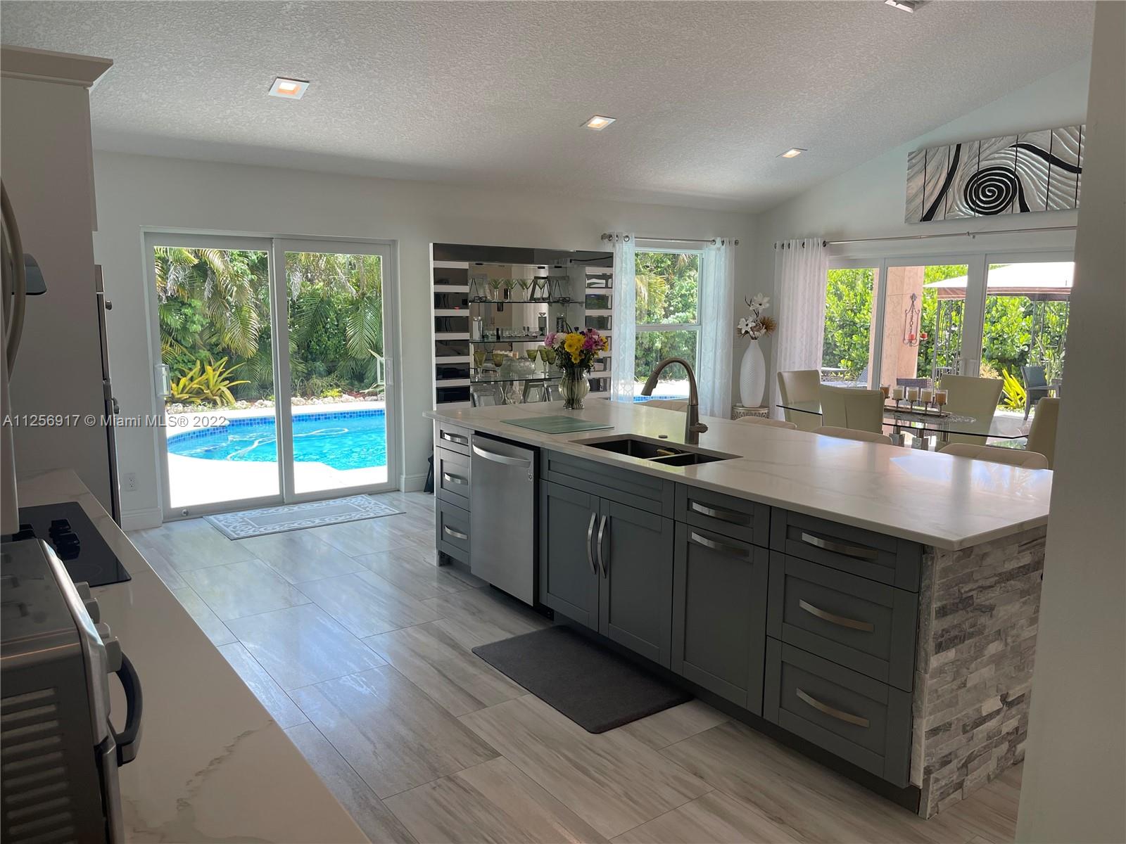 SPECTACULAR updated open layout 4 bed/3bath. 2018 Roof, Hurricane Impact doors & windows, 2019 Signature Series variable speed energy eficiente AC, 2020 variable speed energy efficient pool pump and multicolor pool LED light. Awesome remodeled Kitchen with huge quartz countertop slab and plenty of cabinets with drawers. All 3 bathrooms redone. Porcelain floor tile entire interior including closets. Zero popcorn ceiling, all updated with knockdown and LED ceiling lights. Great Landscape & sprinkler system. Close Sawgrass mall and main highways.