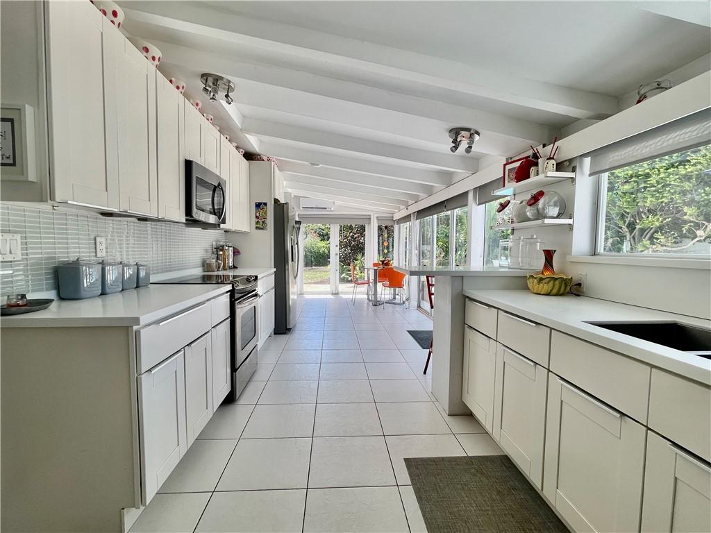 Pride of ownership shines as you walk through the door of this 3 bedroom 2 bath Mid-century modern beauty. Cathedral ceilings greet you with exposed beams throughout the entire house. Enjoy the open concept living room/dining room with a wet bar. The modern eat in kitchen with stainless appliances looks out to a very private swimming pool with a tropical landscaped extra large backyard with work shed. French doors from the living room lead to a private courtyard/patio area. Bathrooms/ADA requirements. What the seller loves about this home: A private tropical paradise conveniently located within minutes of I-95, I-595, Florida Turnpike, downtown, the Fort Lauderdale airport and Hard Rock Casino Hollywood. Backyard access through double privacy gates for a car, boat, or RV parking.
