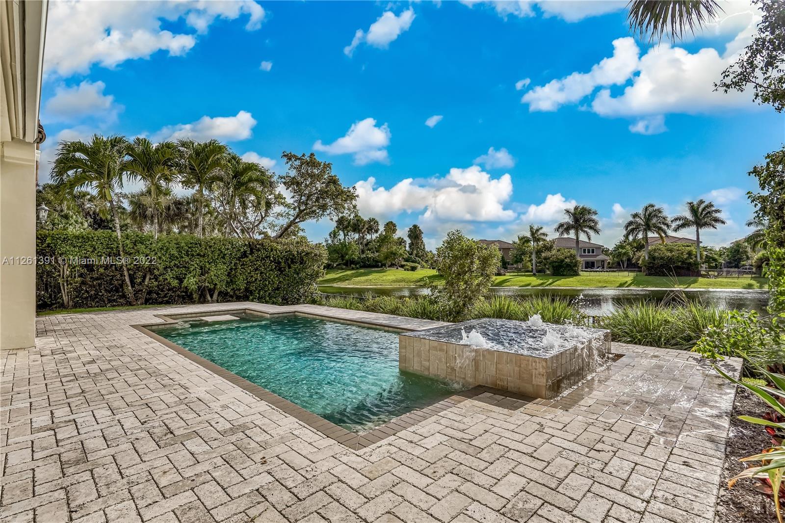 To be featured on HGTV House Hunters! Beautiful airy expanded one story ranch DeSoto model on oversized lakefront private lot with salt water pool, spa and travertine pavered fully fenced backyard and courtyard. Home has beautiful contrast gourmet kitchen w. Wolf appliances and SubZero cabinet-front refrigerator, office, formal dining room, oversized walk-in custom closets, all impact windows and doors, new composite wood floors, freshly painted and 2-zone central A/C system. Separate private guest house - 1 bed, full bath, kitchenette, balcony and separate central A/C. Pavered drive and 2 car garage - 1 garage for main house and 1 for guest house. All while enjoying magical life at gated Parkland Golf & Country Club - private golf course, restaurant, bar, gym, activities and more!