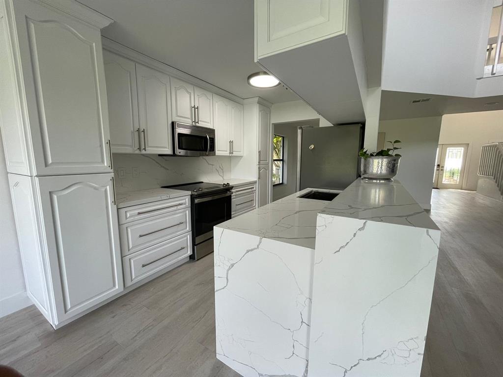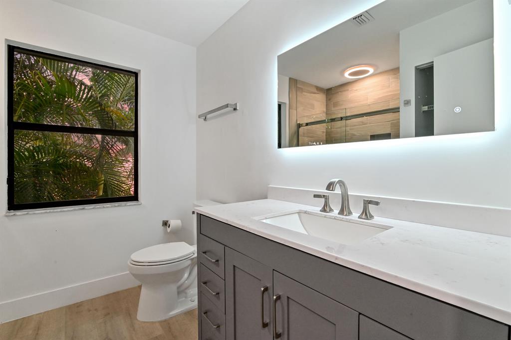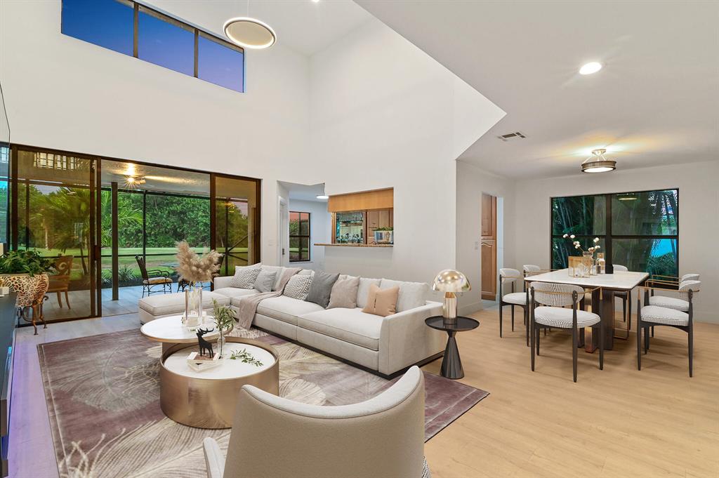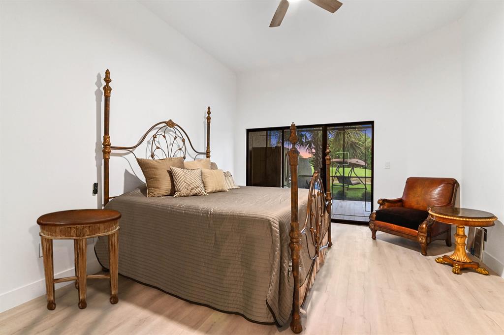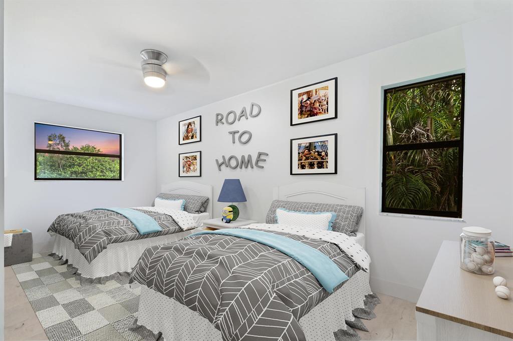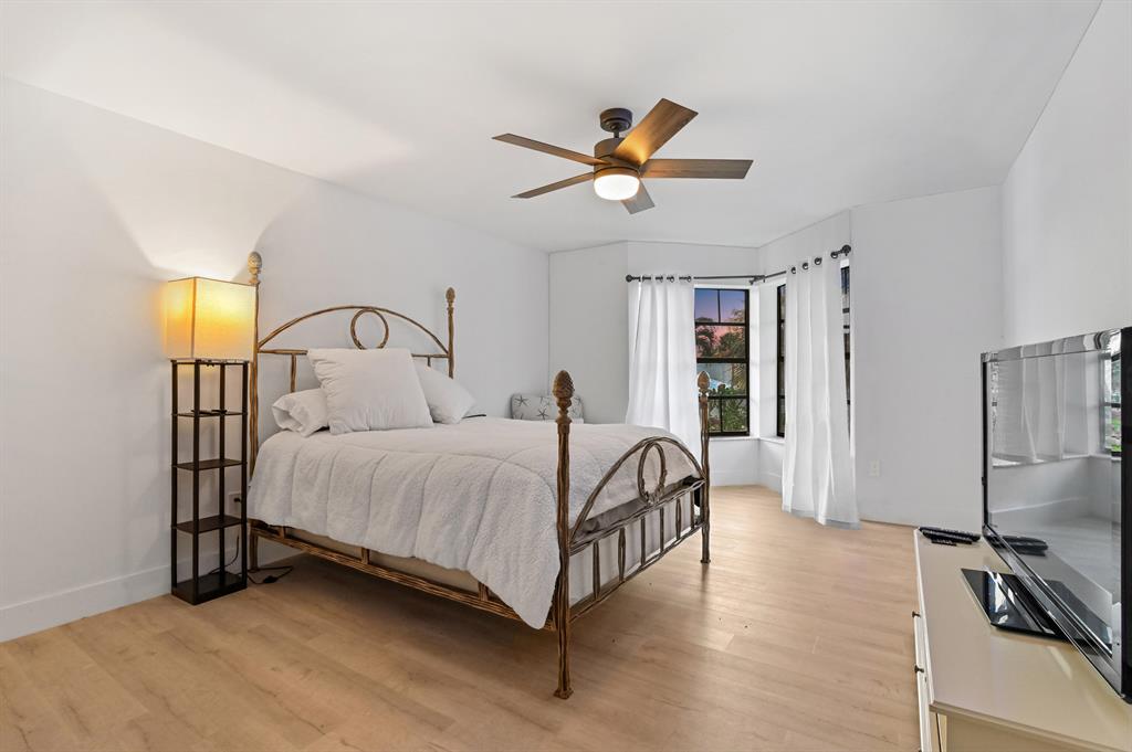 Beautifully crafted 4 bdrm/3 bthrm contemporary home located on a quiet cul de sac in the sought after gated community of Boca Woods. Featuring the master bedroom and second bedroom on the main floor. Almost everything in the home has been articulately redone, including the flooring and bathrooms. Fresh interior and exterior paint as well as new landscaping. Large living room area for entertaining accompanied by an oversized renovated back patio with great views of the lake.Membership must be purchased $95,000.