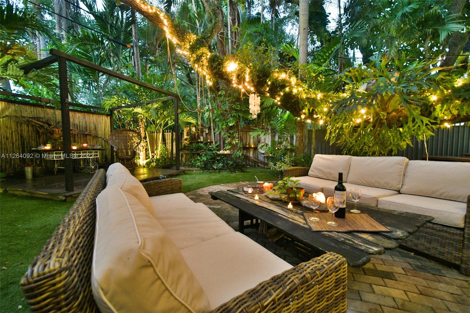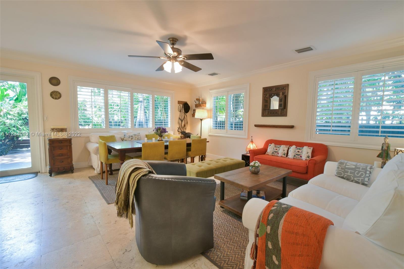 Welcome to your very own private tropical paradise within the Platinum Triangle. This magical home sits on a quiet tree lined street just minutes away from Sunset Elementary, consisting of 3 bedrooms plus an office, 2 walk-in closets, 2 bathrooms, 1 car garage, and a 6 plus car driveway. This gorgeous home features an open gourmet kitchen with granite countertops and a breakfast bar overlooking the family room. Step into the beautifully renovated backyard boasting a top of the line dirt free turf, an outdoor bamboo shower supplying hot and cold water, a new wooden deck with warm perimeter lighting, and a brand new perimeter anti-mosquito system. , impact windows and doors, plantation shutters, marble floors and alarm system. NEW PRICE, seller motivated!
