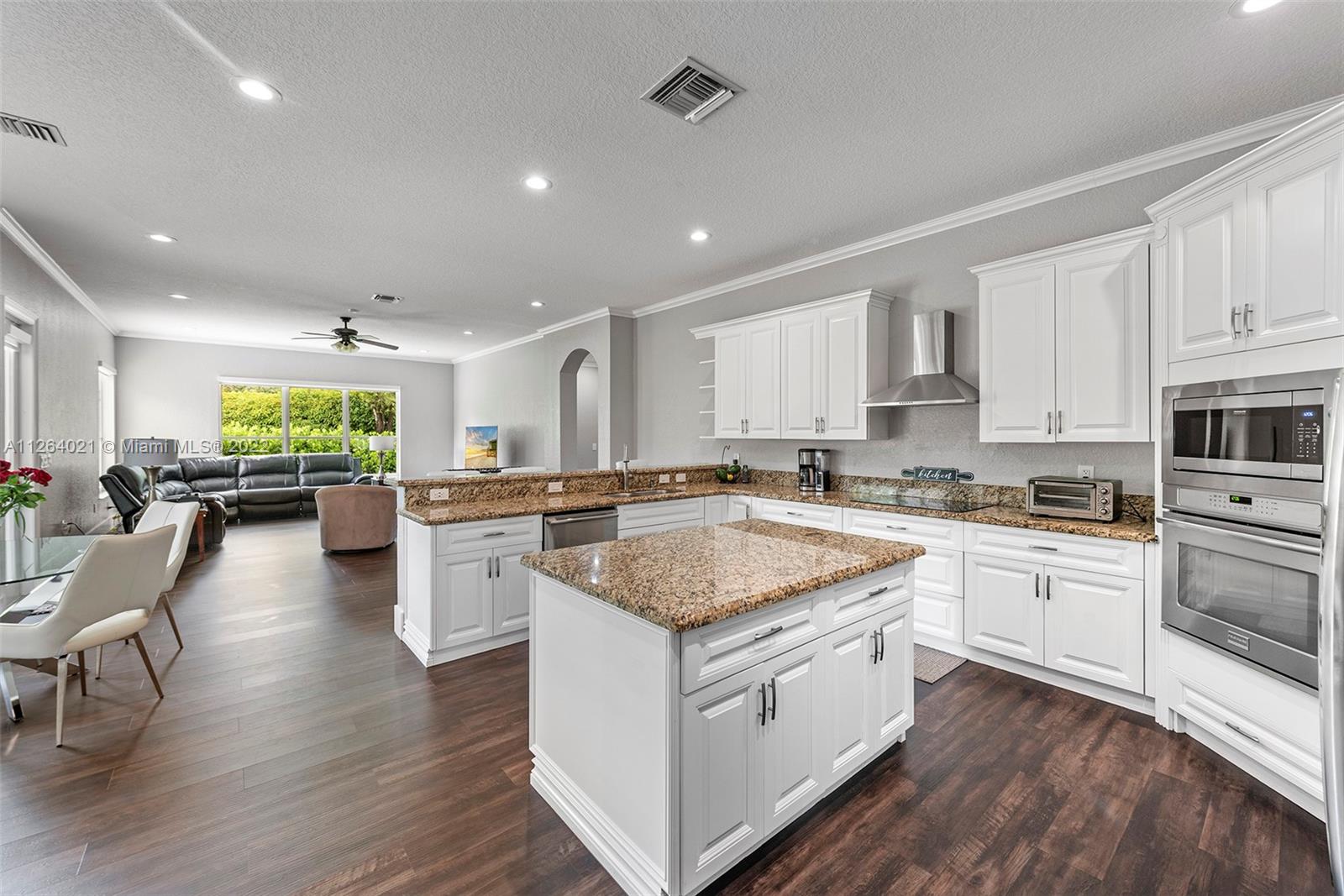 Captivating and beautiful renovated residence with a triple split floor plan, five bedrooms, three and one half bath featuring exquisite upgrades, very private & spacious living. The home is situated in the idyllic surroundings of the resort style community of Sunset Lakes. Luxury abounds throughout the home, with high ceilings and filled with natural light, bright spaces and clean lines. The impressive main suite features a custom master bath with spacious shower, top of the line fixtures, built out walk-in closets and serene views to the pool and garden. The open concept kitchen has stainless steel appliances and flows to the breakfast area and family room. Casa Caliterra is a great family home located in one of the most coveted communities in West Miramar.