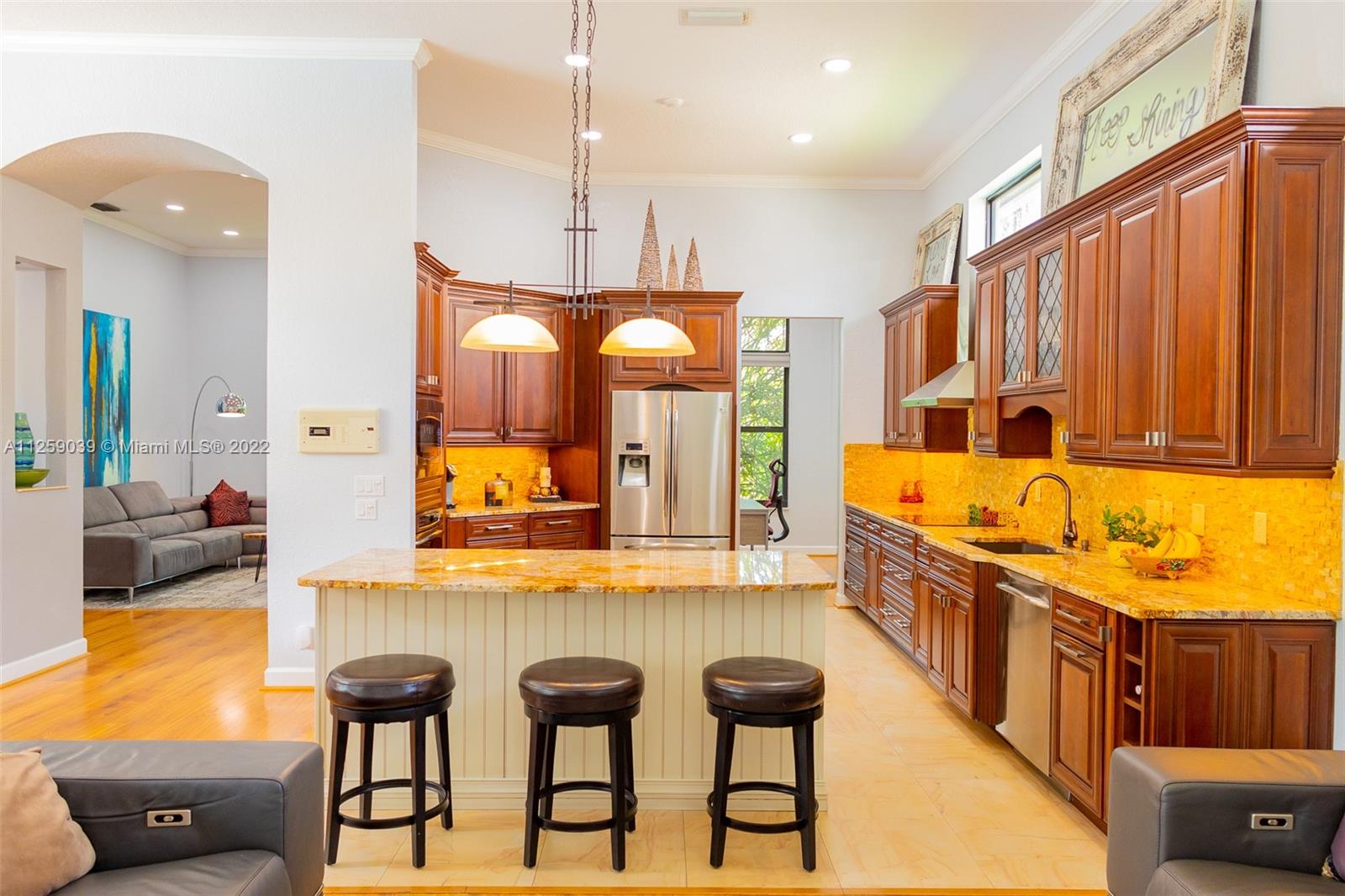Paradise Awaits In your Tropical Oasis, Exquisite Courtyard Home in Gated Community of Mariners Cove, Large Premium Lot, Guest Quarters overlooks Pool, Perfect for Home Office. Impact Windows and Doors Throughout, 5 Bedrooms, 3 and One-Half Bathrooms, 3 Car Garage, Kitchen remodeled and exrended, Large Island, Brazilian Tile Floors, Top Of The Line Stainless Steel Appliances, Thomasville Cupboards, Granite Counters. Top Of The Line Wood Floors, 12' high Ceilings, Custom Window Blinds on First Floor, Master Bedroom Located on 1st Floor Features Black out Blinds, Step Into Your Spa Like Master Bath to Unwind. Pool Resurfaced in 2021, New AC 2021, New Water Heater 2020, Hi Hats and Recessed Lighting installed on Fist Floor in 2022, Interior House Painted 2021. Close to Sawgrass Expressway.