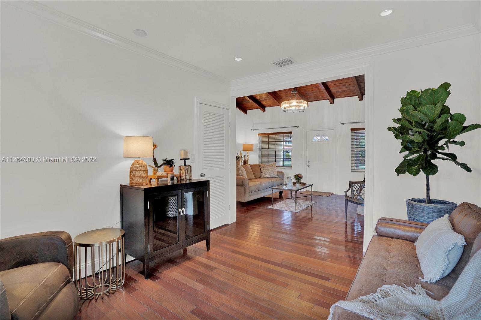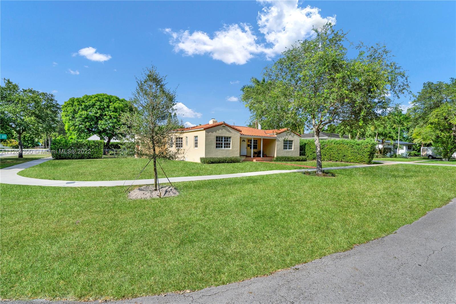 Step inside this charming and immaculate home situated on an oversized corner lot in the highly sought-after neighborhood of Miami Shores! This well-kept residence features a split floor plan with 3 bedrooms, 3 full baths (2 remodeled), single-car garage, large dining room for lots of entertaining, and much more. Other unique features include the living room high ceilings that boast refinished exposed beams, tastefully re-designed fireplace, and a welcoming covered front porch. Dreaming of being poolside in a large private backyard for the kids to play? You've got plenty of room to add it all, plus a mature fruit-bearing mango tree to go with it. Between the A-B rated school district and only walking distance to the Miami Shores Rec Center & Country Club, there's no place you'd rather be!