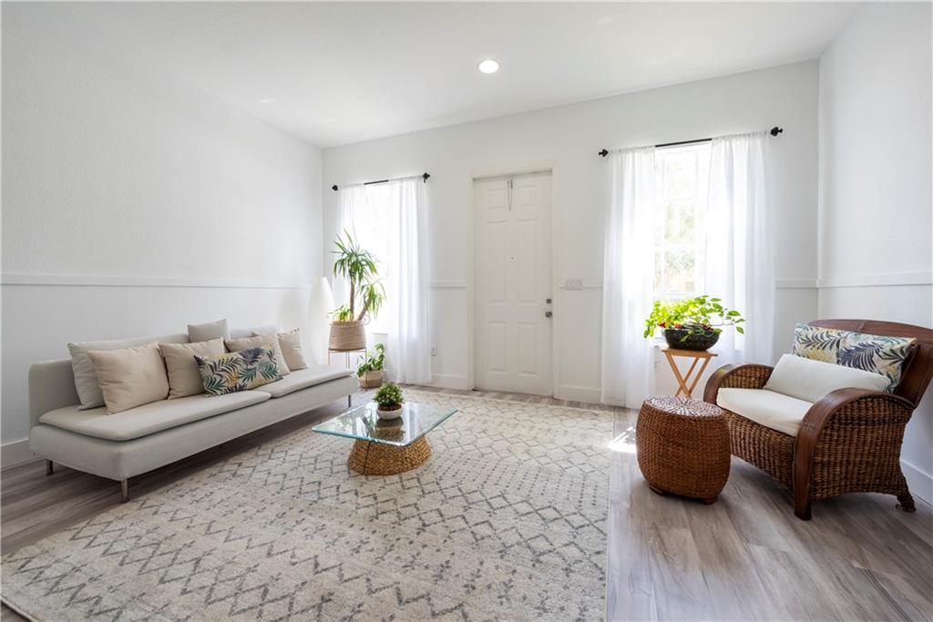 THIS 2 BR/2.5 BA TOWNHOUSE IS SITUATED IN GUARD GATED COBBLESTONE - A RESORT STYLE COMMUNITY WITH SWIMMING POOL, CLUBHOUSE, GYM & MANAGEMENT ON SITE. EASY ACCESS TO FREEWAYS, FASHION MALLS, FINE DINING & HOSPITALS. NEW CONTEMPORARY WOOD LAMINATE FLOORING THROUGHOUT INCLUDING STAIRWAY. EACH BEDROOM HAS ITS OWN BATHROOM & MAIN SUITE HAS A LARGE WALK-IN CLOSET. KITCHEN HAS RECENTLY BEEN UPDATES WITH NEW COUNTER TOPS, SNACK BAR COUNTER, TOP LINE APPLIANCES, UPGRADED 42" WOOD CABINETRY. WASHER/DRYER UPSTAIRS. ASSIGNED 2 CAR PARKING JUST OUTSIDE UNIT WITH PLENTY OF GUEST PARKING. REAR ENTRANCE AS WEILL WITH PRIVACY REAR PATIO AND SPACIOUS FRONT YARD. IMMACULATE!