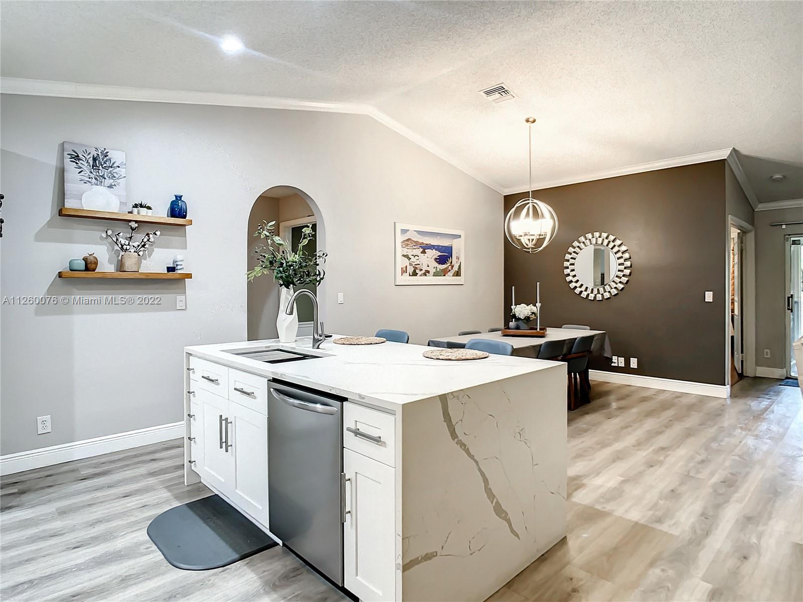 Pictures are worth a thousand words. Welcome to this Beautiful home In Davie Florida. Your new home is located on a double cul-de-sac block. It has an updated kitchen with quartz countertop and backsplash. Cathedral ceilings, stamped concrete driveway. The roof is 7 yrs old in additional it has a screened in patio, crown molding. The master bedroom has a walk in closet with enough room to fit his clothes too. Double sink vanity so you don't have to interrupt her while she is getting her make up done. Washer and dryer in the 2 car garage and the best part is the LOCATION. 5 minutes to and from 595, sawgrass and i75. If I did not list enough reasons for you to say YES to this address then come and fall in love yourself.