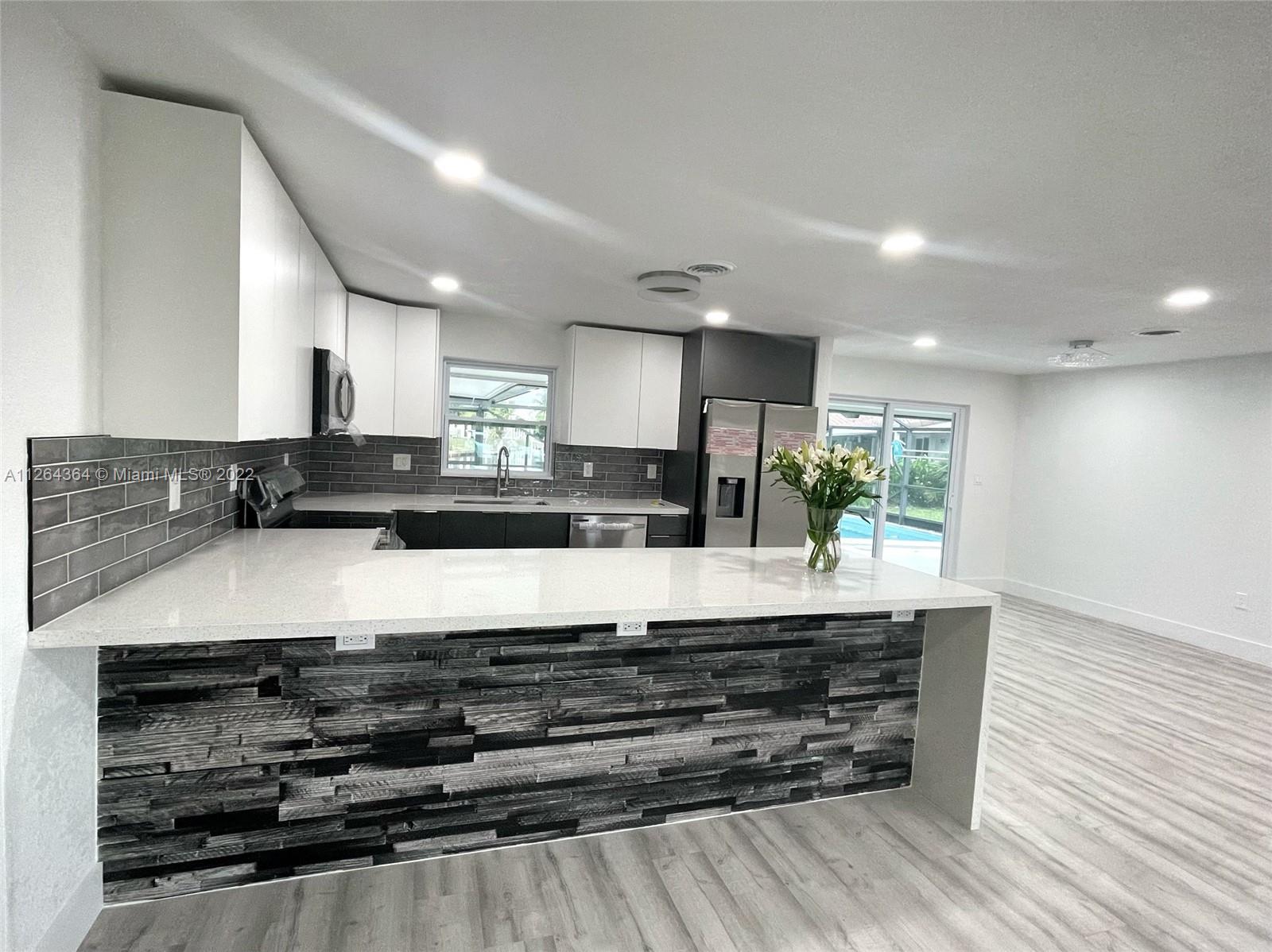 SPECTACULAR HOUSE! WATERFRONT WITH POOL! Recently renovated 100% with luxury details, this sheltered waterfront home in Pompano Beach is ready for you to move in! REATHTAKING WATER AND SUNSET VIEWS IS DREAM HOME. PERFECT FOR ENTERTAINING WITH A SCREENED PATIO- LARGE CORNER LOT. Beautiful kitchen with island, quartz counters, new cabinetry and appliances high technology(Wifi-Bluetooth).Stylish gray plank waterproof vinyl flooring. Both bathrooms in the House are remodeled and feature stand up showers with sleek tile and new vanities. Cozy Space for Washer & dryer inside. Covered car port. Freshly painted throughout. This Beatiful House with Renewed pool,New windows and floors, total change of plumbing and update of the electrical new Auto Sprinkler system it is a jewel!