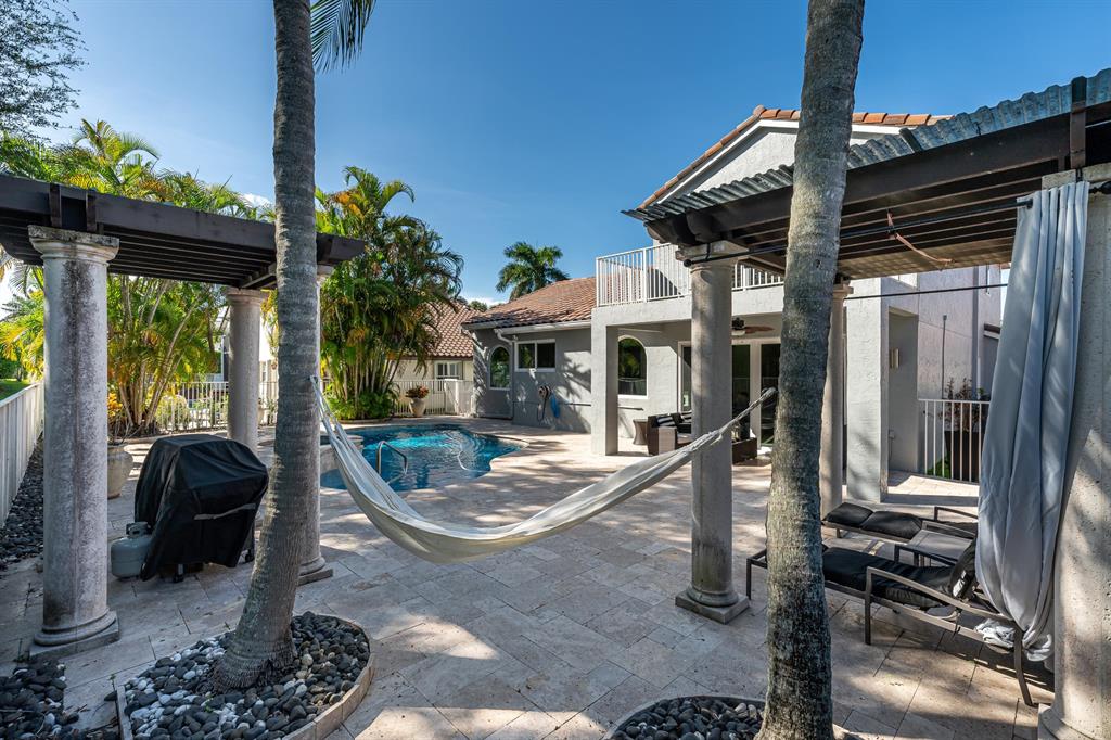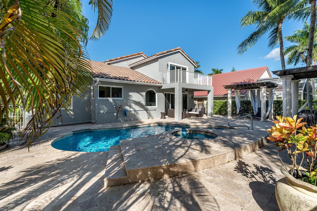 Fully Renovated home in Gated West Boca Community! ALL IMPACT GLASS! Newer appliances, New A/C! Newer Pool heater and hot water heater. Home features 4 beds and 3 full baths. Modern glass staircase leads you to 3 upstairs bedrooms. 1 bed and 1 full bath downstairs. Backyard features pool and hot tub surrounded by travertine tiles in a serene, private setting! 24 hour security, community pool and fitness center! Close to Turnpike and A rates schools! Can be sold furnished!