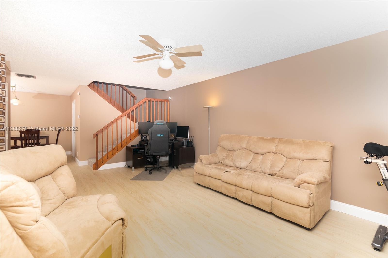 Meticulously kept town home in the heart of Cooper City. Located in Camelot Gardens of Rock Creek, this 2-story town home offers a great sense of ownership pride! Flooring (wood/carpet/baseboards) were all just replaced. Open kitchen allows all spaces to flow into each other comfortably. A/C is within 3 years old. Completely fenced in Courtyard provides privacy, tons of space and can be utilized in many forms. Property comes with 2 assigned parking spaces and an abundance of guest parking. Centrally located close major highways, shopping and dining, entertainment and recreational parks. Longer closing preferred.