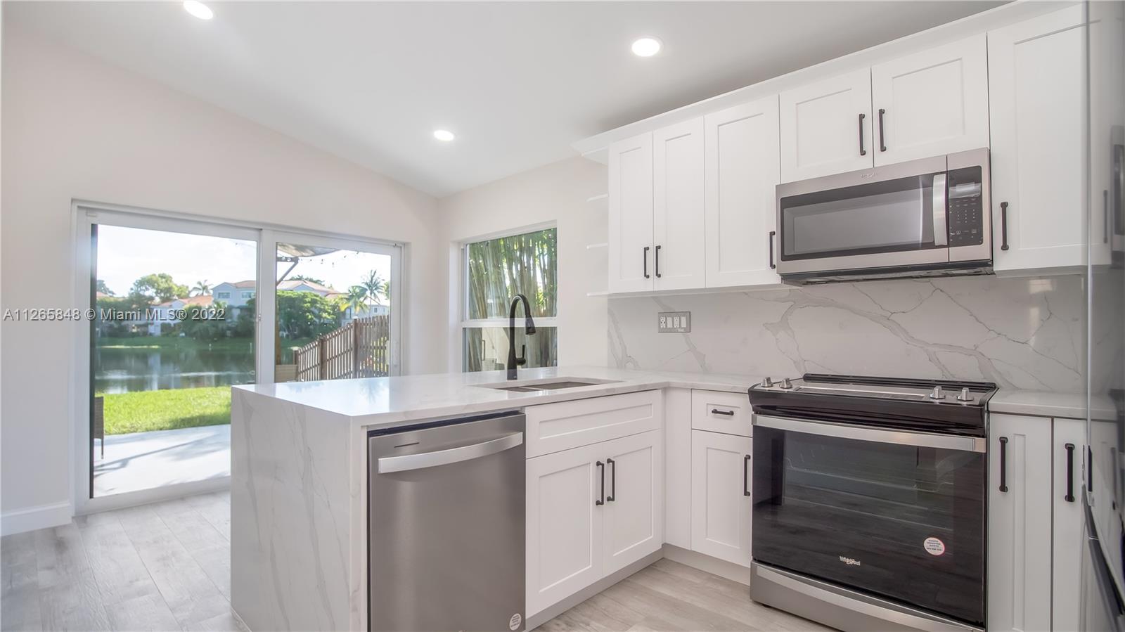 SPECTACULAR WATERFRONT 3 Bed/2 Bath One Story home with 1 Car Garage located on a quiet cul-de-sac in the Residences of Sawgrass Mills! Not just "updated," - the interior is BRAND NEW! - from the beautiful porcelain tile throughout to the ceilings with LED lighting. Gorgeous NEW KITCHEN with White 36" Shaker Cabinets, Quartz Countertops, Backsplash and Waterfall with fingerprint resistant ALL NEW appliances. COMPLETELY NEW BATHROOMS, Painted Inside AND out! All New Interior Doors with Modern Hardware, New Baseboards and Trim, New Light Fixtures and Fan. Hurricane windows and Doors! New A/C (Outside Unit). LOW HOA! Nestled back in a Peaceful neighborhood, on a LAKE, with and OVERSIZED DOCK! Minutes away from Sawgrass Mills Mall and Major Highways. 10 minutes from FLL Airport