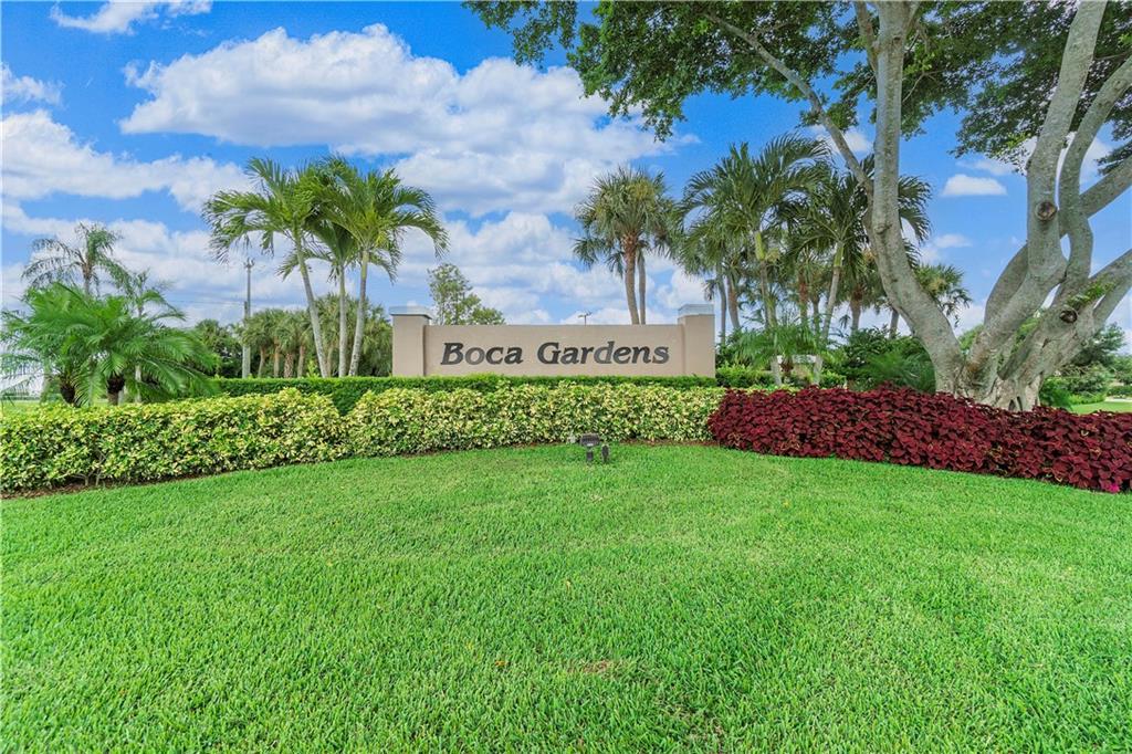 Wow What a price & Phenomenal View We Have Here! Light & Bright Corner unit 2 Beds 2 Baths, Pristine. Appr 1350 under air, WIDE OPEN Floorplan, private screened patio and more. Large master and 2nd bedrooms, oversize 1 car garage, Accordion shutters, New AC, Neutral tile throughout the living area, Vaulted Ceilings add to the spacious feel * 2 Entertaining areas. Boca Gardens is An Immaculate, well manicured and Expansive All Age Community with numerous amenities including; multiple pools, clubhouse, tennis, pickleball, Playground area ++. The association is Fee Simple and the Fees include roof replacement and exterior insurance. No Application necessary