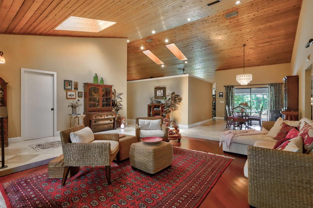 GORGEOUS lake front home in New Floresta, one of Boca Raton's premier communities! You'll love this 3 bedroom 2.5 bath the moment you walk through the double door entry and get welcomed by the soaring tongue and groove cathedral ceiling and travertine tile with skylights that perfectly brighten the open floor plan. A large kitchen, perfect for entertaining guest, with a beautiful view of you private tropical paradise. The backyard is well designed for your private enjoyment with a beautiful tropical land scape surrounding the luxurious pool and covered patio, with your very own fruit trees right outside the gated area where you can pick fresh which go perfectly with a summer pool day. Great location, In close proximity to Town Center Mall, parks, beaches, fine dining, and entertainment.