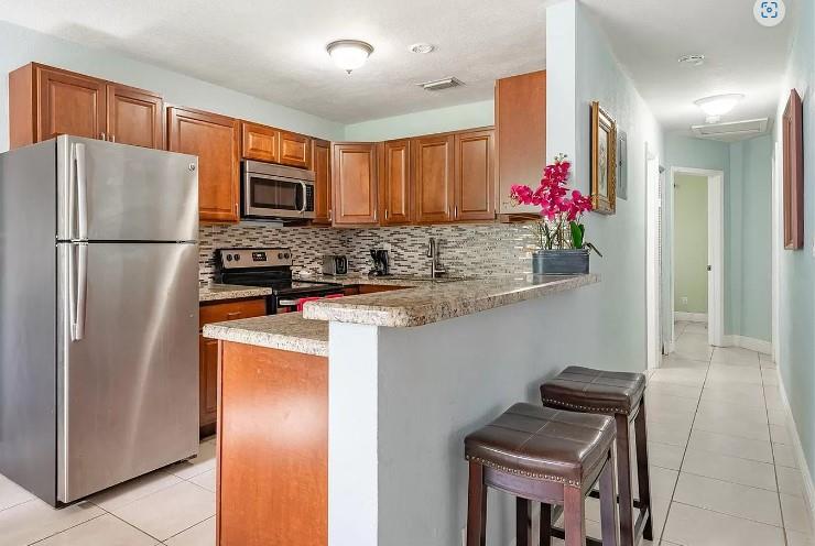 Cozy 3 Bedrooms, 3 full Bathrooms single family home with no HOA and renovated kitchen with granite countertops and Stainless-Steel appliances, with newer Washer & Dryer. Large spacious backyard to enjoy outdoor activities and plenty of land for a pool or garden. Relax and enjoy the fresh air under the Gazebo located at the backside of the home. One of the bedrooms has its own private entrance with a full bathroom, refrigerator, cabinets, sink, walk-in closet and A/C wall unit...a great secluded area that can be used as an efficiency or that can easily be converted as a third bedroom of the main house.