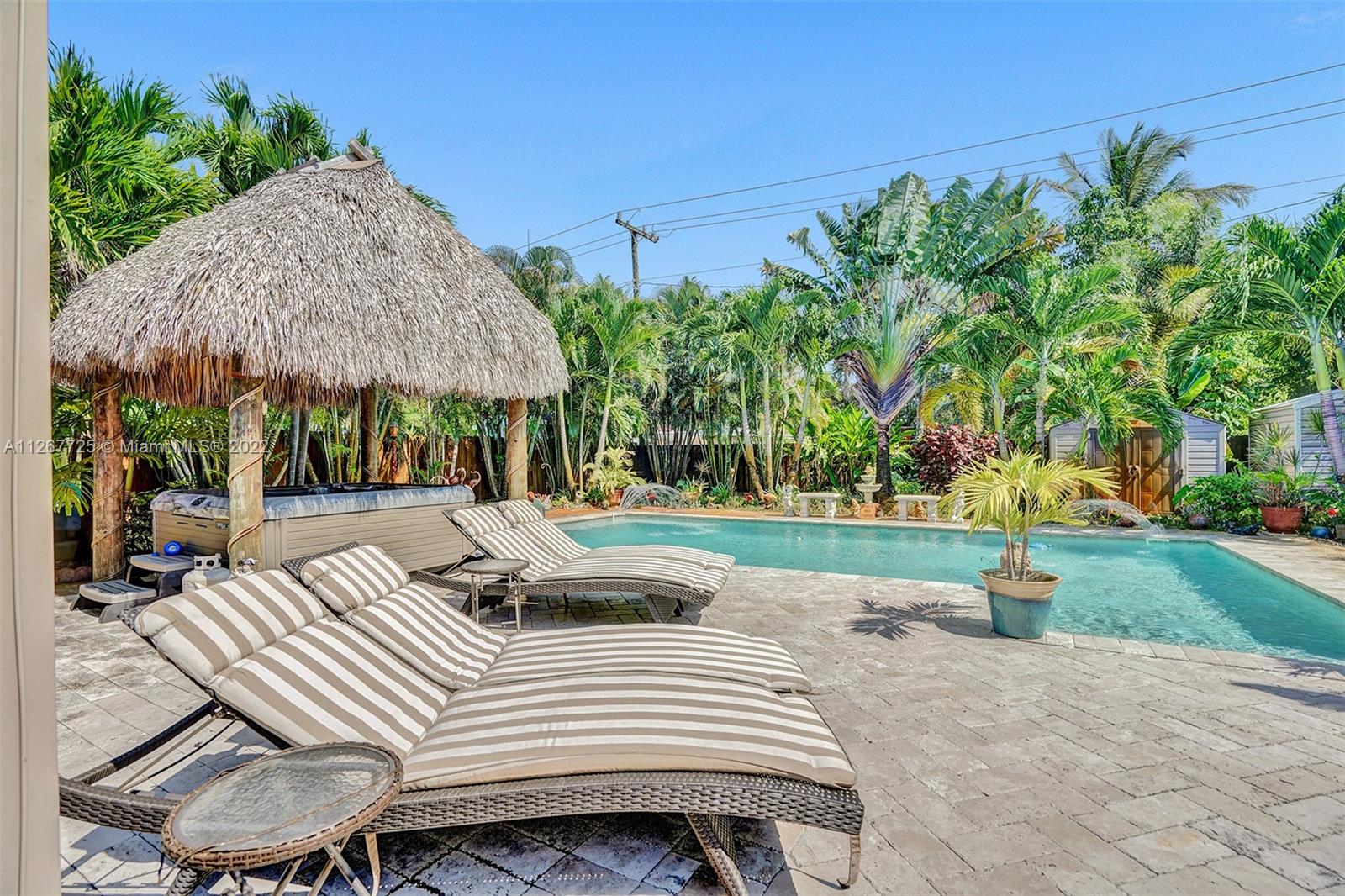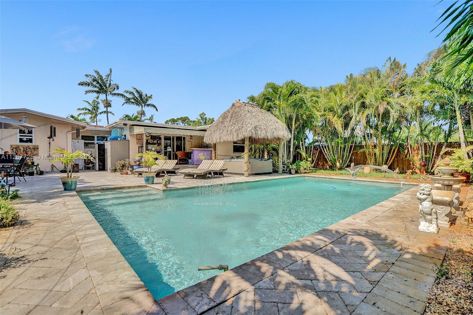 This 3 bedroom/2 bath/ 1 car garage pool home has been completely updated and has been meticulously maintained!! The backyard is stunning with high end etched/sealed marble pool deck, a tiki hut and new jacuzzi! The kitchen has granite countertops and stainless steel appliances. All the windows and doors are storm rated for not only safety..also insurance discounts!! The roof is in great condition/installed 2013, the AC is 2013, and the plumbing is PVC. The home comes with 2 sheds for storage and there are no restrictions for boat trailers or RVs in this neighborhood! Close to the beach, Las Olas, 95, 595, turnpike, the Fort Lauderdale Airport and the Fountains of Plantation! This would be a great family home, second home or luxury Air Bnb.