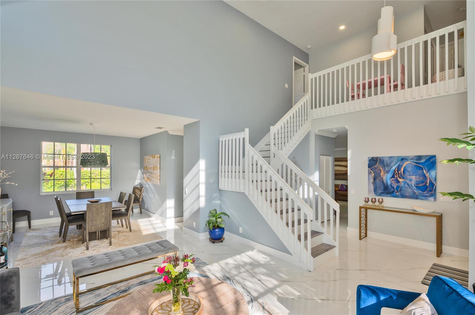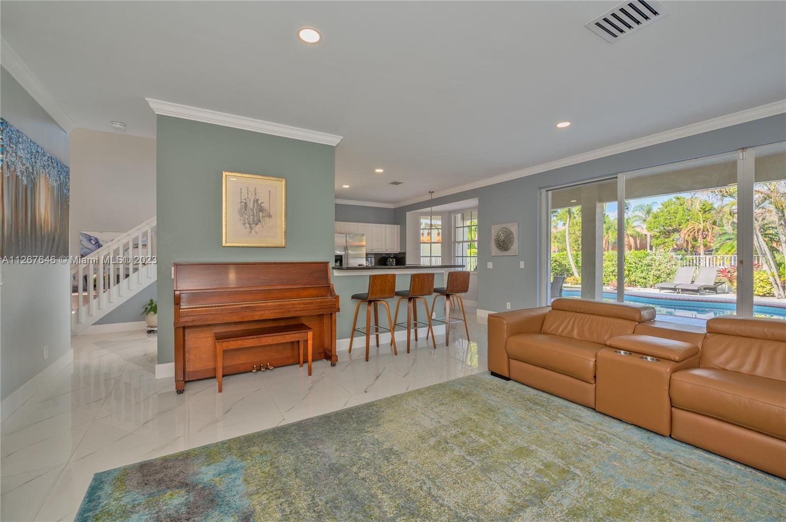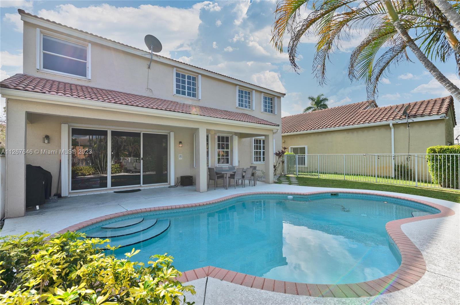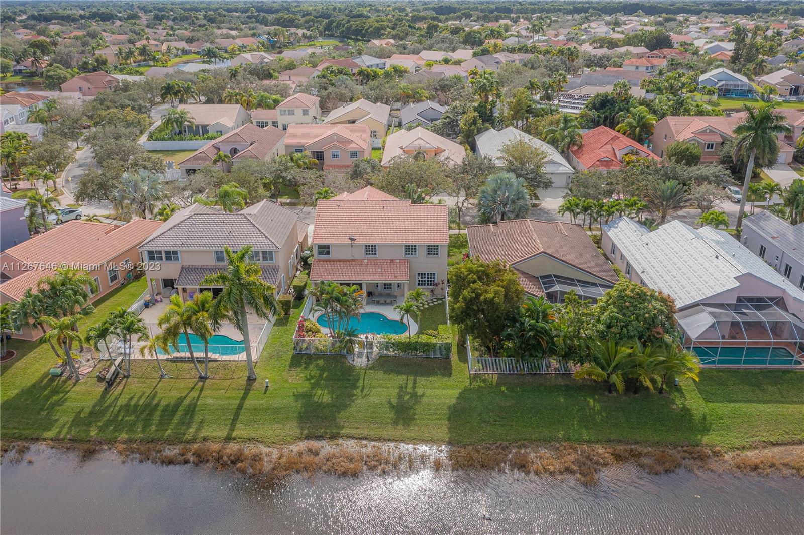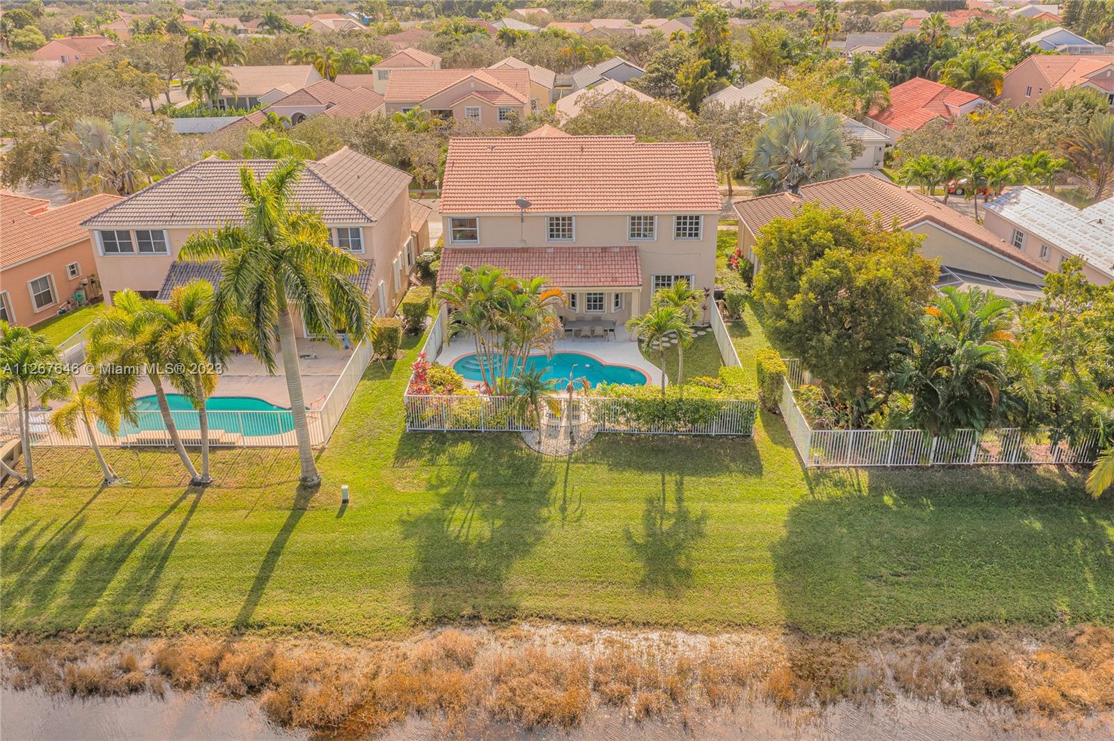 Highly desirable model home at the Falls. This beautiful property features 2 stories, 4 bedrooms, 2.5 bathrooms, 2 car garage, ample living room with high ceilings and lots of natural light, dining room, kitchen, spacious family room to entertain the entire family, laundry room and the most beautiful backyard to enjoy the true South Florida lifestyle with pool and lakeview. The master suite features a sitting area perfect for an office, yoga studio, or additional TV room. This stunning home was recently painted inside with no popcorn ceilings, brand new AC 2021, hurricane shutters and paver driveway. The Falls is a guard gated community with A+ rated schools, close to restaurants, coffee shops, parks, and much more!