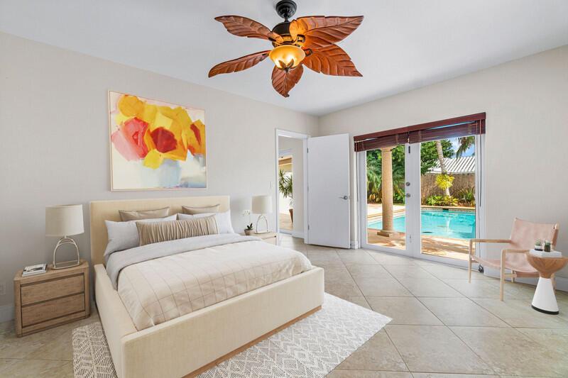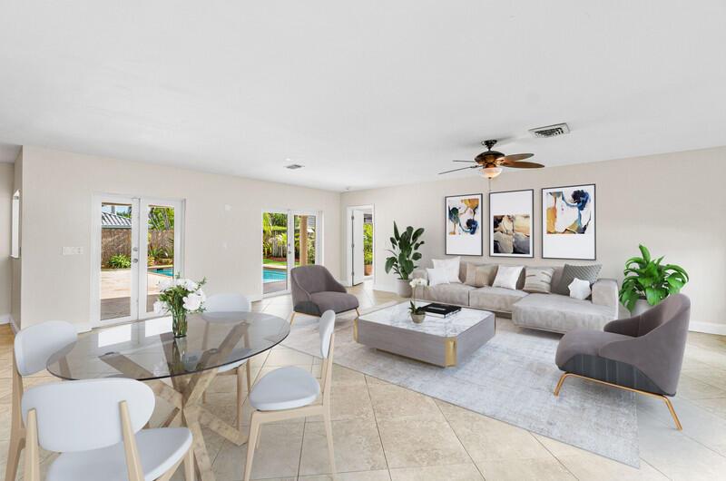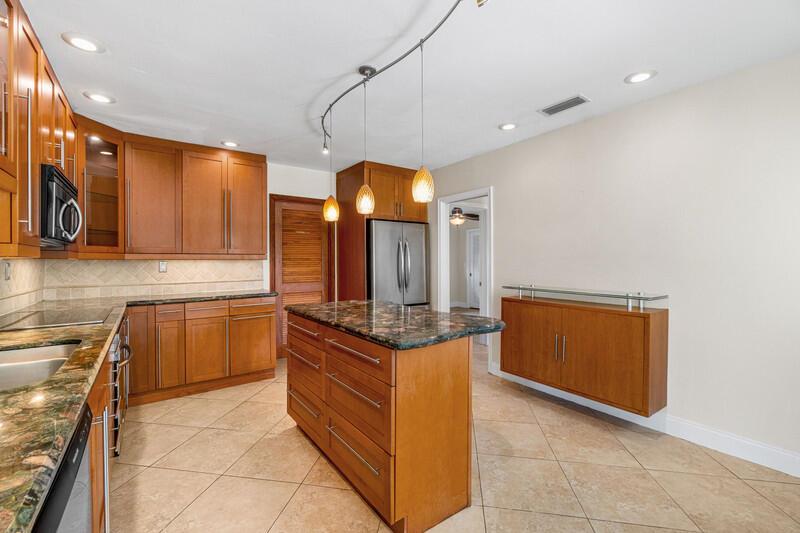 Beautifully updated pool home in Central Boca Raton. Custom updated open floor plan! Custom oversize gourmet kitchen! Split bedroom plan with updated bathrooms. Cabana bath, All tiled living areas! Laundry room off the kitchen. French doors leading to beautiful covered and open patio to the pool area. 2 car garage. Chicago brick driveway. Private backyard! Close to town center mall and lots of shopping/restaurants. No HOA. Totally unique property a must see!