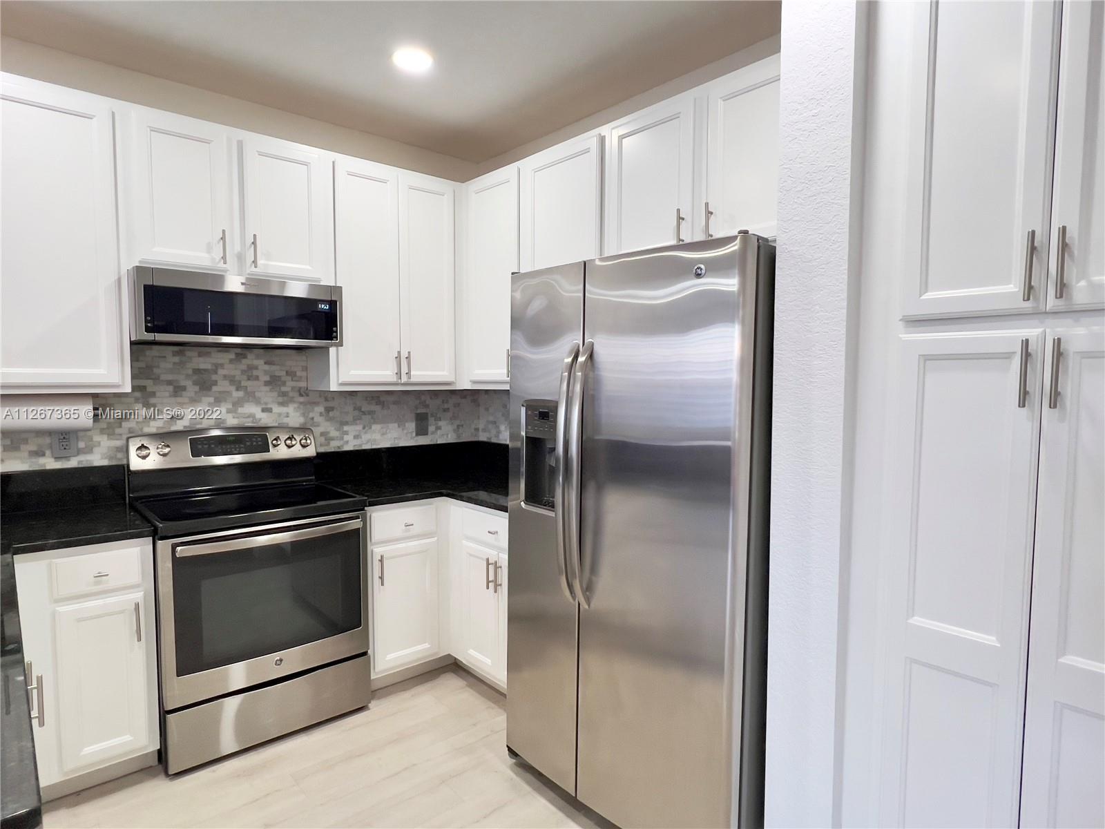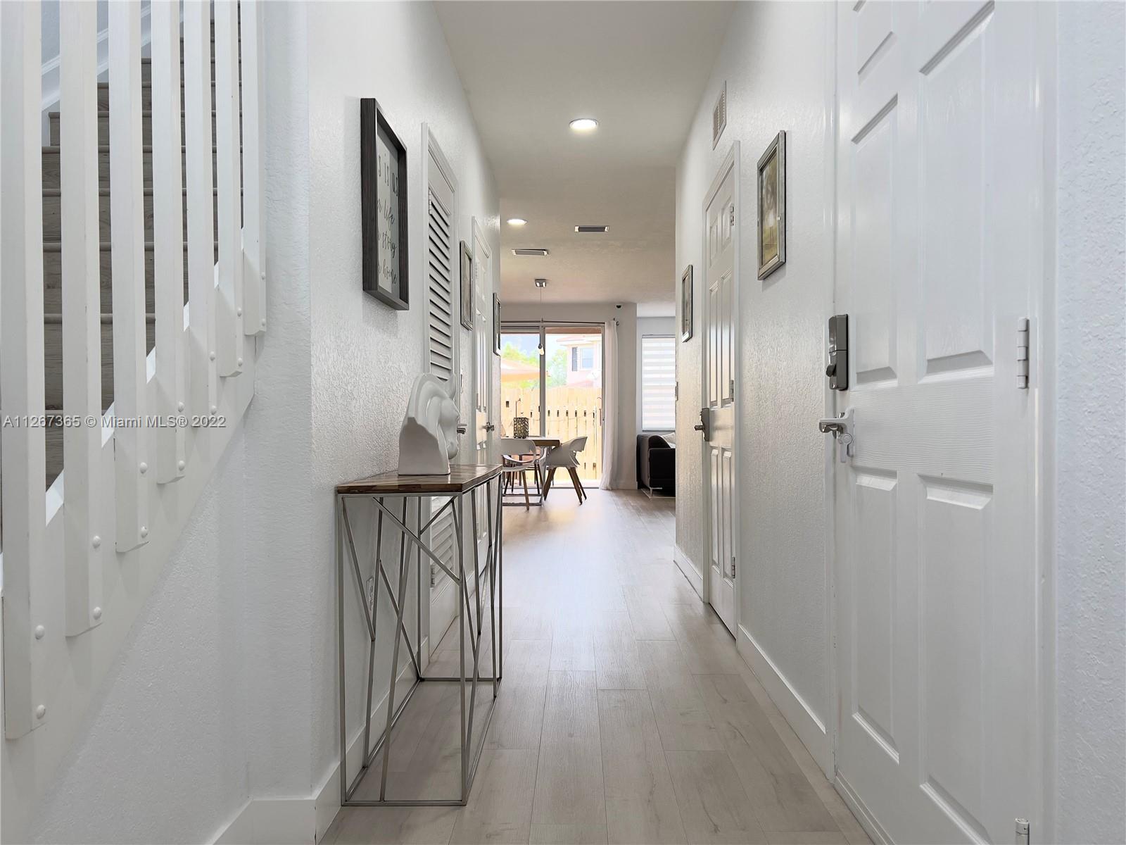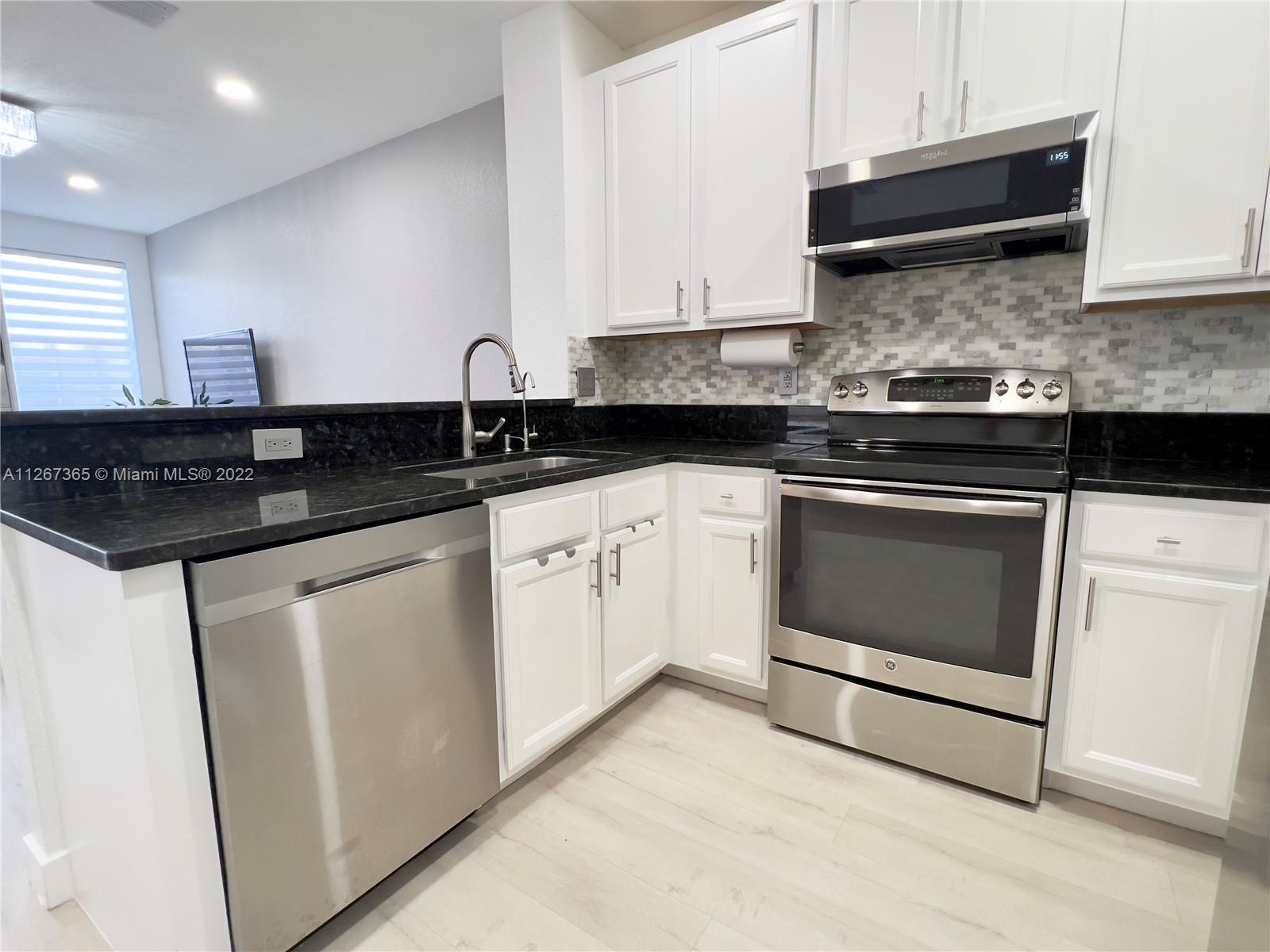 Live in Luxury Completely remodeled 3 Bedrooms and 2.5 Bathroom plus office with built in cabinetry. Master bath with free standing spa tub and two shower heads in separate shower. Stainless steel appliances. Vinyl flooring throughout the first floor and laminate on the second floor. Samsung washer and dryer. Garage with shelfs and epoxy flooring. Attic with built in pull down ladder. Whole house water filter plus additional drinking water filter in the kitchen. Zebra blinds downstairs and accordion shutters throughout. Gated patio opening to green space.