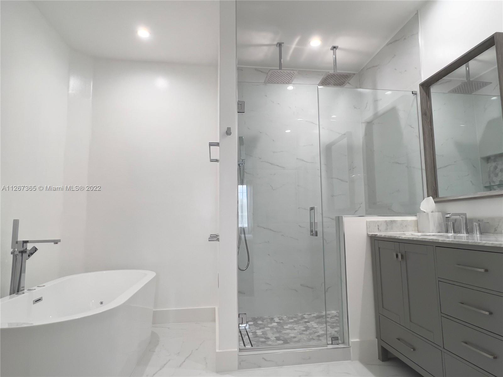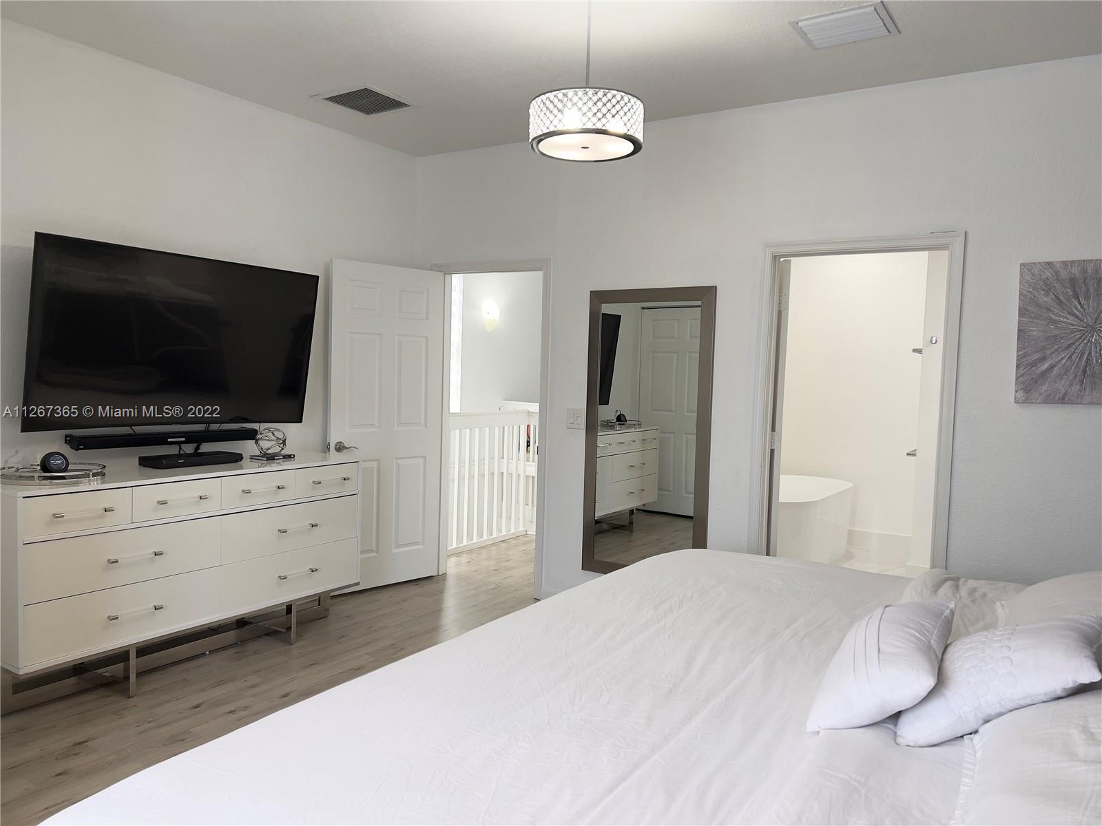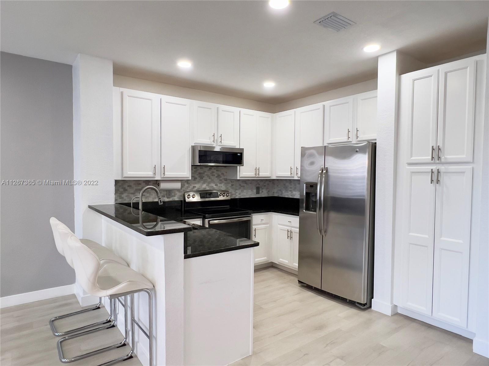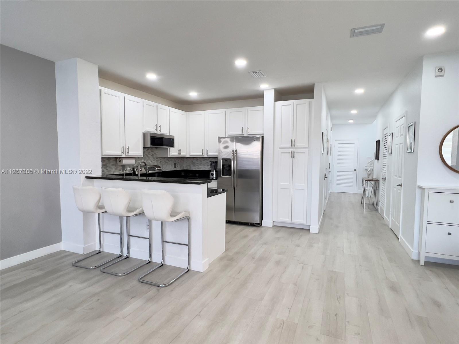 Live in Luxury Completely remodeled 3 Bedrooms and 2.5 Bathroom plus office with built in cabinetry. Master bath with free standing spa tub and two shower heads in separate shower. Stainless steel appliances. Vinyl flooring throughout the first floor and laminate on the second floor. Samsung washer and dryer. Garage with shelfs and epoxy flooring. Attic with built in pull down ladder. Whole house water filter plus additional drinking water filter in the kitchen. Zebra blinds downstairs and accordion shutters throughout. Gated patio opening to green space.