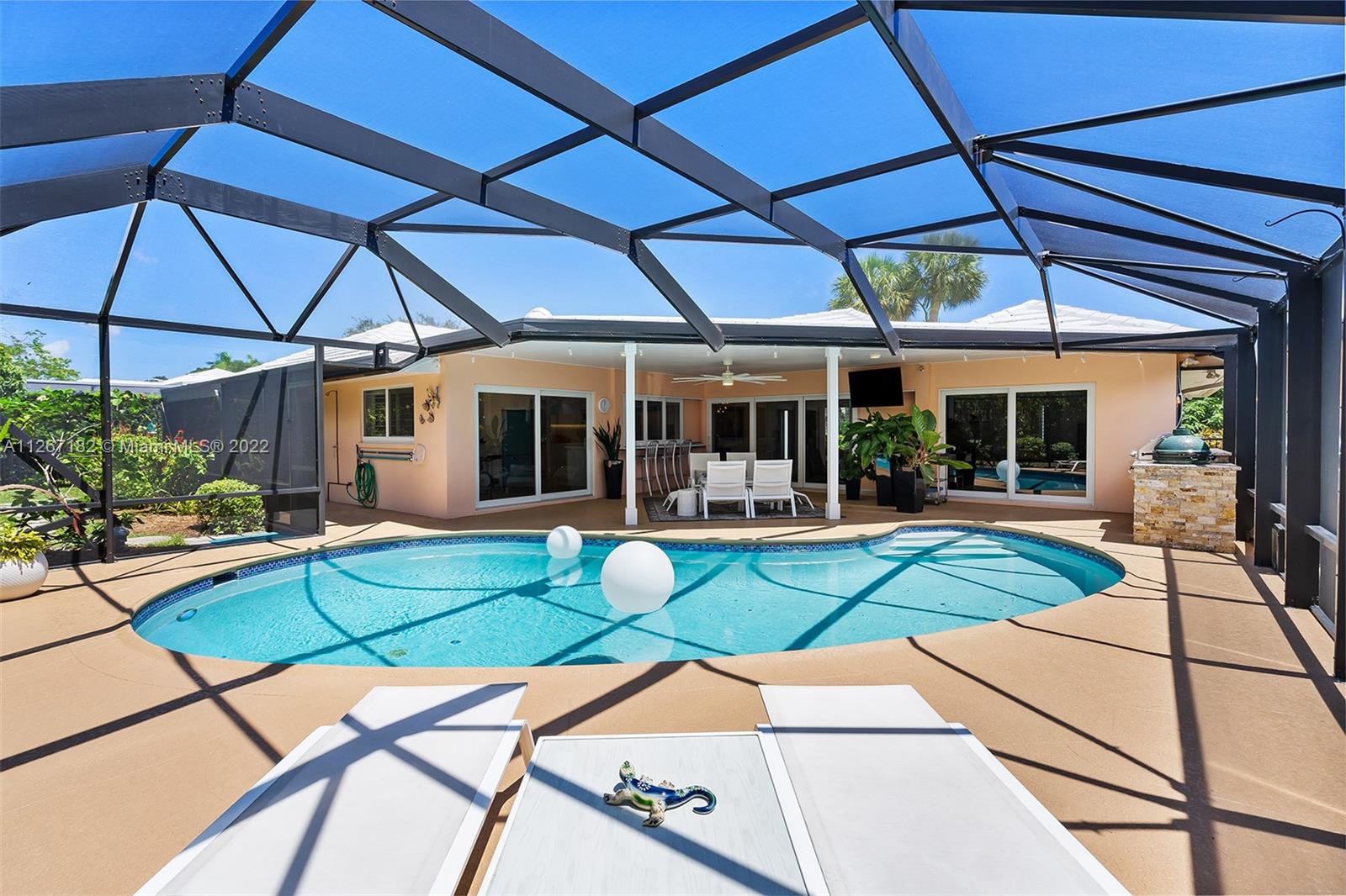 A true mid-century masterpiece in the heart of Camino Gardens. This lovingly restored residence offers a stunning kitchen with quartz counters, Big Chill appliances with induction cooktop and custom cabinetry & lighting. The rear impact sliders open all the way up to the perfect outdoor living space complete with outdoor kitchen, green egg & heated pool. Additional features include full impact windows & doors, newer roof, newer A/C & duct work, custom high hat lighting, full house generator w/ 500 gallon tank, tankless hot water heater, wine refrigerator, additional freezer in garage, newly resurfaced saltwater & heated pool. Camino Gardens is in a prime Boca Raton location close to Mizner Park , The Boca Raton luxury hotel & club, the beach, top restaurants, shopping & highways.