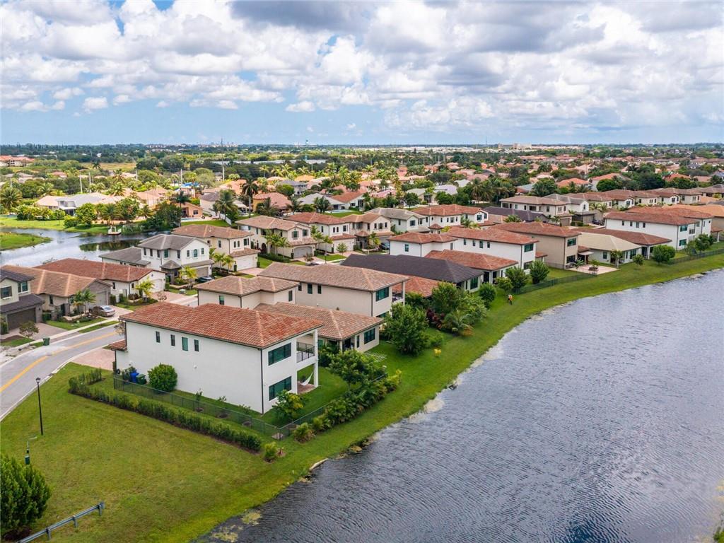 4 bdrm 3 bth + loft (can be converted to 5th bdrm) w/ 1 brm/1bth on the 1st flr.. This beauty sits on a beautiful cul-de-sac lake lot w/ an open green space on one side. Sought after Raintree development, a gated community. This home is a lovely, bright, open, contemporary & is in excellent condition boasting w/ hurricane impact windows & doors, tile floors, beautiful kitchen w/ wood cabinets, Quartz Counters, SS GE Profile appls., eat at island & walk-in pantry. Other features include laund. rm w/ washer & dryer, covered patio & private fenced yard. The Primary suite boasts his/hers walk-in closet, large windows, balcony & beautiful bath w/ dual vanities, Quartz counters, soaking tub & walk-in shower w/ frame-less glass. Driveway fits 4 cars. Community clubhouse, pool, playground & gym.