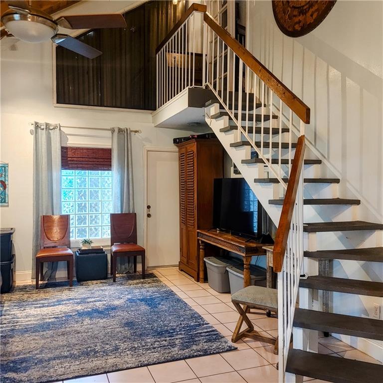 BEST VALUE IN RIO VISTA! 2 story villa w/ 3 bedroom, 2 bath, plus loft in the sought-after downtown neighborhood of Rio Vista. NO HOA. Totally fenced for privacy and includes sliding gate for secure parking. Front grassed yard and gated courtyard entrance. Open beamed ceiling. Upstairs primary bedroom includes attached loft room, perfect for office, nursery, yoga/art studio, or extra-large bonus closet. Newer AC with germicidal UV light system. Hurricane impact windows and shutters for upper trapezoid windows. A great price for this location!