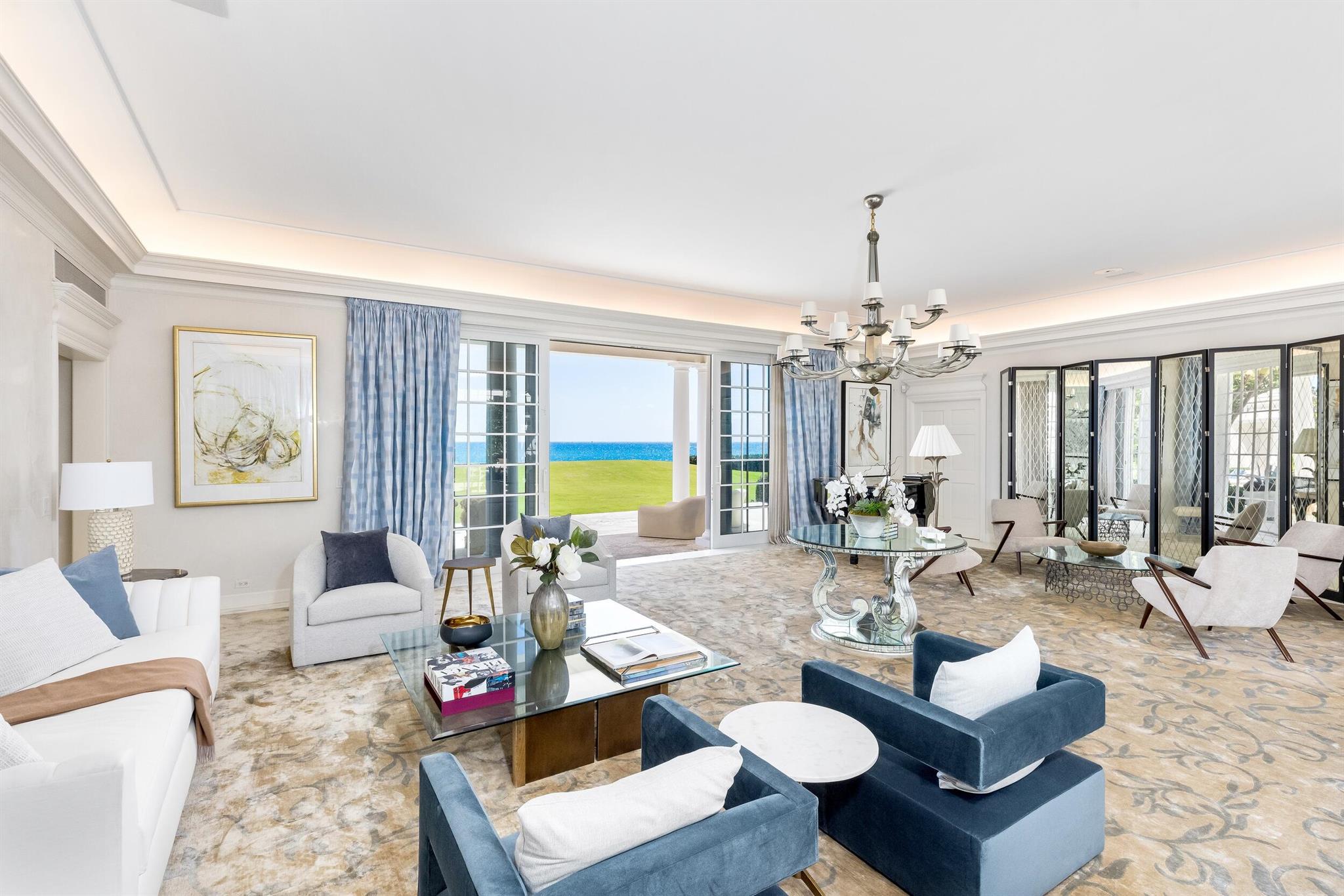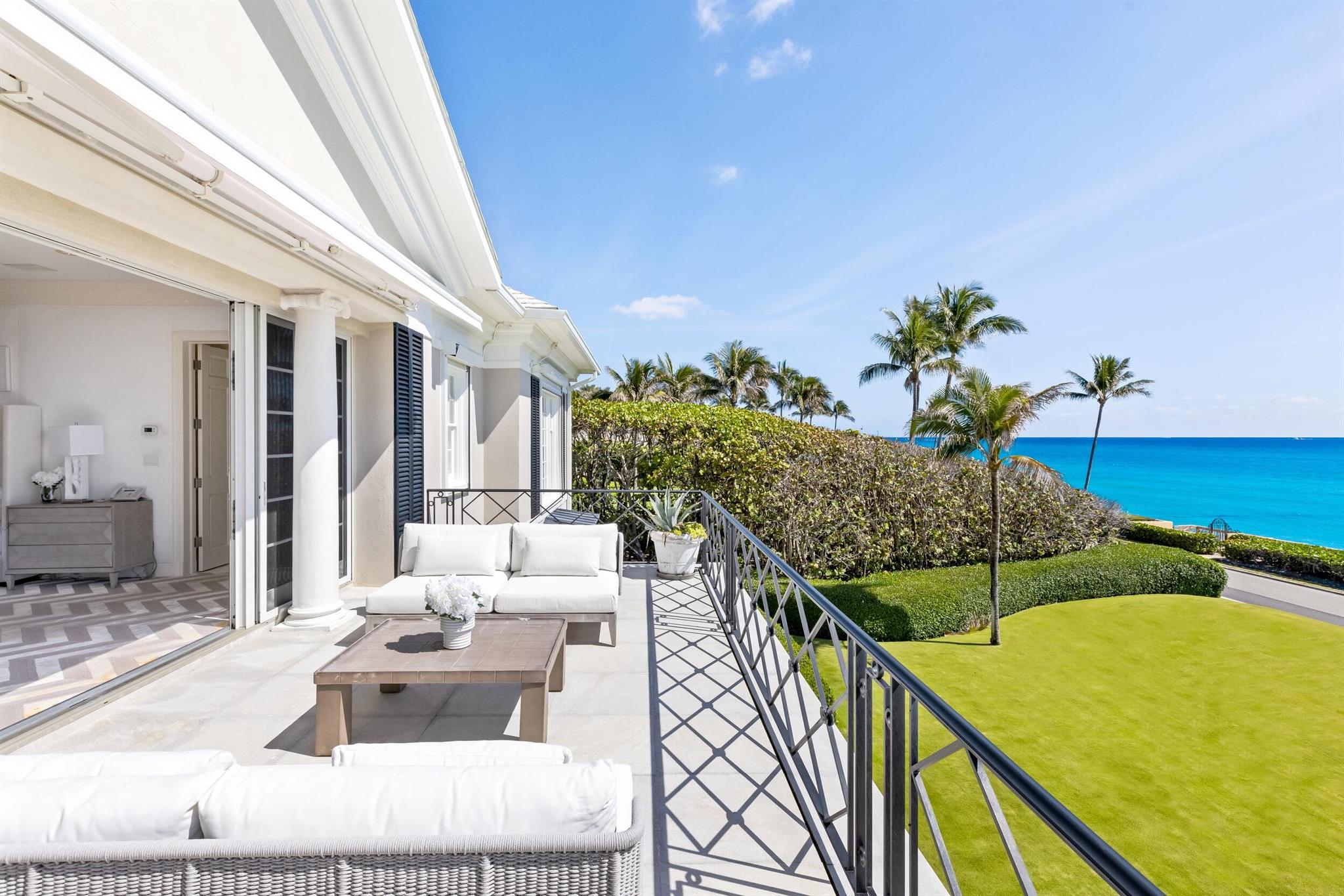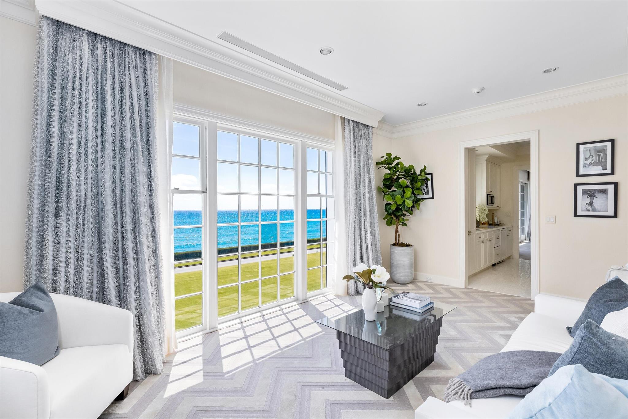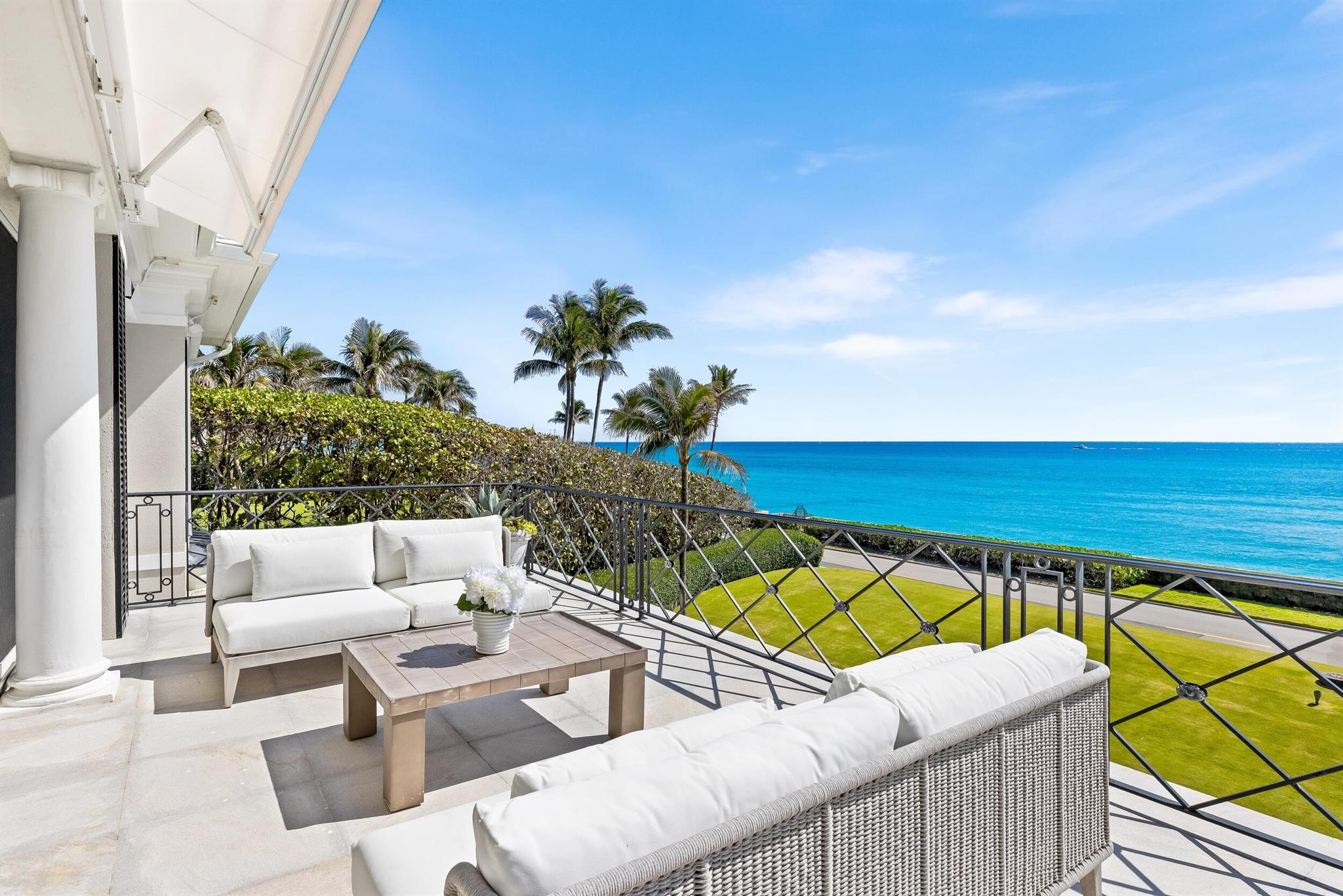 Spectacular Oceanfront Estate situated on a fantastic .9 acre +/- lot with approximately 200 feet of ocean frontage. This elegant Neoclassical estate features 6 bedrooms, 7 full bathrooms, and 4 powder rooms, 13,000+/- total square feet, and lots of natural light throughout. High elevation with beautiful sweeping views from nearly all primary rooms. Gorgeous outdoor spaces with covered oceanfront loggia, large pool with poolside cabana, and beautiful, lush landscaping. Expansive Primary Suite with oceanfront balcony, office, morning bar, dual bathrooms, and large walk-in closets. Beautiful and welcoming foyer leads to formal dining room. Grand formal living room with stunning views and oversized library with custom built-ins. Excellent location in Palm Beach's Estate Section.