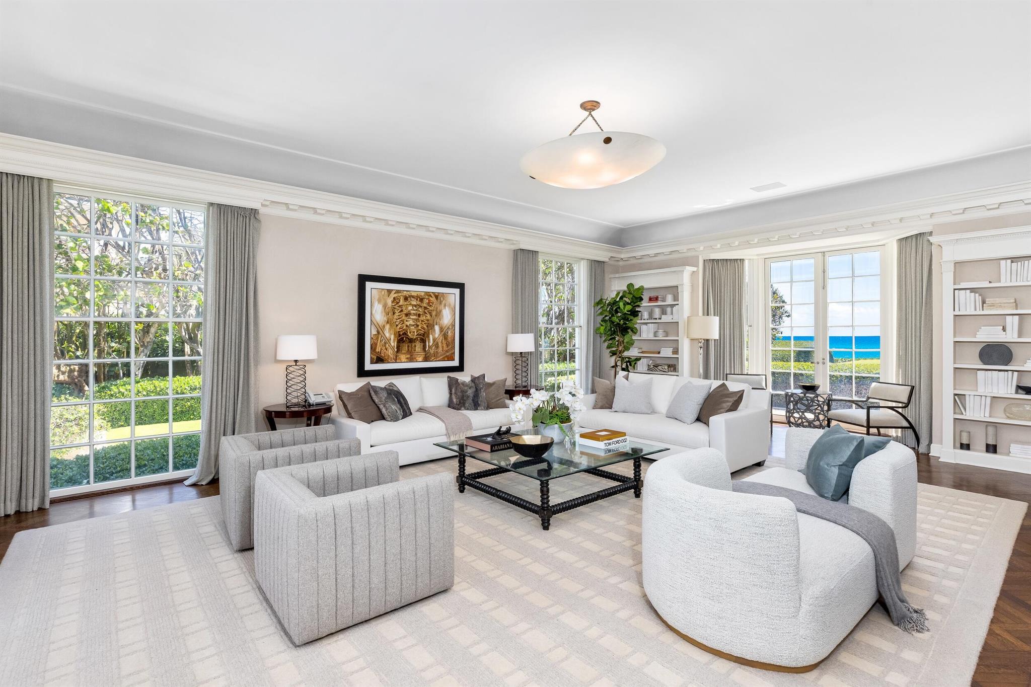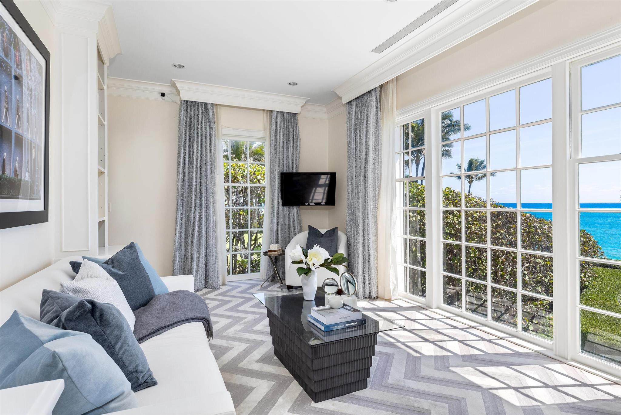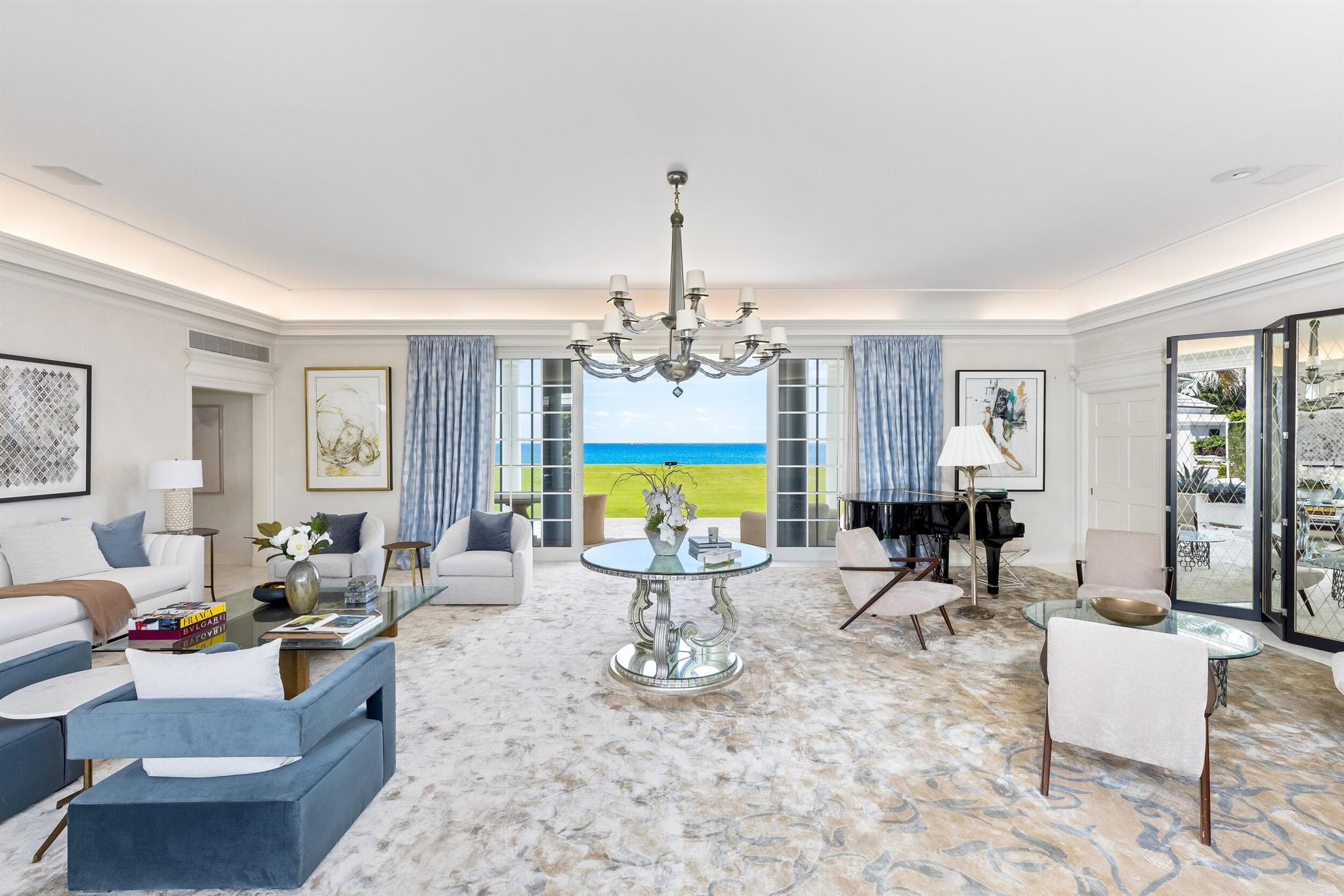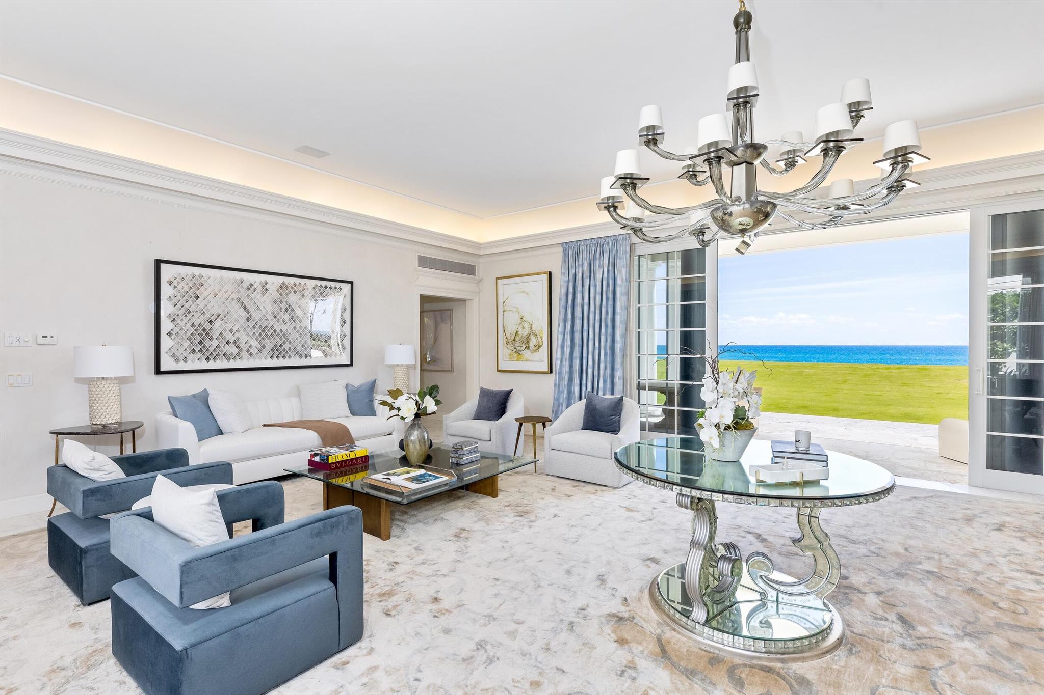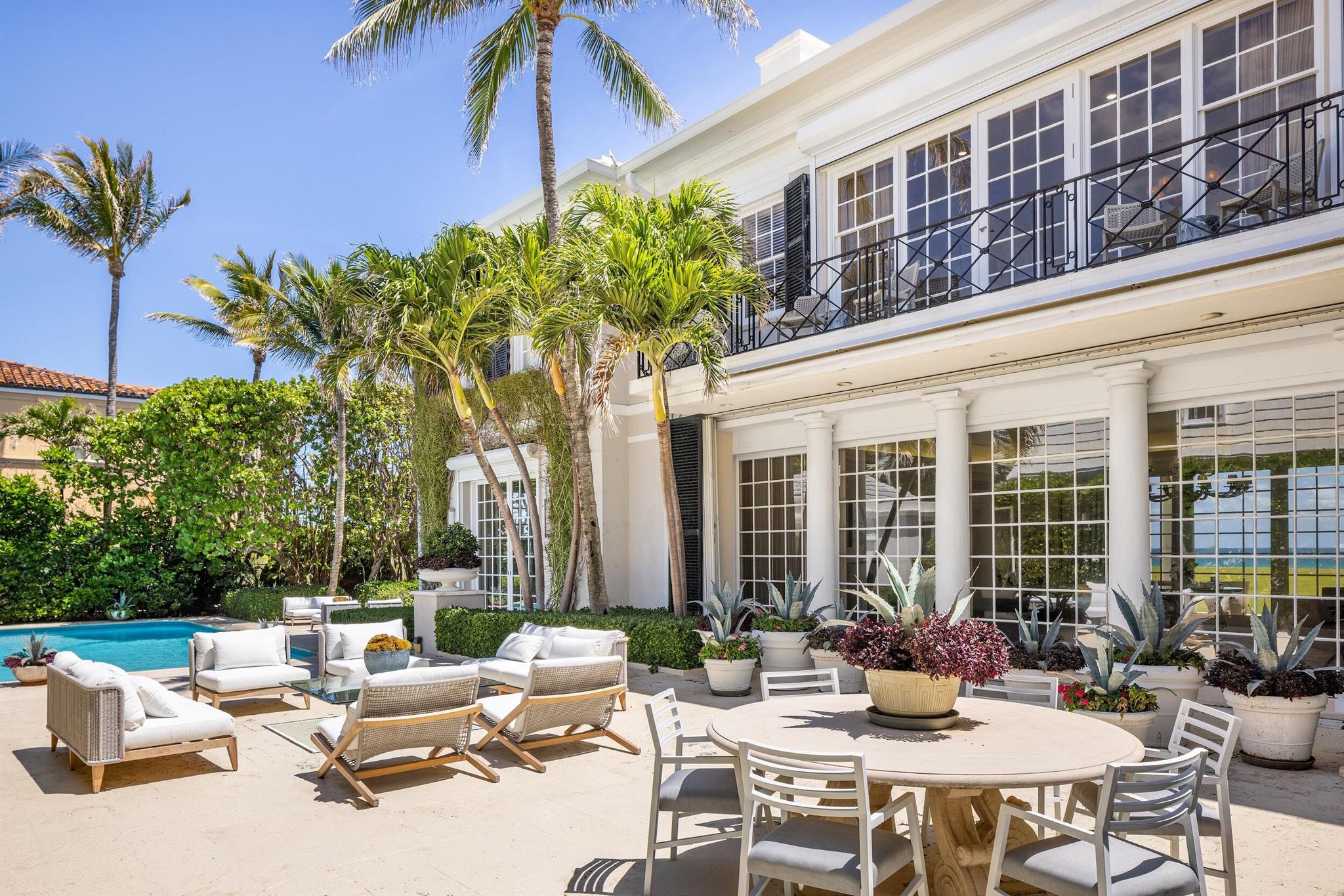 Spectacular Oceanfront Estate situated on a fantastic .9 acre +/- lot with approximately 200 feet of ocean frontage. This elegant Neoclassical estate features 6 bedrooms, 7 full bathrooms, and 4 powder rooms, 13,000+/- total square feet, and lots of natural light throughout. High elevation with beautiful sweeping views from nearly all primary rooms. Gorgeous outdoor spaces with covered oceanfront loggia, large pool with poolside cabana, and beautiful, lush landscaping. Expansive Primary Suite with oceanfront balcony, office, morning bar, dual bathrooms, and large walk-in closets. Beautiful and welcoming foyer leads to formal dining room. Grand formal living room with stunning views and oversized library with custom built-ins. Excellent location in Palm Beach's Estate Section.