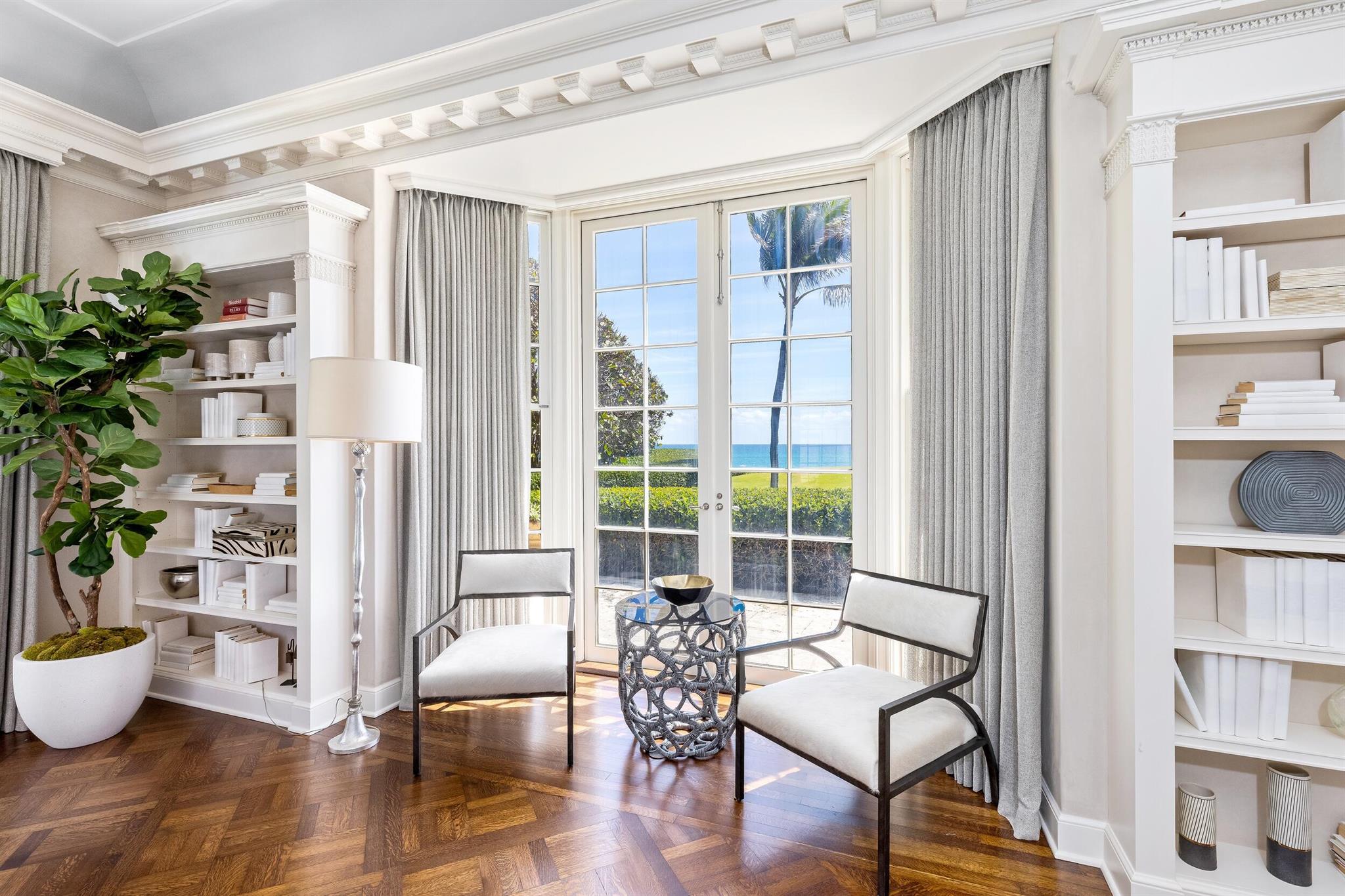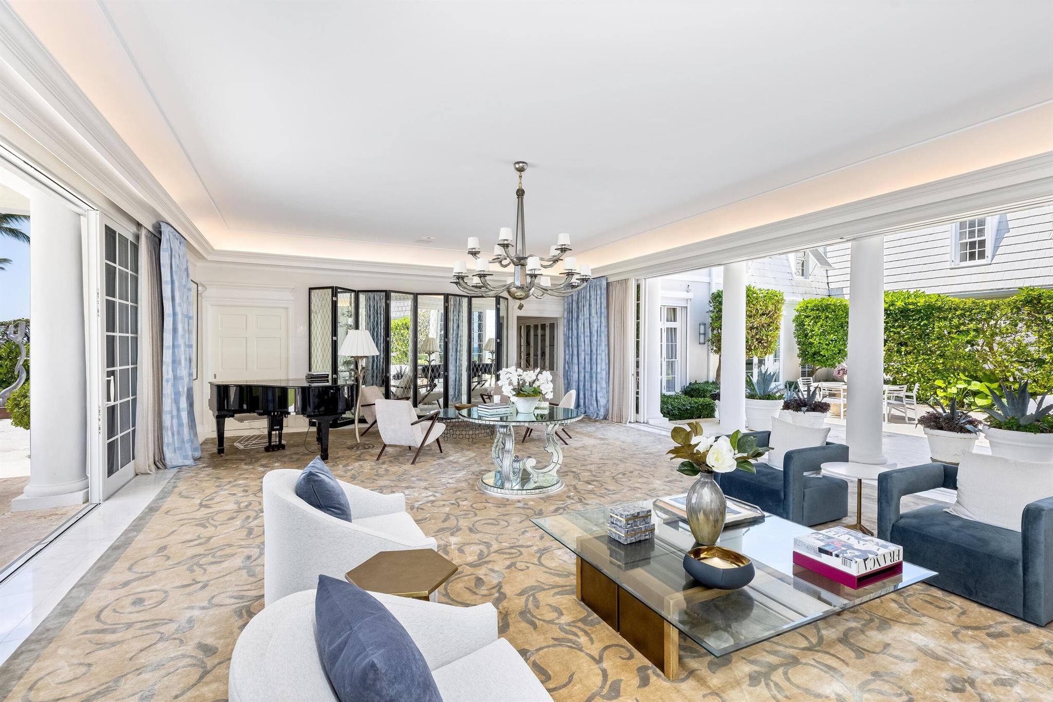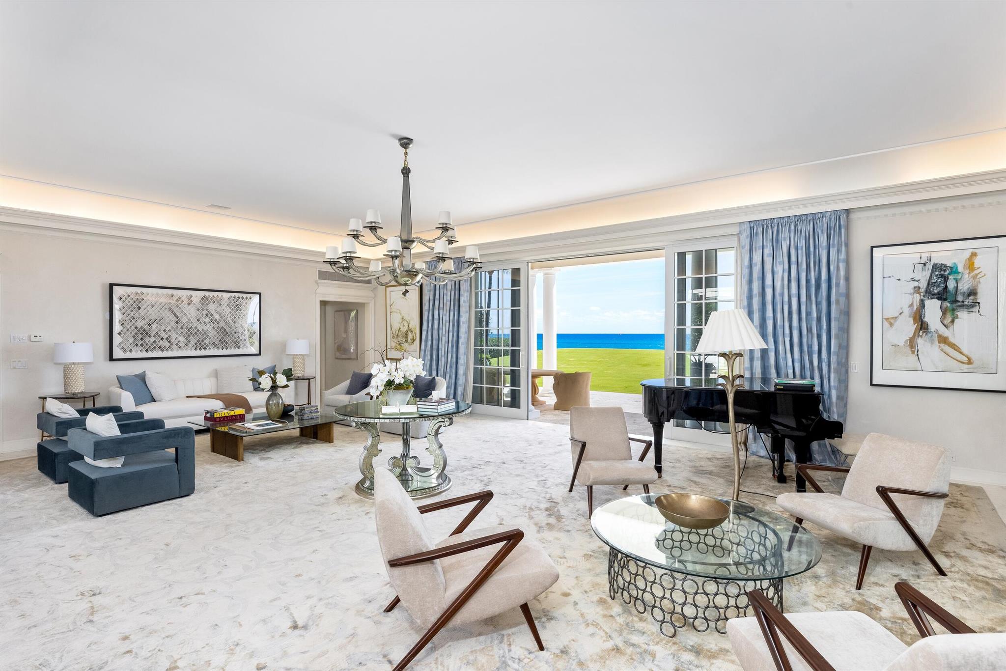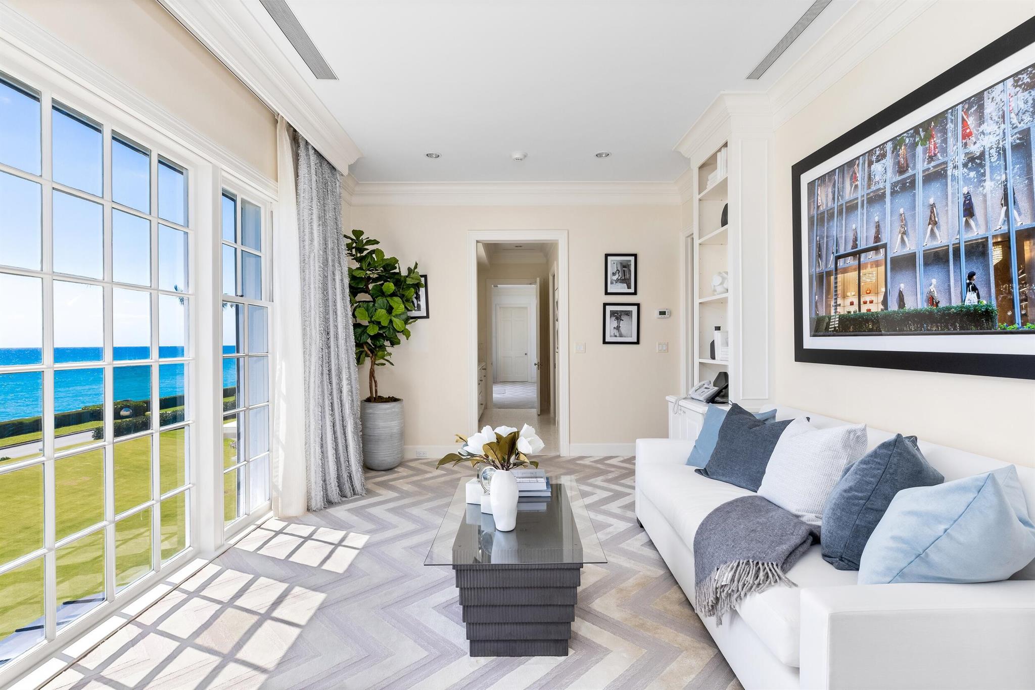 Spectacular Oceanfront Estate situated on a fantastic .9 acre +/- lot with approximately 200 feet of ocean frontage. This elegant Neoclassical estate features 6 bedrooms, 7 full bathrooms, and 4 powder rooms, 13,000+/- total square feet, and lots of natural light throughout. High elevation with beautiful sweeping views from nearly all primary rooms. Gorgeous outdoor spaces with covered oceanfront loggia, large pool with poolside cabana, and beautiful, lush landscaping. Expansive Primary Suite with oceanfront balcony, office, morning bar, dual bathrooms, and large walk-in closets. Beautiful and welcoming foyer leads to formal dining room. Grand formal living room with stunning views and oversized library with custom built-ins. Excellent location in Palm Beach's Estate Section.