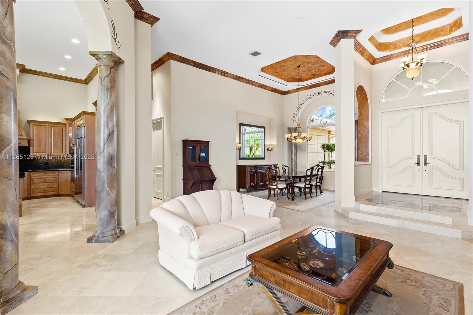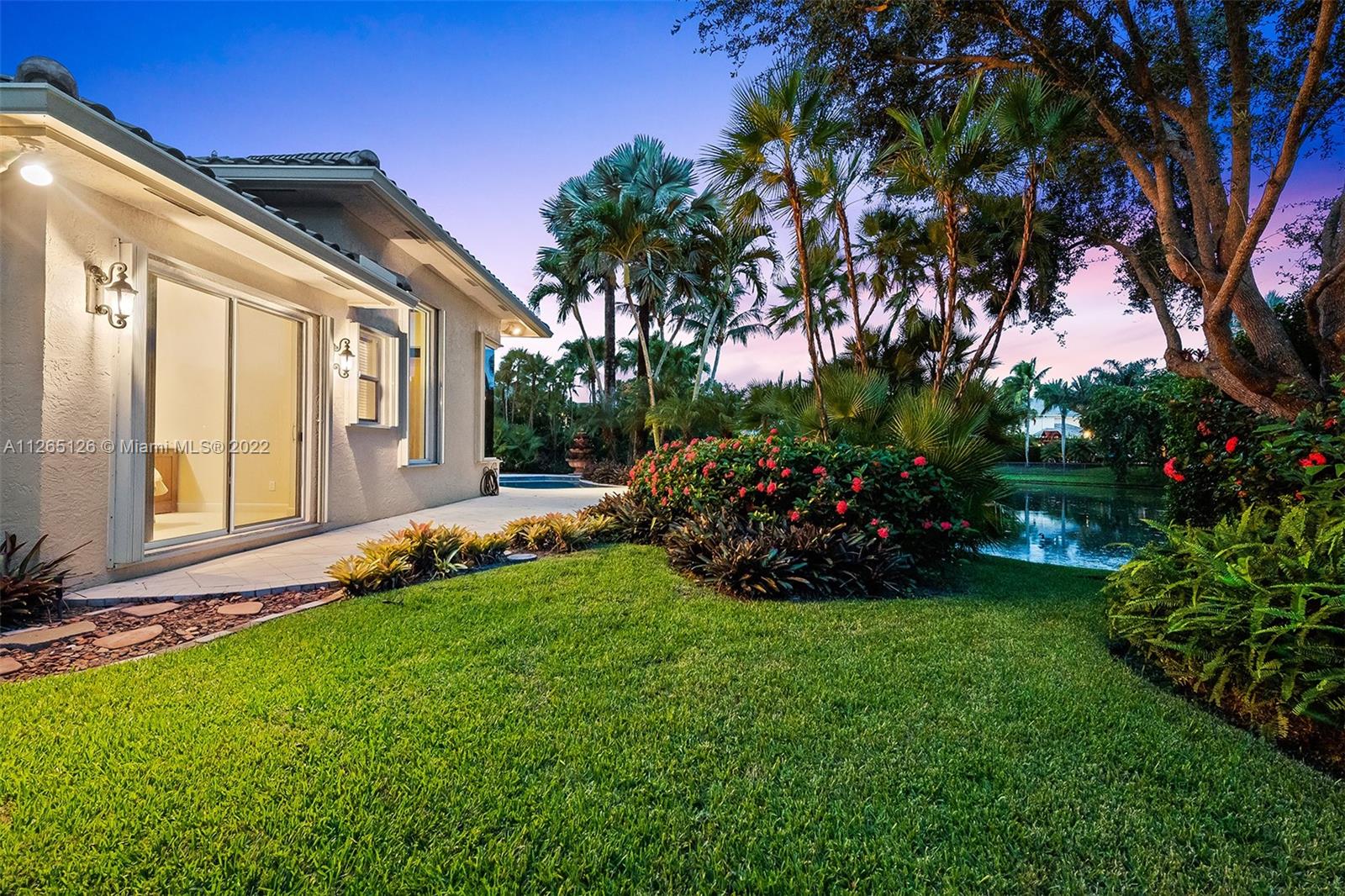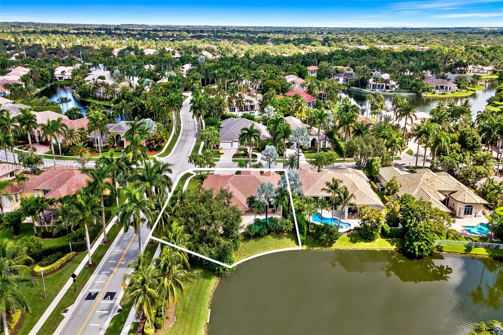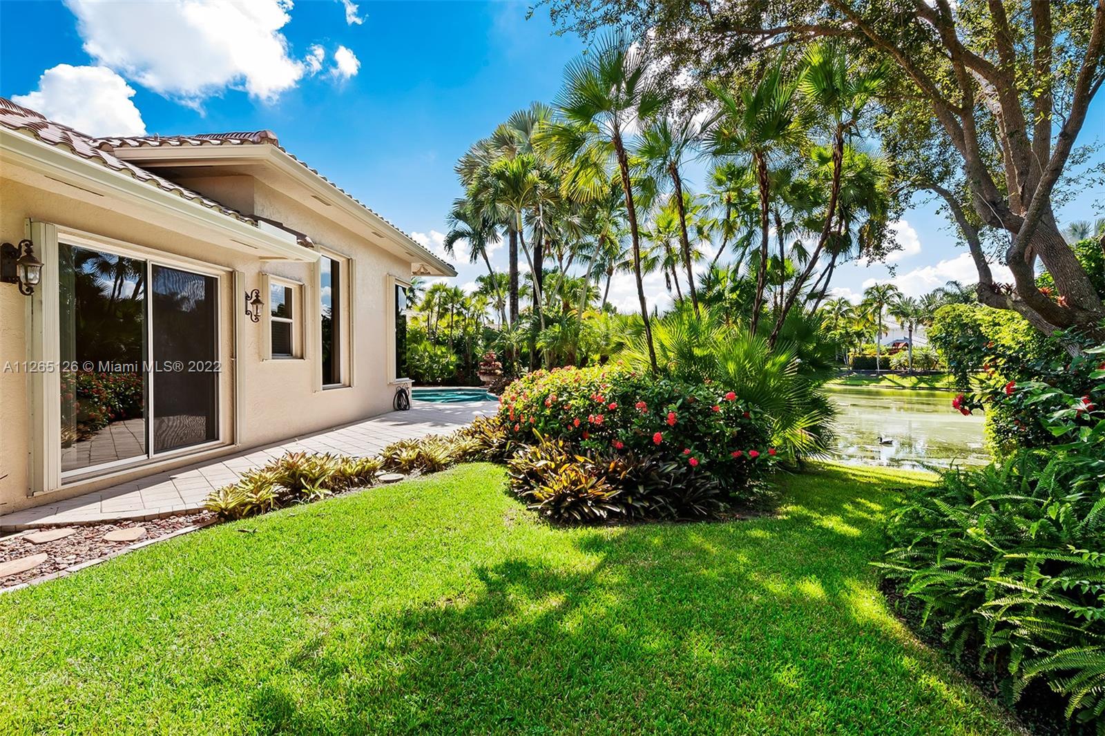 Welcome to a beautiful, classic custom home in prestigious Hawks Landing. When you arrive at the extended circular driveway, notice the lush landscaping surrounding this private lakefront gem. It boasts an open, bright, triple split floor plan with 5 oversized bedrooms and 4 bathrooms, creating space for the whole family. A new roof in 2021 and hurricane-protected windows throughout add to secured comfort. With soaring, volume ceilings and marble flooring, you will truly feel at home in your oasis. Hawks Landing community has many amenities, including 24-hour guarded gate, roving security, fantastic clubhouse, giant fitness center, resort-style pool, 7 tennis courts, basketball courts, covered tot lot playground, & pickleball. See for yourself, and love where you will live.