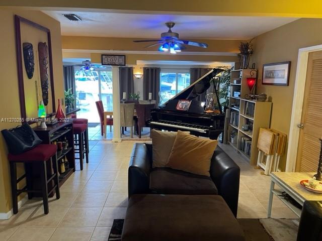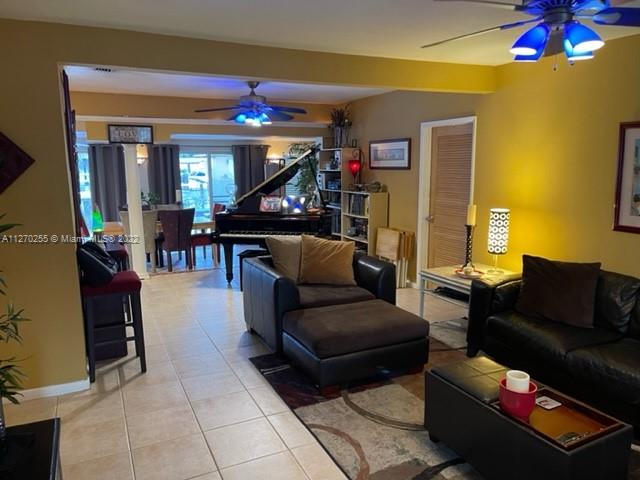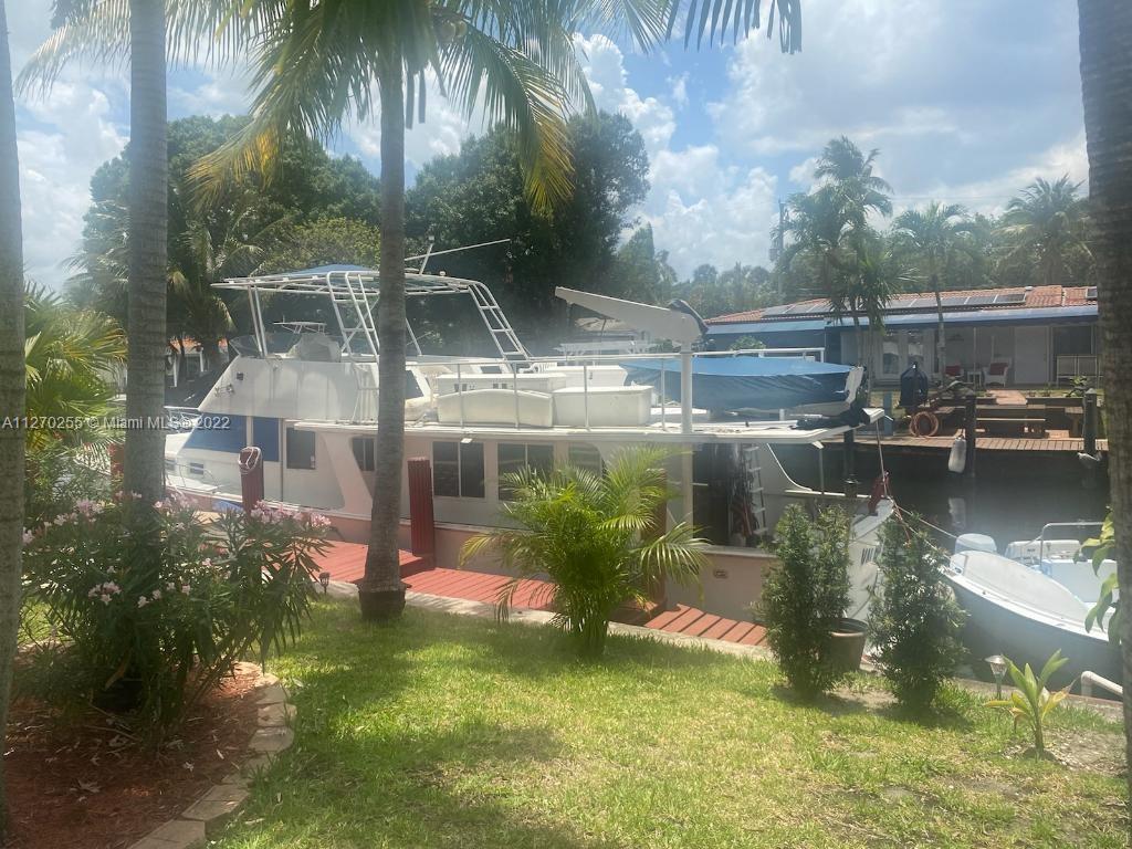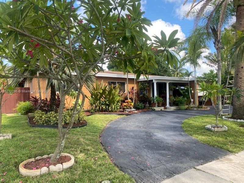 This 3 bedroom 3 bath pool home with den is located at the end of a tranquil cul de sac with 70 feet on the canal which leads to the river and ocean. Ocean access with no fixed bridges. Beautiful dock to park your boat with electric hook up plus a private and spectacularly landscaped lawn with luscious curb appeal. A circular driveway leads to the 1 car garage/carport and open parking area. Upon entry you will find a well maintained home decorated with warmth, style and charm. Tile flooring throughout with many upgrades and features including ceiling beams and sliding doors which open to the pool area perfect for dining, relaxing or entertaining with family & friends. Outdoor storage bldg Close to I-95 with easy access to beaches, MIA and FLL airports, downtown restaurants and shopping.