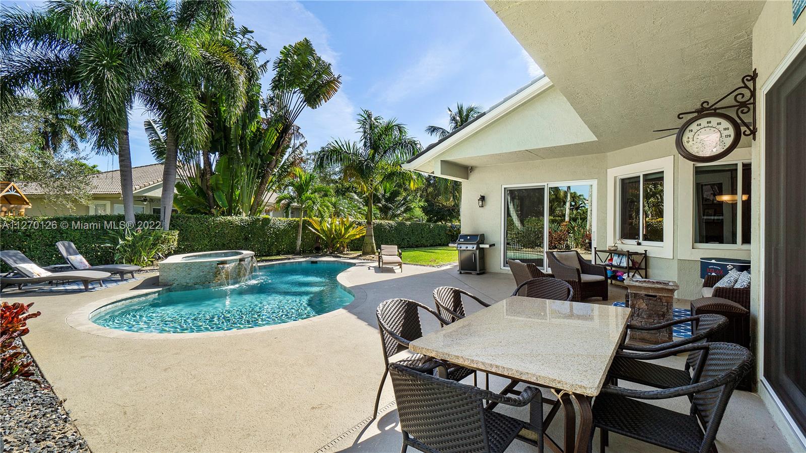 This amazing Chelsea @ Kensington model proudly presents this meticulously kept home. Showcasing new custom blinds throughout, upgraded bedroom flooring, new custom fencing for animal safety, exterior retractable awning for shade and new interior painting throughout. Incredible outdoor living space with pool and cascading waterfall hot tub feature with gorgeous landscape. Spacious 3 Car Garage, triple split floor plan with mother-in-law suite and cabana bath. Coveted school districts, amazing shopping, restaurants and quality of life. Easy access to the Sawgrass, Turnpike and I-95. This incredible home won't last long.