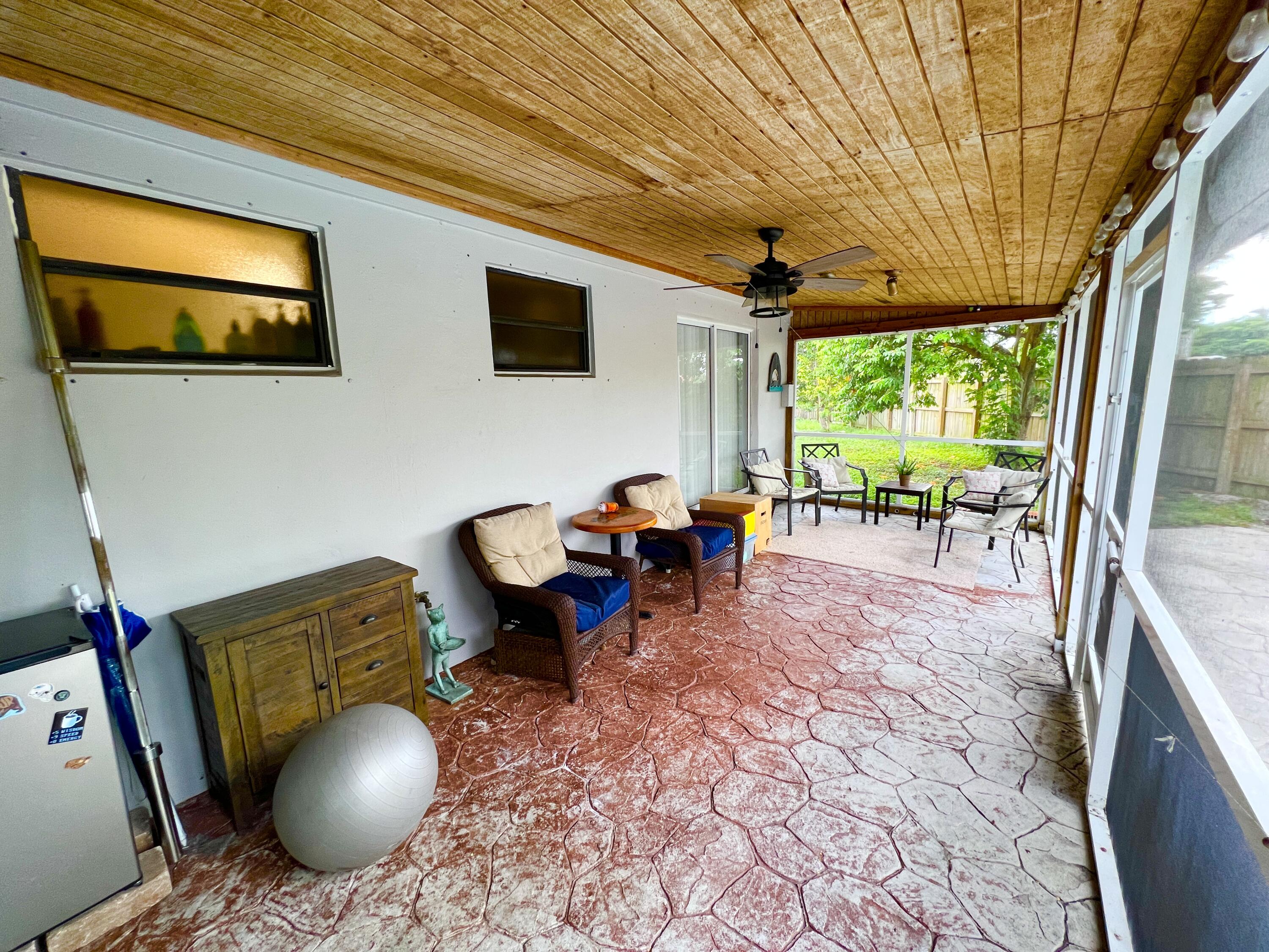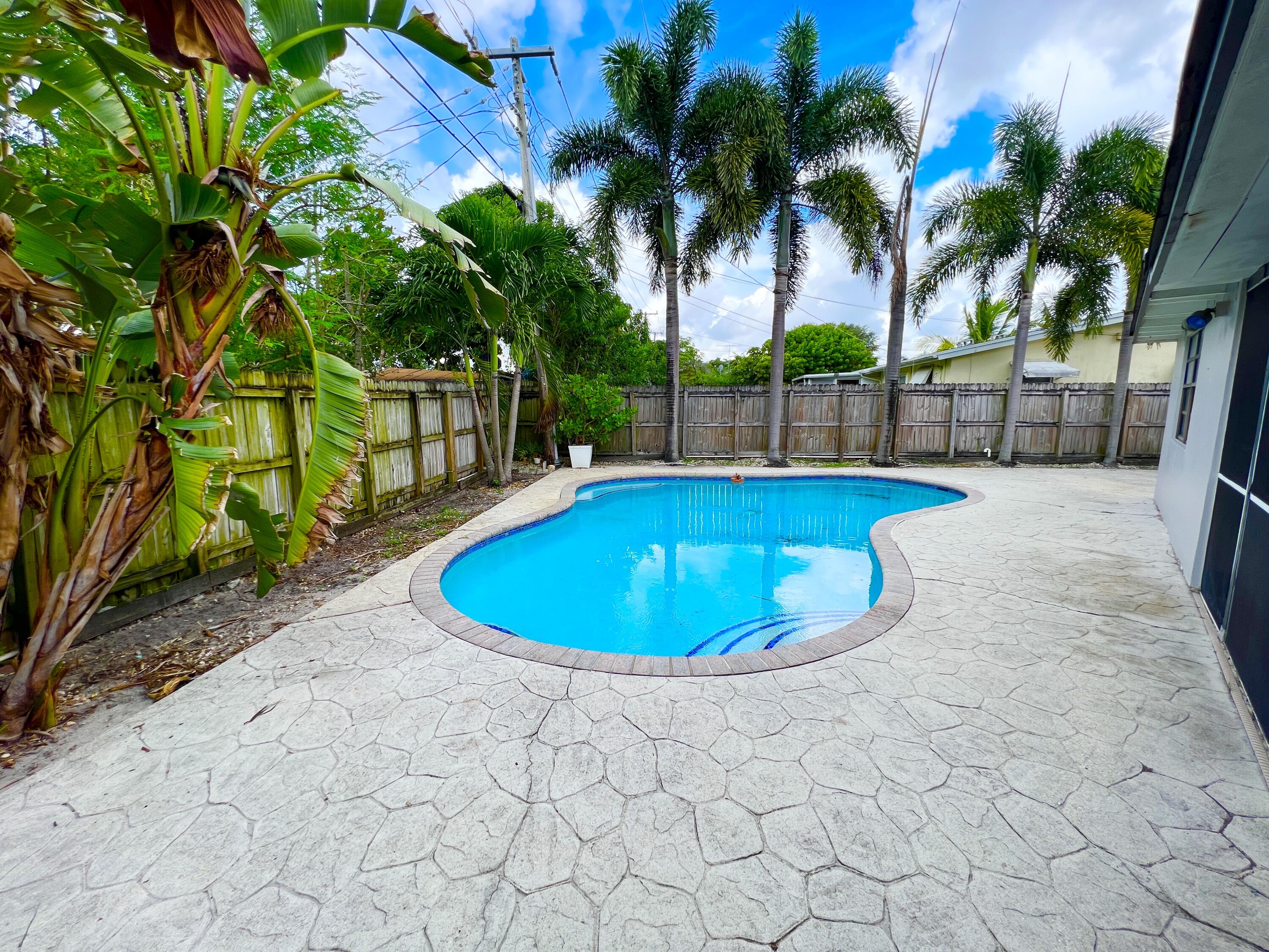 Charming 3 bedroom 2 bath CBS pool home on a huge 1/4 acre corner lot. Oversized 2 car garage with 220 AMP service and additional paved driveway fenced in for boat/RV, beautiful free form pool with new tile and diamond brite, new pool pump. Private Fully fenced yard with fruit trees (starfruit, orange, soursop, guanabana), screened in porch, freshly painted exterior, new bathroom vanities, brand new washer/dryer and dishwasher, tile flooring through out the home, laundry room inside, spacious flex room/office space off the kitchen. Community boat launch with ocean/intracoastal access!! Conveniently located near shopping, airports, schools.