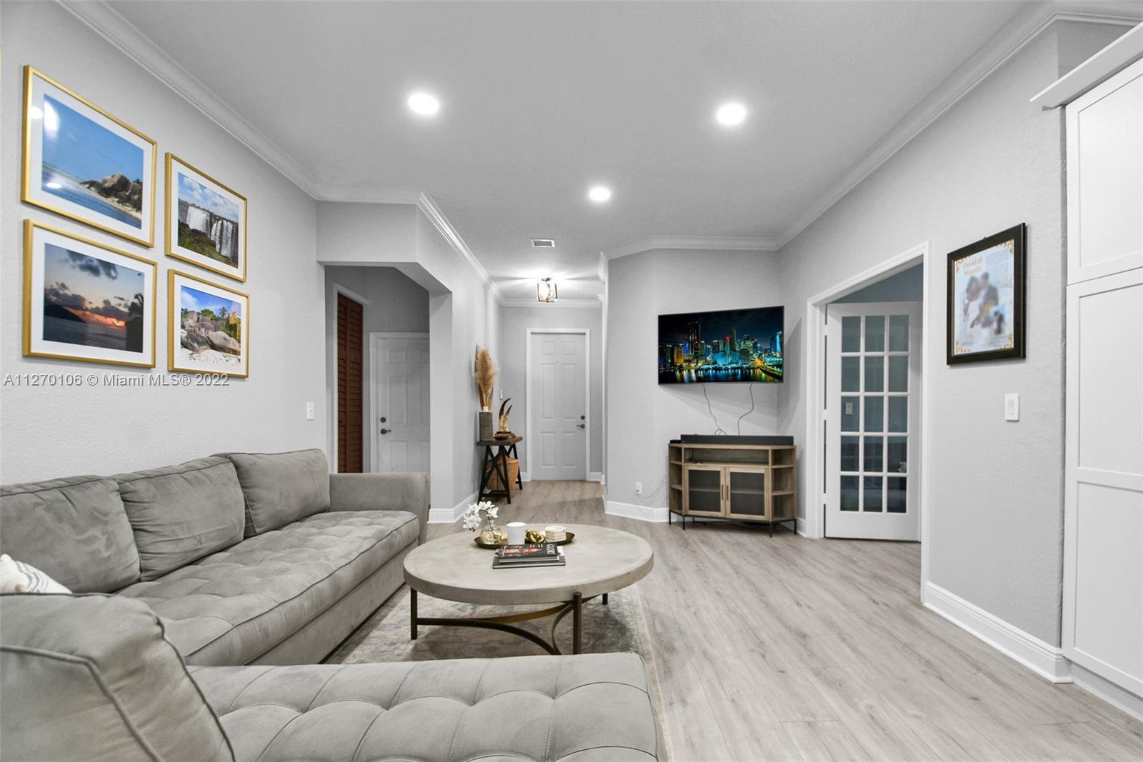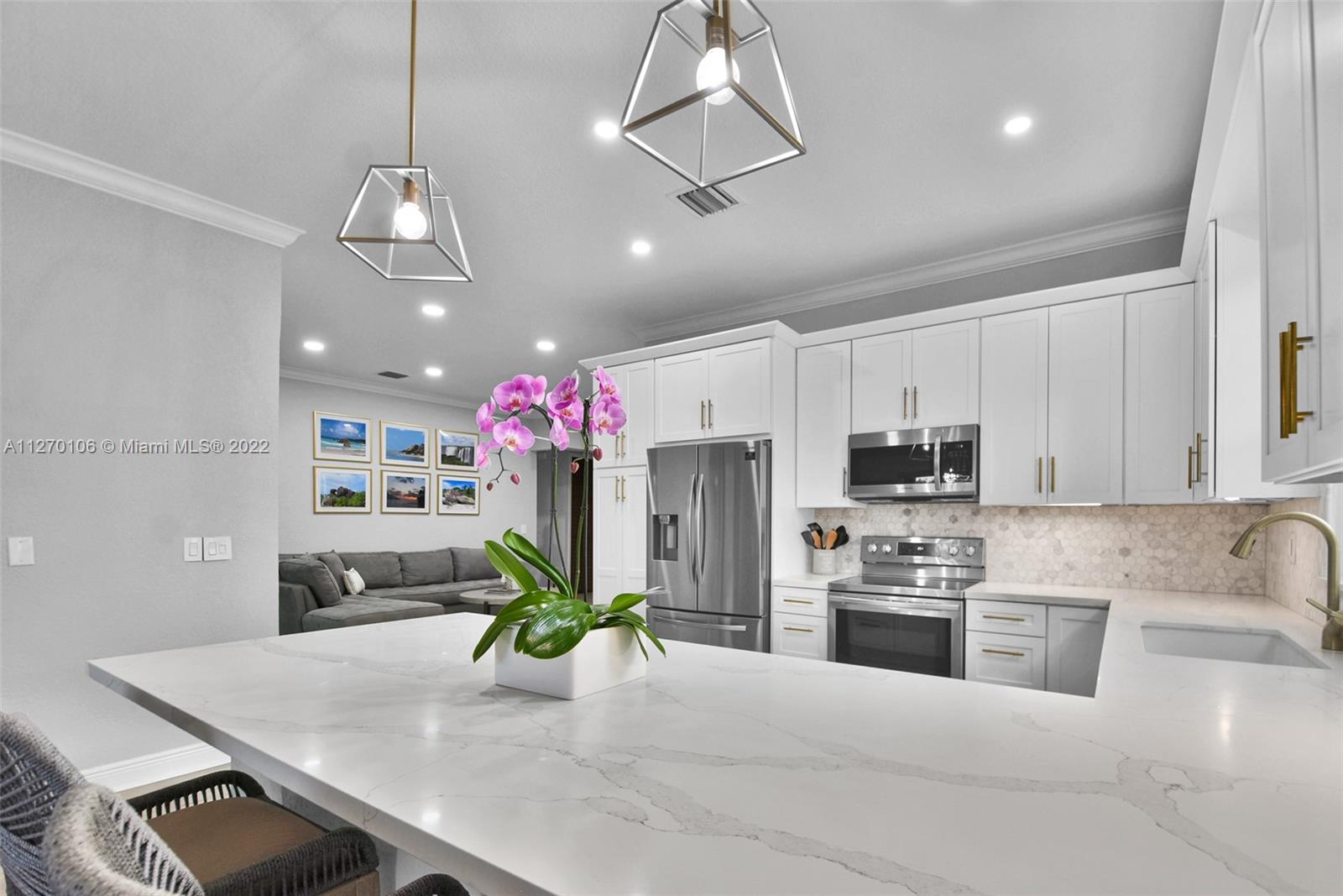 Immaculate sensationally updated one story home located in Miramar. Situated in the guard gated community of Bellagio at Vizcaya, this two car garage 3BR/2BA 1,780sqft property charms with Mediterranean architecture and tropical landscaping. Engulfed in natural light, the split floor plan interior captivates with vinyl wood floors, crisp color scheme, spacious living room, charming den, and an open concept gourmet kitchen featuring stainless-steel appliances, quartz counters, and white shaker cabinets. Entertain in the amazing enclosed covered terrace or grill outdoors in the fenced in backyard. Boasting tray ceilings, the primary bedroom has ample closet space and an en suite with soaking tub. Amenities include a community club house with a pool, fitness gym, and playgrounds to explore.