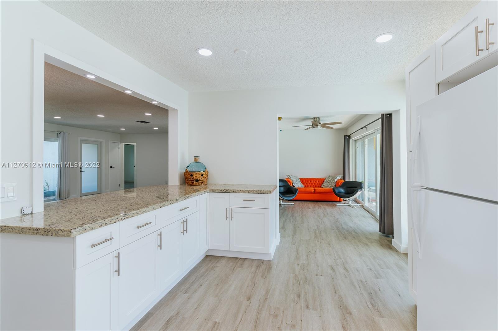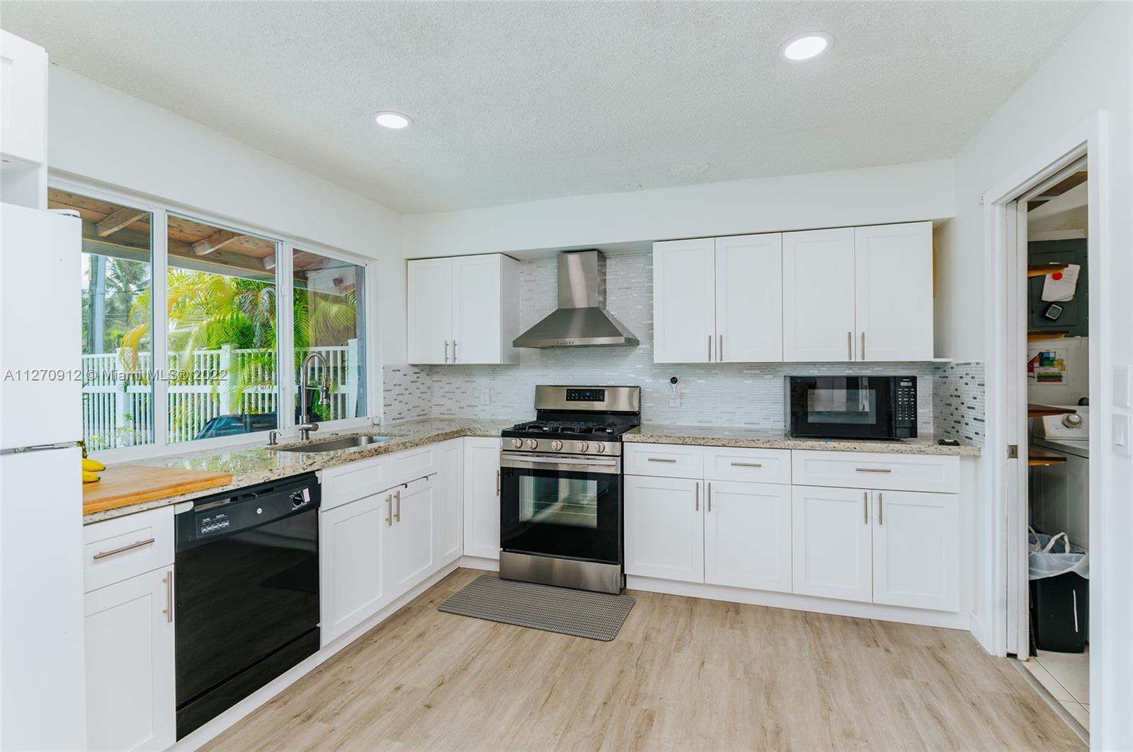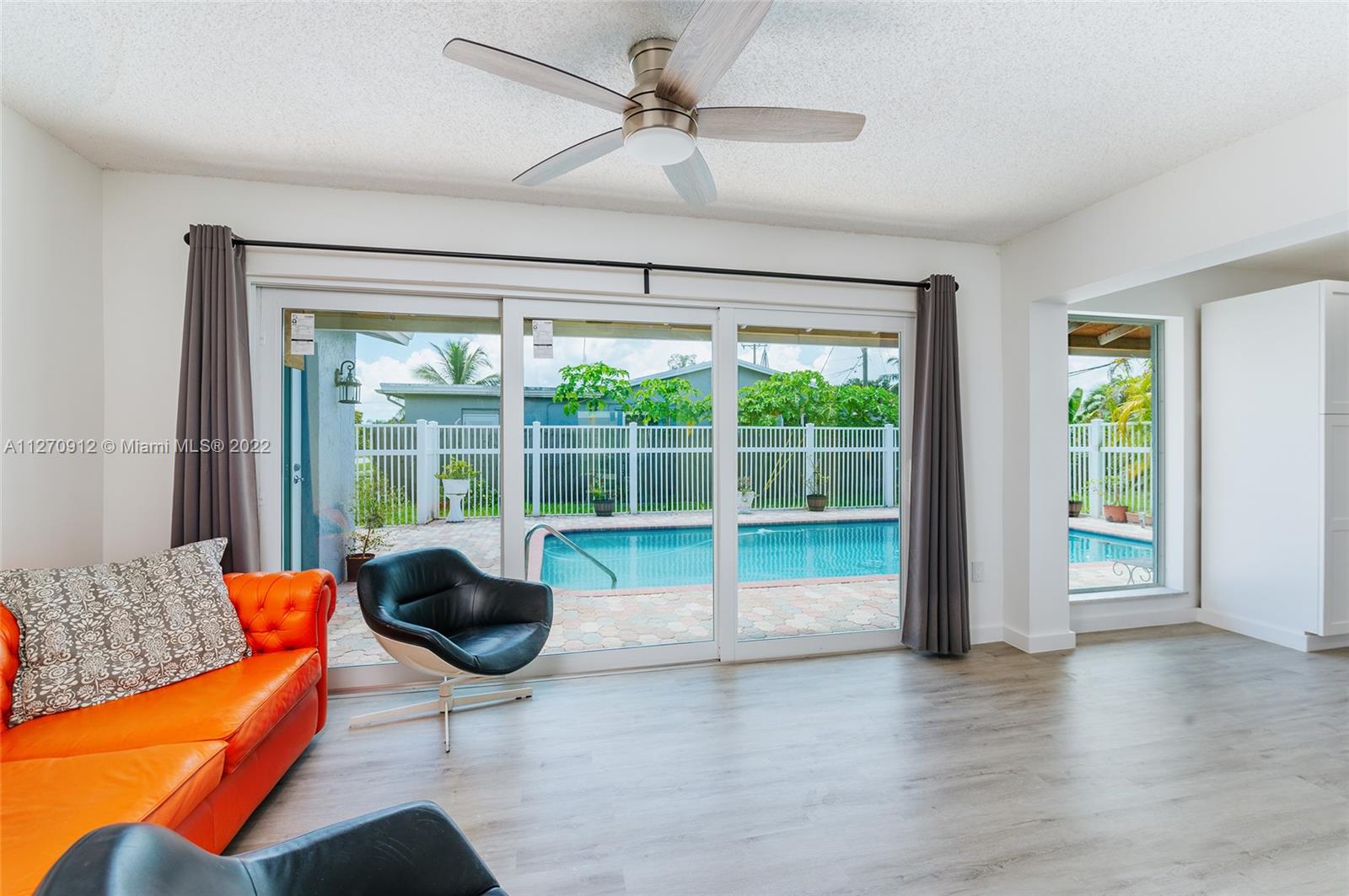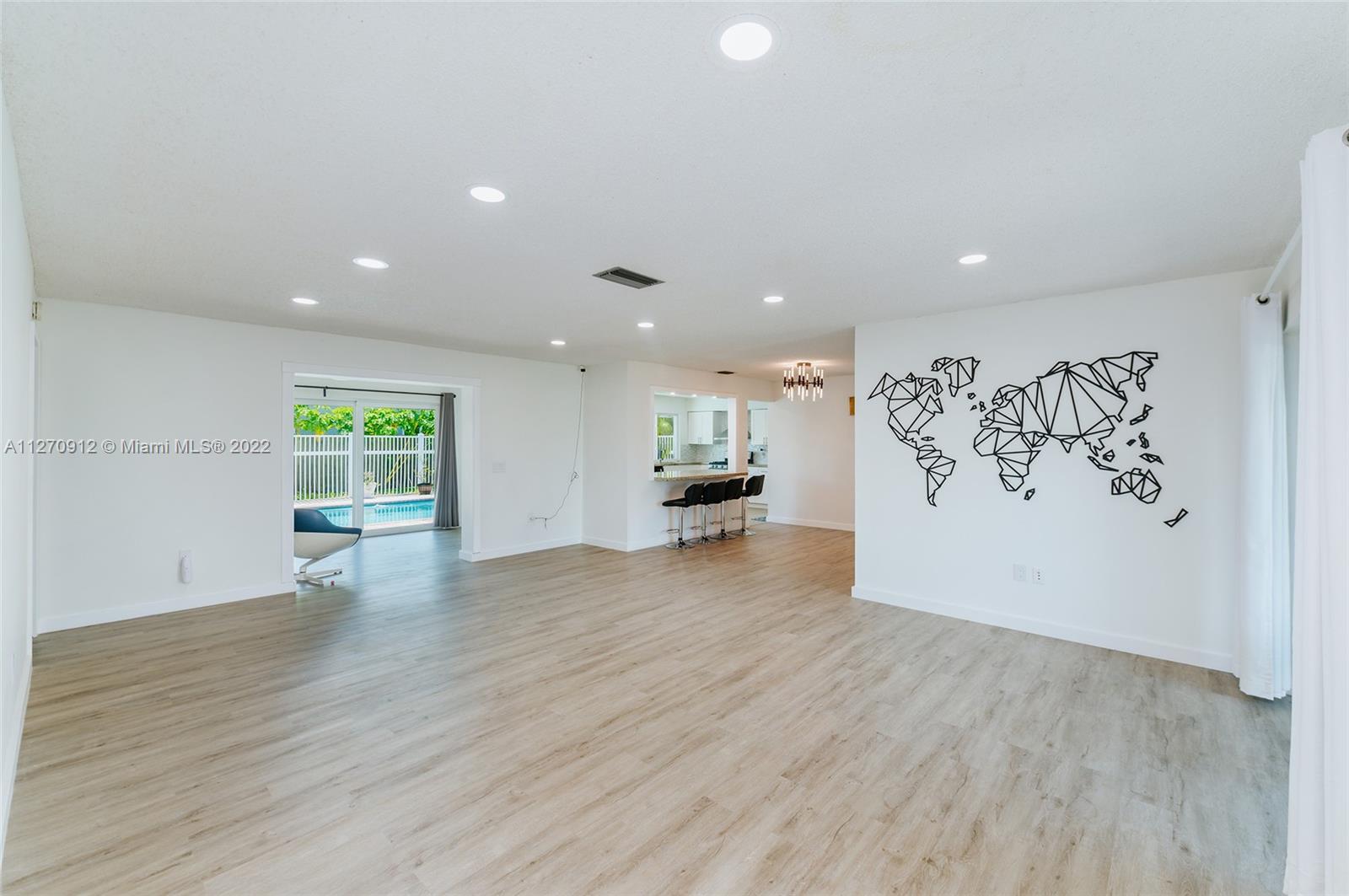 Not much upgrading to do in this beautiful upgraded 3 br. 2 ba. home. You will walk into this home and notice so much living space right from the beginning. Impact windows and doors. New roof installed last year, 100% Vinyl flooring with PVC baseboards. New air handler and condenser. Gas line for Dryer and range. LED recessed lights. Gorgeous new kitchen that overlooks the pool. Master bath has a beautiful walk in shower as well as a door to the outside patio/pool. Hallway bathroom remodeled with tub and shower. 3 access points for internet, living room, TV area, and inside the master closet for security purposes (security cameras etc.) All the walls have been been painted white for a blank canvas. Separate laundry room off the kitchen with door that leads outside and to the garage.