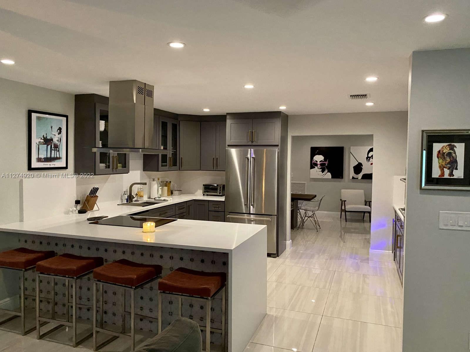 Modern perfection in acclaimed Coral Ridge Isles. Just 2 short miles to the beach, this large 4BR home just underwent a dramatic renovation. Open floor plan perfect for entertaining. Tons of natural light. Impact windows and doors throughout. Two car garage. Circular driveway. Barrel tile roof. Multiple indoor/outdoor living areas. Custom kitchen with chef grade appliances. LED recessed lighting. 32x32 porcelain tile. Large bedrooms with separate seating areas in each. Lush, private landscaping. Top rated schools. A remarkable, one of a kind home. Furnishings are negotiable.