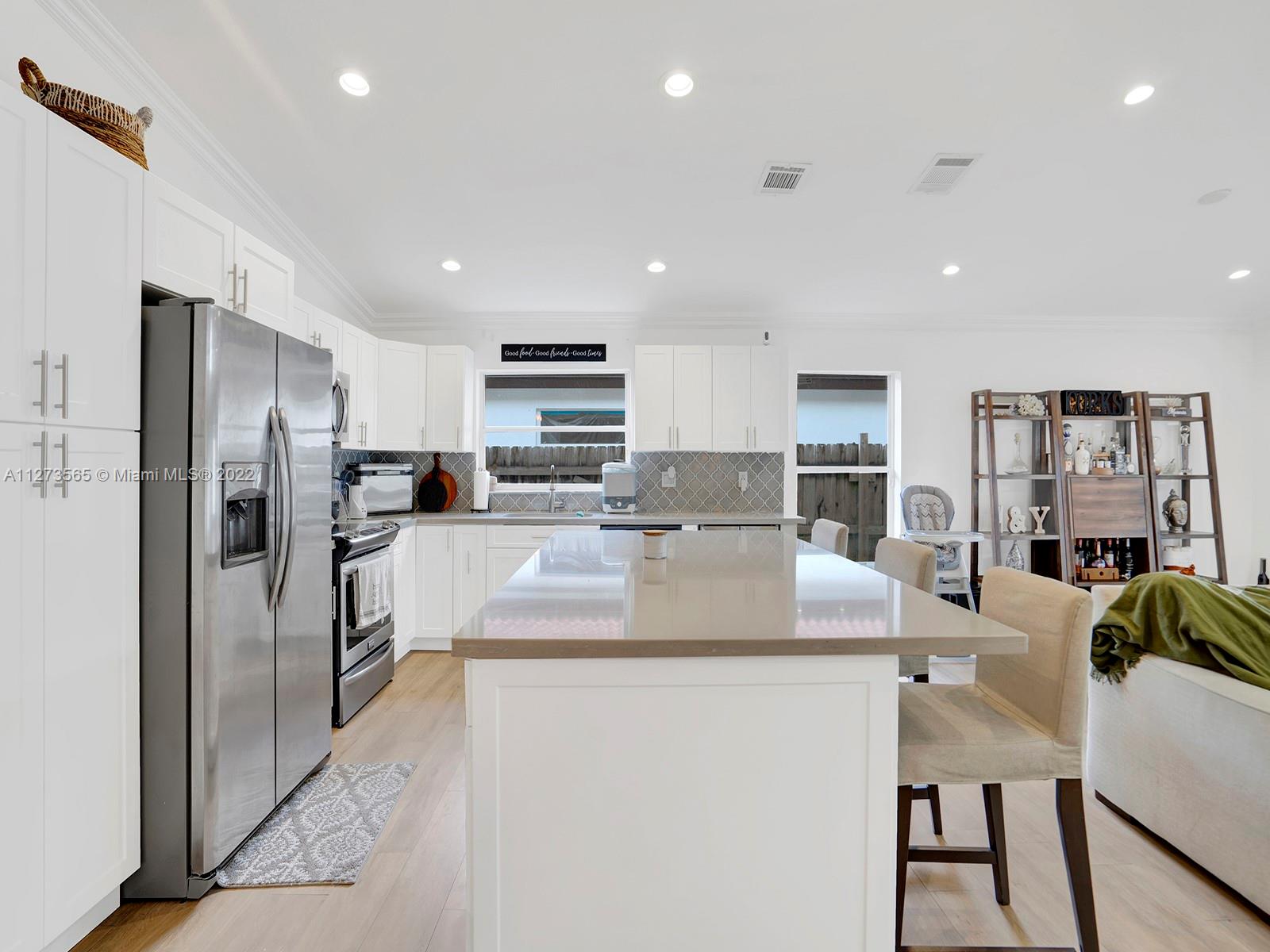 This 3 bedroom 2 bathroom home is full of upgrades! Perfect for family gatherings, located in a safe and quiet neighborhood close to shopping & dining (high demand area)! Enjoy the open floor plan, High ceilings, custom windows provide plenty of natural lighting, expansive yard covered in turf, crown molding, porcelain tile throughout, freshly painted , & custom built in master closet. The Beautiful remodeled kitchen is the heart of the home complete with a large customized (quartz) island with extra storage (great for entertaining) , & new stainless steel appliances. Home also has updated lighting throughout entire home. Large master bathroom with separate tub & shower, & double sinks. Enjoy the fully fenced backyard perfect for kids & pets.