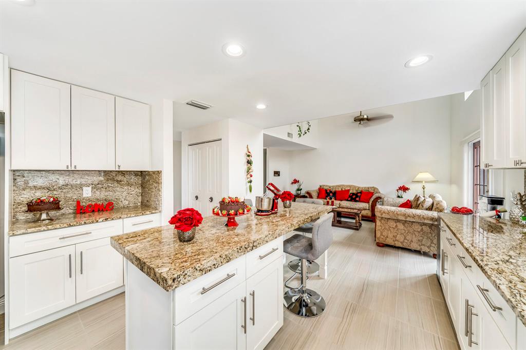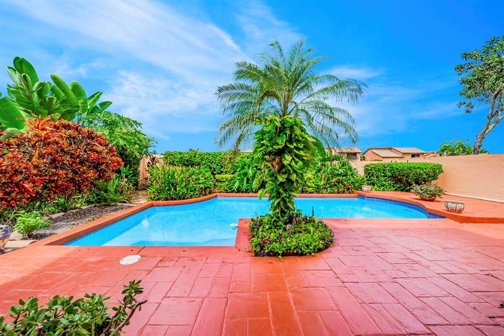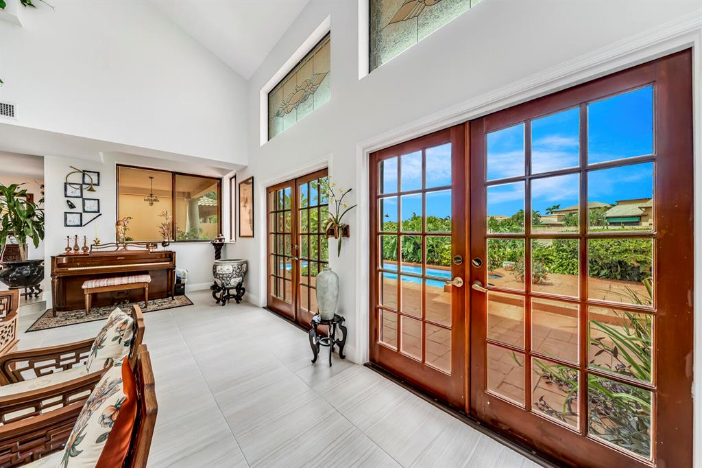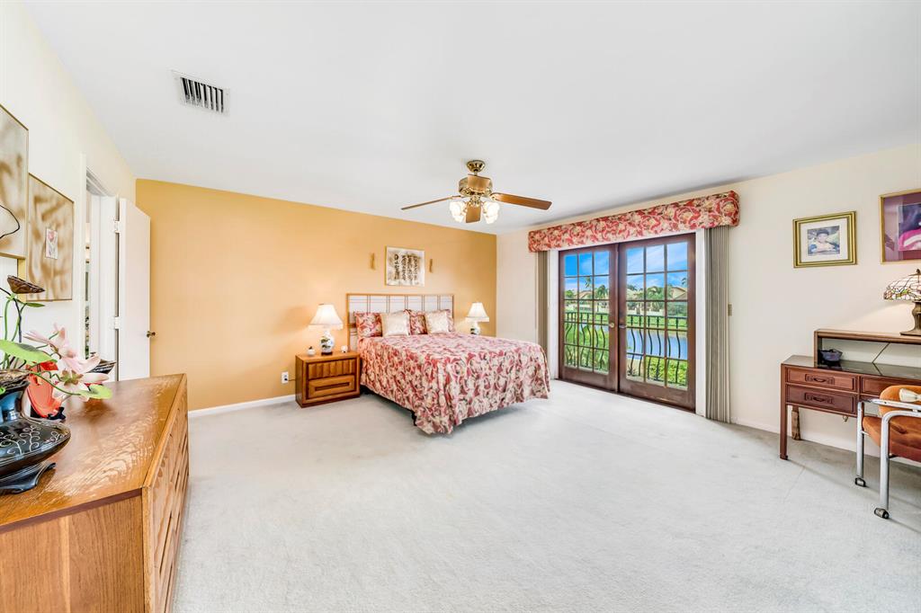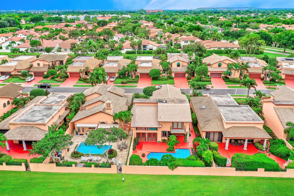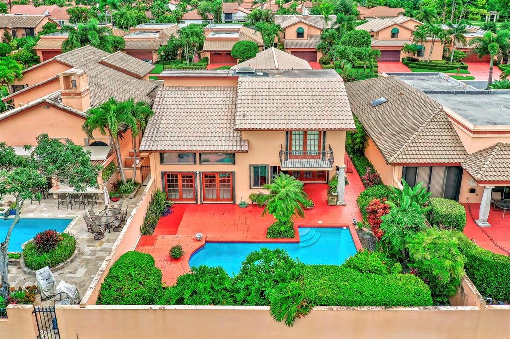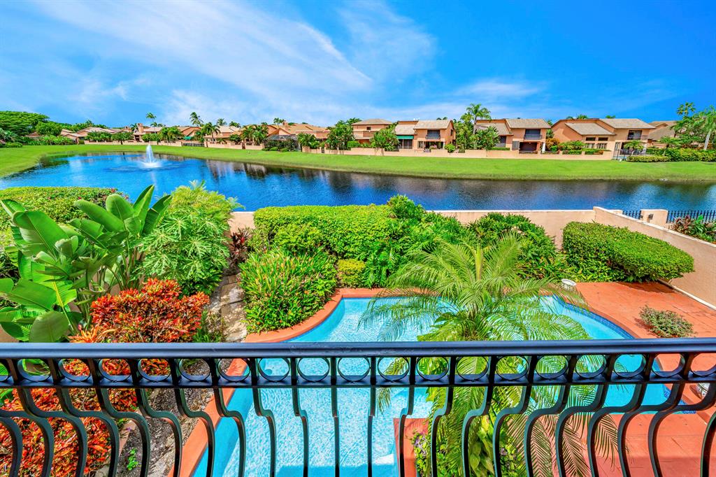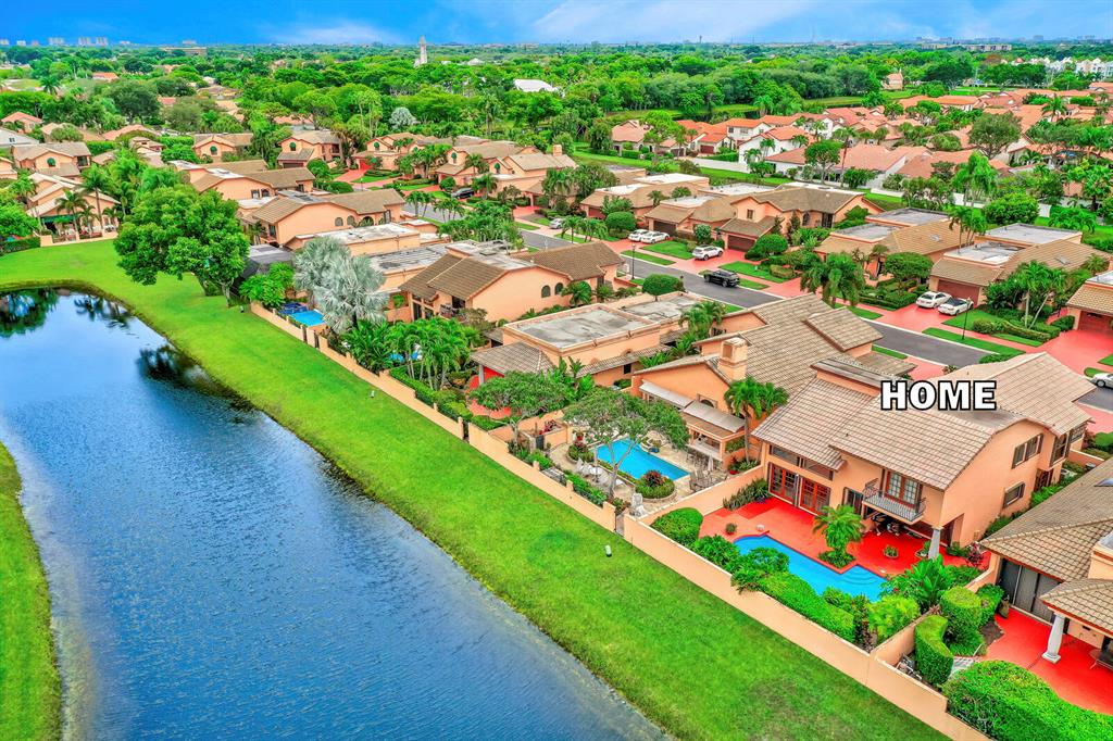 Wow!! Spectacular Mediterranean ''Monte Carlo'' Largest Model Home in Boca Pointe's Villa Flora. Featuring 4 Spacious Bedrooms (all bedrooms have large walk-in closets) 4 Full Baths/2 Car Garage/ Pool/on the water. Long driveway leads to the private & elegant wrought iron double gate/dramatic entrance w/soaring volume ceilings where you really enjoy the sense of openness, volume, & space. Newly remodeled gourmet kitchen w/tons of upgrades including granite countertops & backsplash, Stainless appliances, wood cabinets that go all the way to the ceiling, a huge island that doubles as a snack bar & 2 large pantry's. Family Room off the kitchen with Volume 17 foot ceilings. Large Formal Dining Room + Huge Living Room with 19 foot volume ceilings & views of the beautiful pool Plus