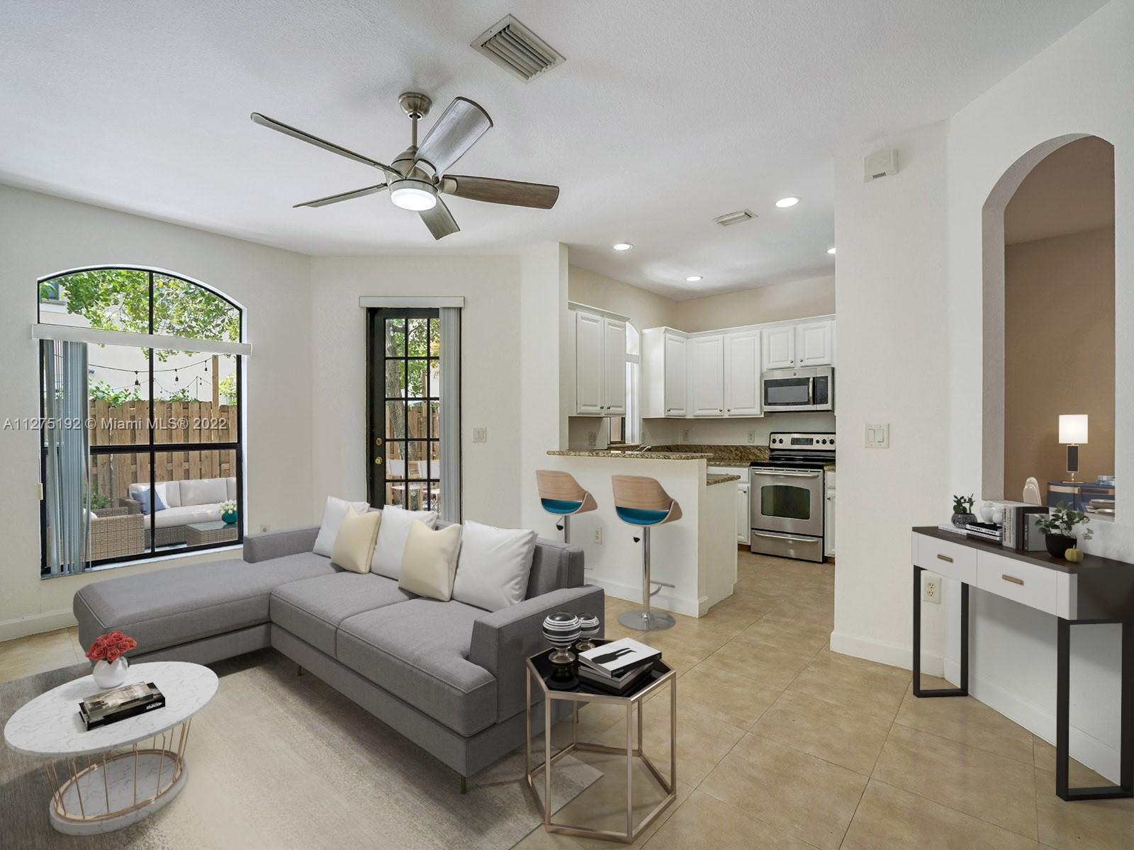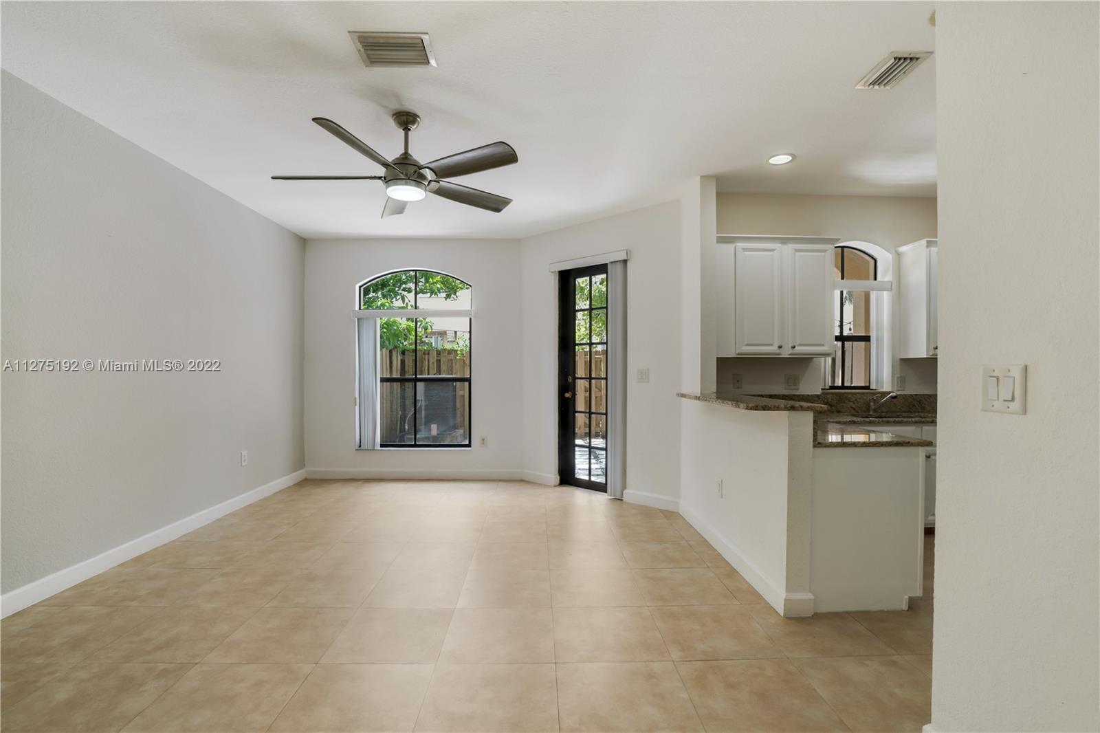 Beautiful and spacious townhome in the sought after community of Milan in Doral. Features 4 bedrooms, the main bedroom has a balcony with views to the backyard, large bathtub, separate shower and walking closet, 2.5 bathrooms, porcelain tile throughout, relaxing backyard with a beautiful tree, stainless steel appliances, New Air Conditioner, Less than 1 year old Washer, Dryer and Microwave, granite counter tops, 1 car garage and space to park 2 more cars at the front. Milan is a gated community in the heart of Doral, pool, gym, right next to the Veteran’s Park, a short distance to excellent schools, and on the same street as the U. S. Southern Command. All rooms are upstairs.