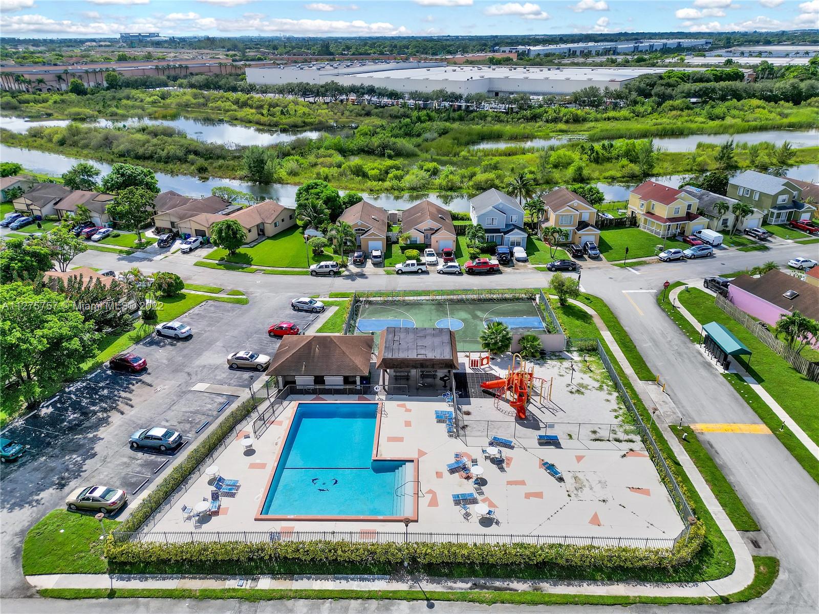 Enjoy all the bells & whistles of this sleek & modern 2 Bedroom 2 Bath home in the highly desirable Meadows of Miramar. East facing corner lot with beautiful lake views from living area, master & enclosed patio. Impact windows & doors. Flooring throughout resembling Oak wood finish. Freshly renovated bathrooms with modern stone tops. Custom linen shades & LED lighting throughout home. Contemporary kitchen with new appliances & custom wood cabinets to include deep drawers, pull out pantry & stunning 10ft island featuring an open kitchen concept. Lovely community recreation area featuring an array of amenities. One car garage with new Samsung washer & dryer and storage cabinetry. Located in the heart of Miramar just minutes from major highways. A one of a kind home in this neighborhood.