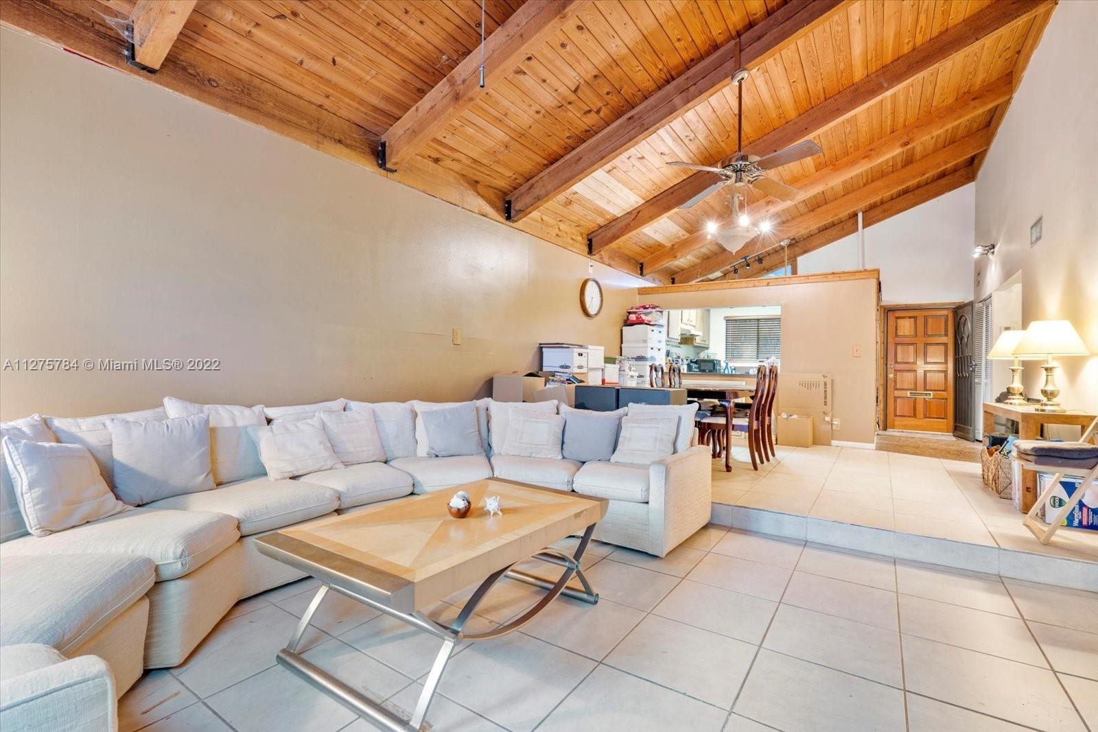 Single floor Villa with 2 bedrooms and 2 full bathrooms located in Palm Aire Village. This home features wood beams vaulted ceiling, tile flooring throughout, walk-in closet in both bedrooms. Stackable washer and dryer. Large fenced backyard with space to build a pool. New shed. 2 Parking spaces in front of the villa. The Roof is 2020, The A/C is 2022, Water Heater is 3 years old. Low HOA. No rental restrictions.