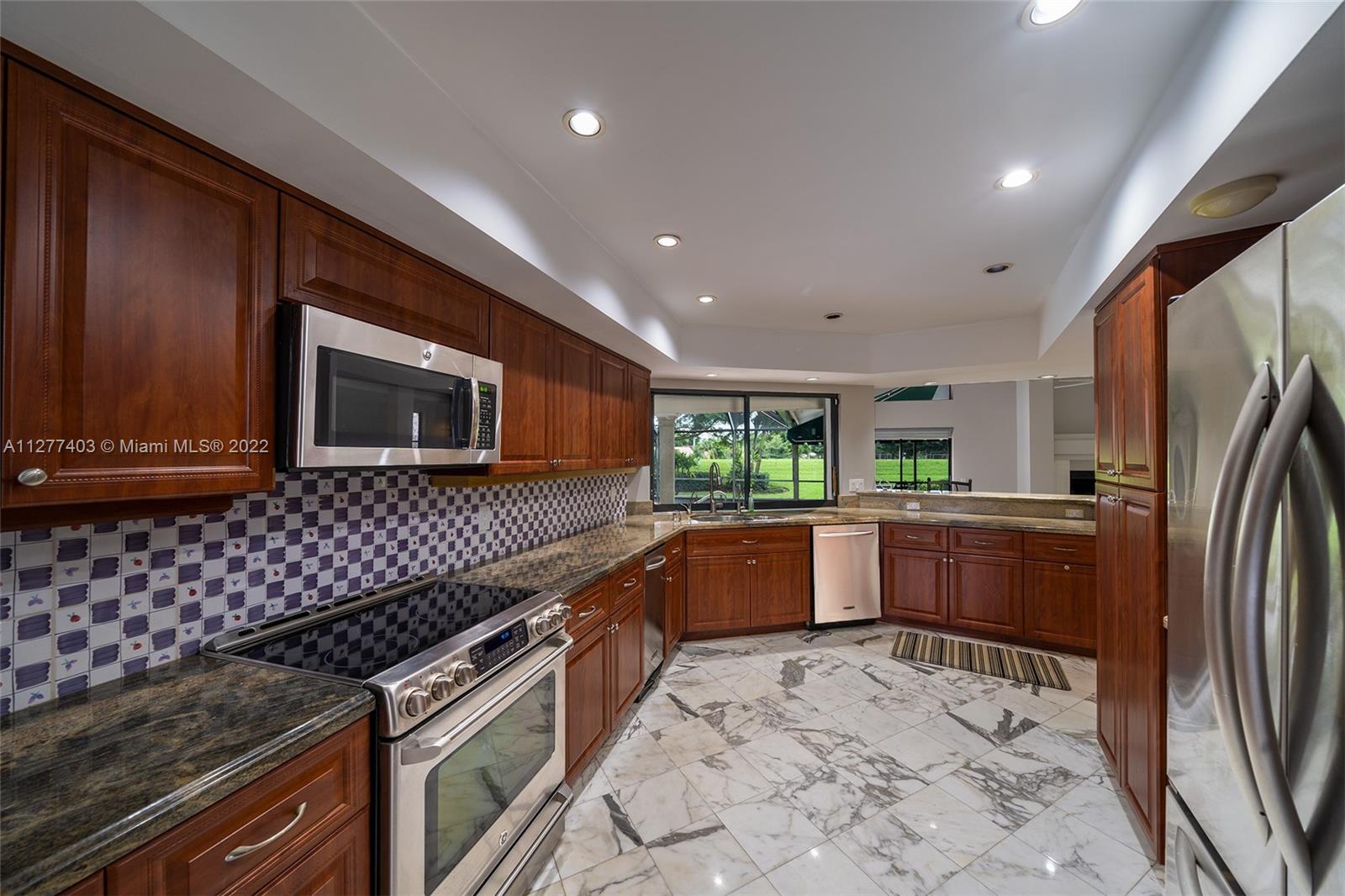 Stunning estate home in prestigious Encantada at Boca Pointe! This sprawling ranch home features 4243 square feet, 4 bedrooms plus 3.5 baths. The home has marble floors in main living areas. Perfect house for entertaining with kitchen and eating area open to den with bar area and cozy fireplace. Kitchen has tons of storage, granite counters and stainless appliances. Formal dining room and high cathedral ceilings throughout. Other features include central vacuum system, 2 zones A/C, extra-long driveway, his and her California closets in the primary bedroom, extra-large primary bath, alarm system, and so much more! Don't miss this one! Equal Housing Opportunity.