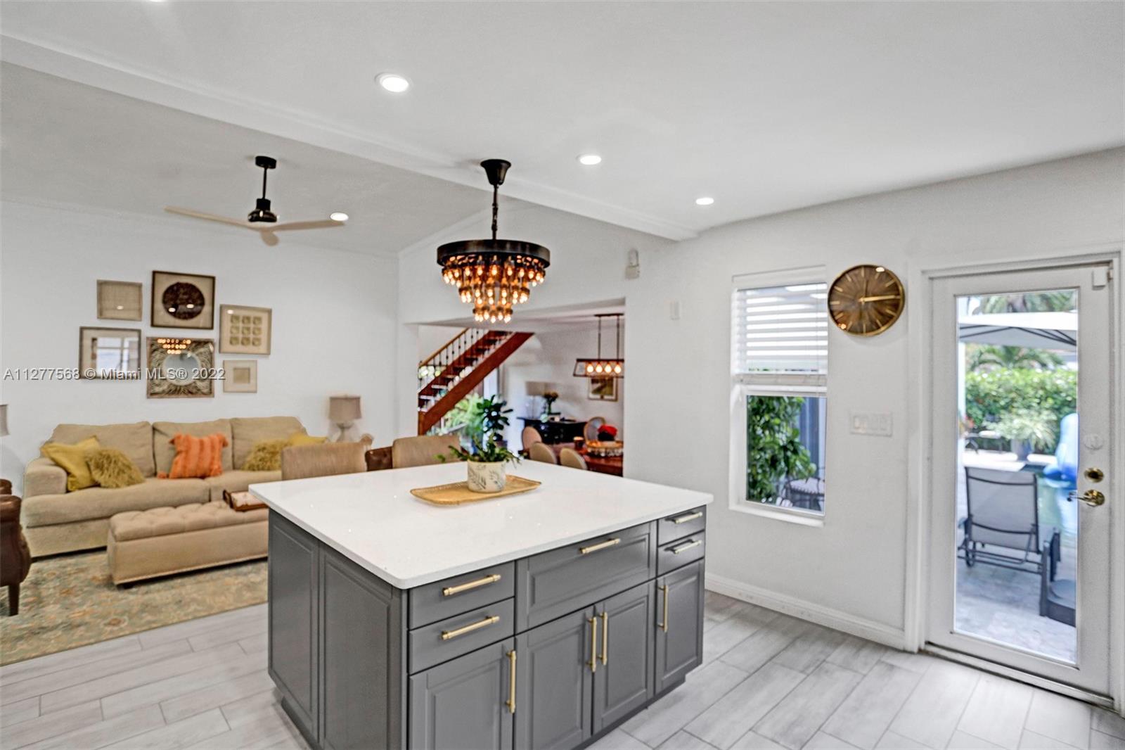 FANTASTIC POOL HOME IN HOLLYWOOD LAKES! THIS 2 STORY, 5 BED, 3.5 BATH HOME OFFERS A POOL & 2 CAR GARAGE. FEATURING A BEAUTIFULLY UPDATED & OPEN KITCHEN W/ GRAY CABINETS, FARMERS SINK, SS APPLIANCES, QUARTZ COUNTERTOPS, MOSAIC BACKSPLASH & ISLAND THAT SEATS 4 W/ STORAGE BELOW. PORCELAIN TILE IN THE SPACIOUS LIVING AREA & RUSTIC BRICK FLOORING IN FORMAL DINING. 3 BEDS & 2.5 BATHS DOWNSTAIRS WHILE 2 BED, 1 BATH PLUS KITCHENETTE & FAMILY ROOM ARE LOCATED UPSTAIRS. ADDITIONAL FEATURES INCLUDE UPDATED BATHROOMS, A SPLIT FLOOR PLAN, LAUNDRY ROOM, RECESSED LIGHTING,SPACIOUS DOUBLE CLOSETS IN THE PRIMARY SUITE, WOOD STAIRCASE & VAULTED CEILINGS. THE HEATED SALTWATER POOL IS ONLY 2 YRS NEW & IS SURROUNDED BY A MARBLE PATIO. LOCATED JUST MINS FROM THE BEACH, FTL AIRPORT, AVENTURA MALL, i95 & MORE!