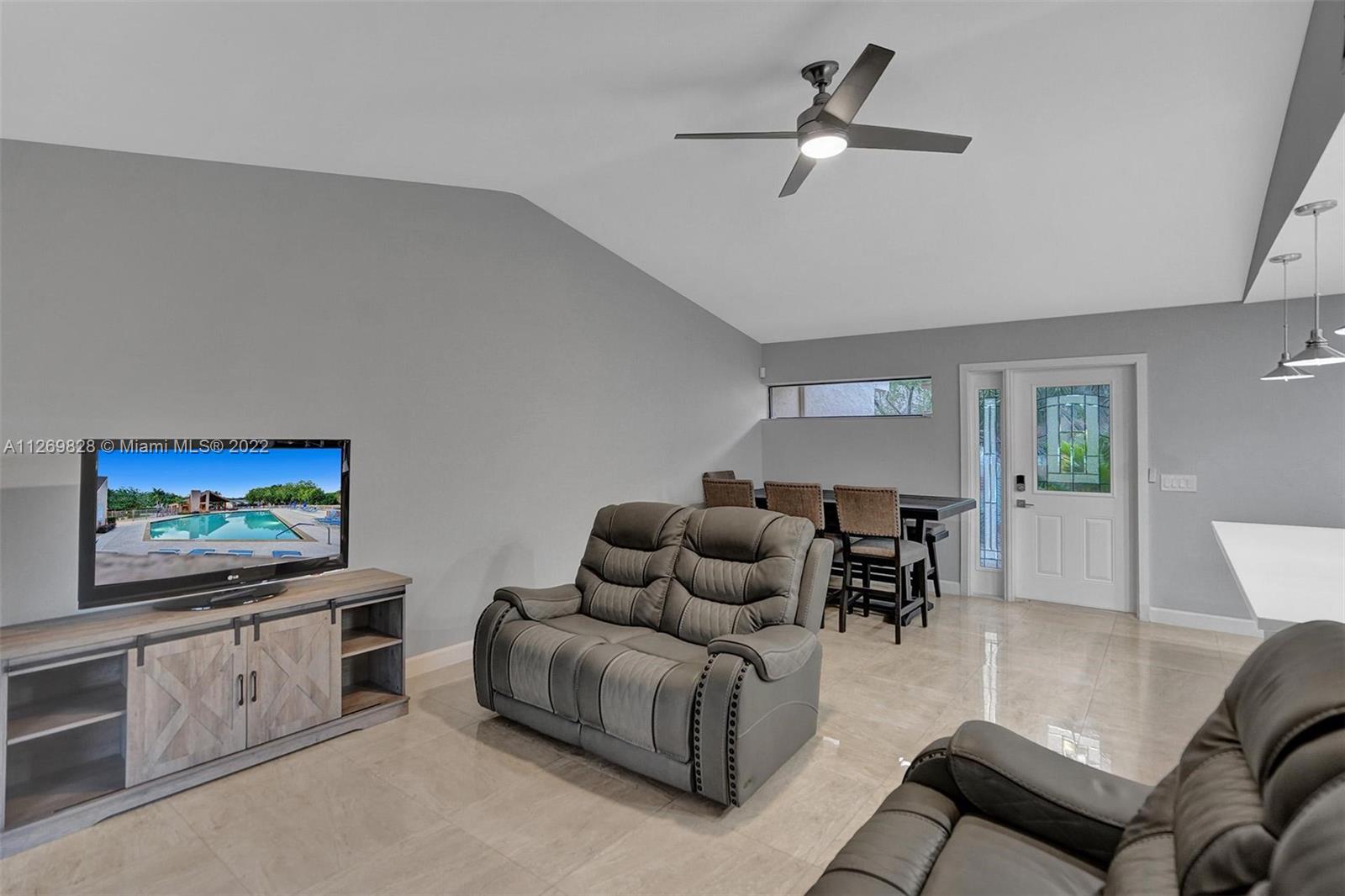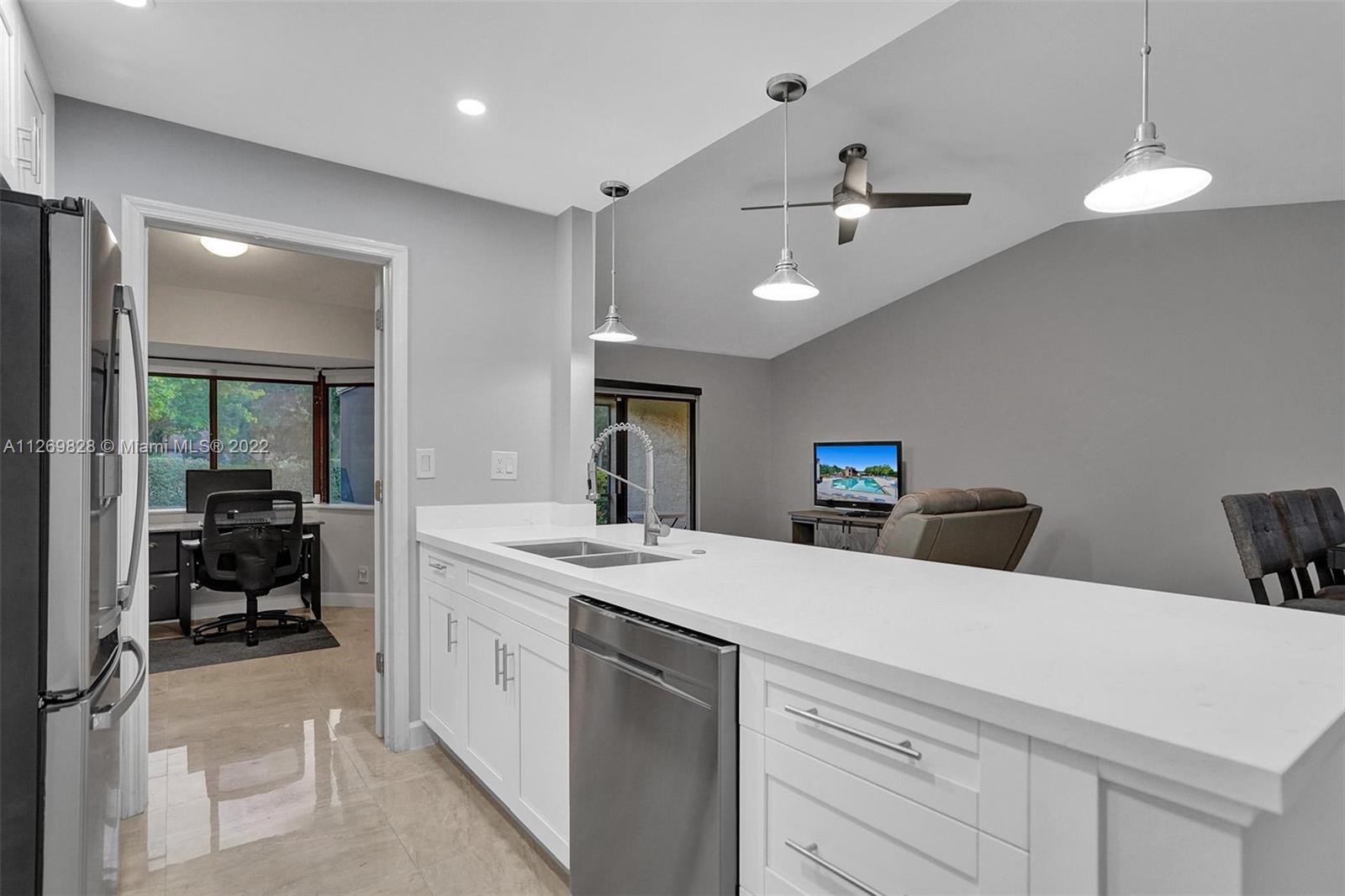 Fully Renovated home in sought after Chelsea community in the heart of Plantation. Brand new kitchen cabinets & countertops installed (2022), S.S appliances (2022), hurricane front door (2022), newer roof (2020), larger driveway then most for more parking space, and much more. Home office/den overlooking the water for peaceful work environment. Both bathrooms are recently updated along with plumbing, updated tankless water heater, newer A/C units, recently screened-in patio overlooking the water view, which is for perfect entertaining & relaxation. Community offers private maintained pool, child play area, walking/job/bike paths, BBQ/picnic area with NO Association approval required. Home is centrally located near all schools, hospitals, restaurants, shopping and more.