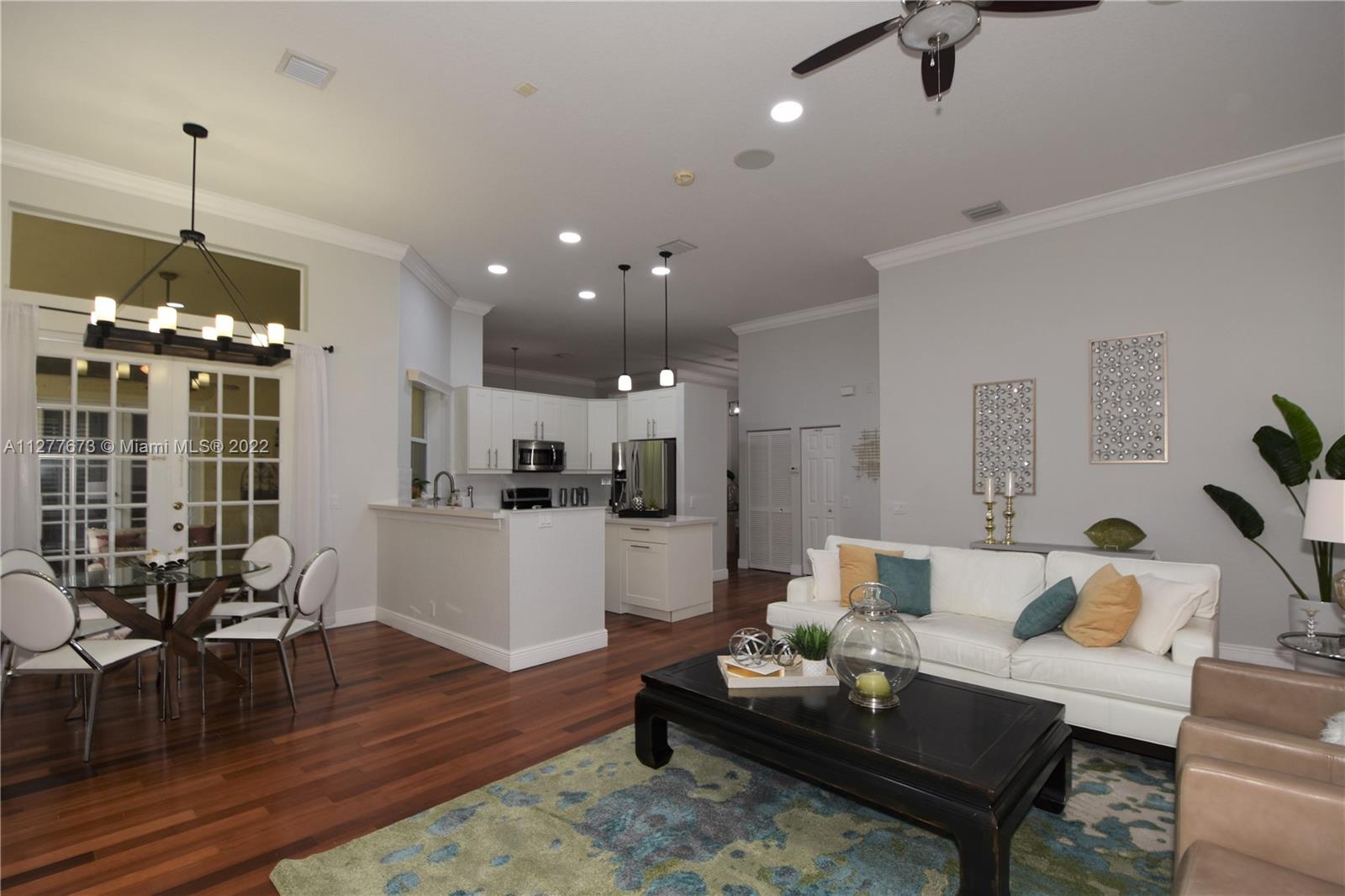 Live the South Florida dream in one of the top 10 rated cities to live in USA! Weston is a nationally acclaimed, culturally diverse, safe & secure community,w A+schools. Amazing clubhouse w 5 pools, basketball, volleyball, a play area 4 tots. Sitting across a quiet tree lined park, this beautiful home comes w soaring ceilings, tons of natural light, a modern gourmet kitchen, Brazilian cherry wood floors, 5 bedrooms, huge master suite w walk-in closets. This one is move in ready & has been meticulously maintained by its owners. The split floor plan, new kitchen, bathrooms, modern lighting, paint inside/out, bedroom floors, surround sound, EV charger will make you stay!! The zen garden was professionally designed to relax or build your dream pool, & the HOA maintenance fee is only $125 p/m.