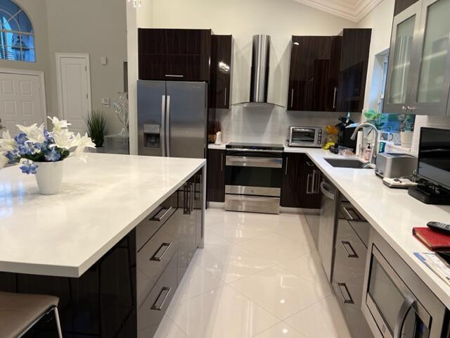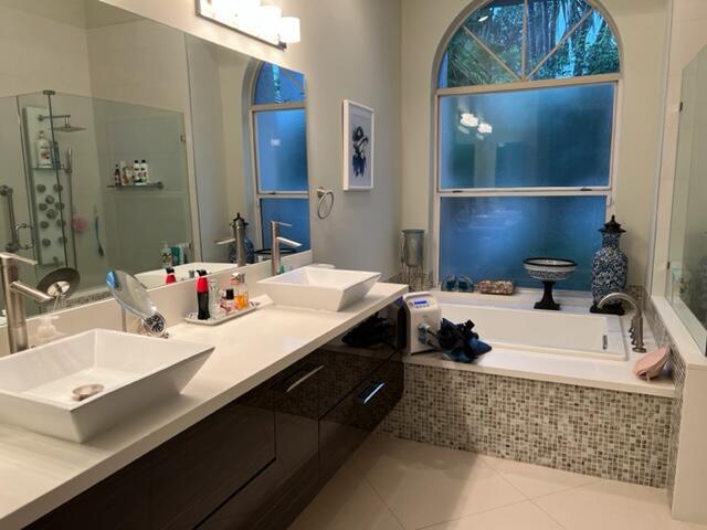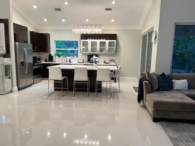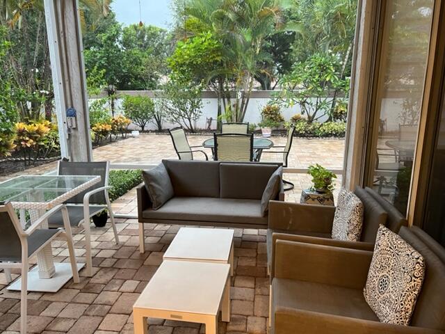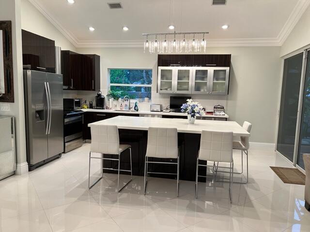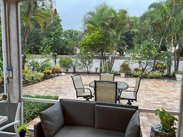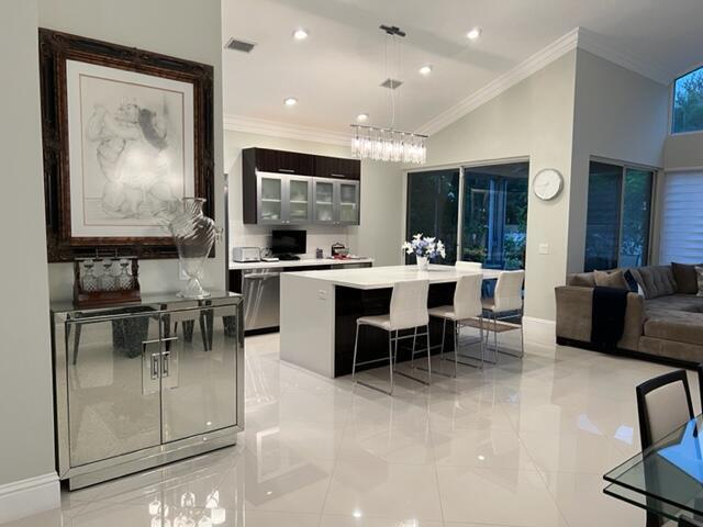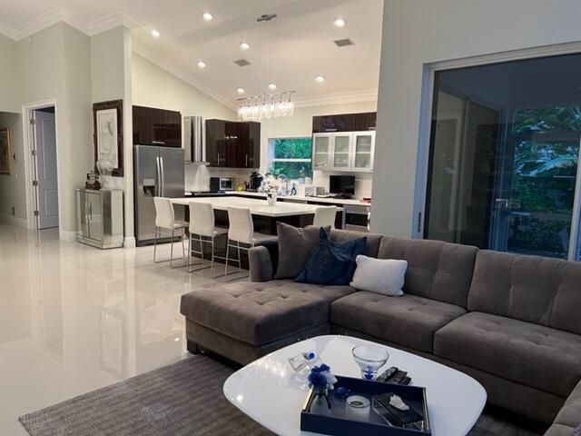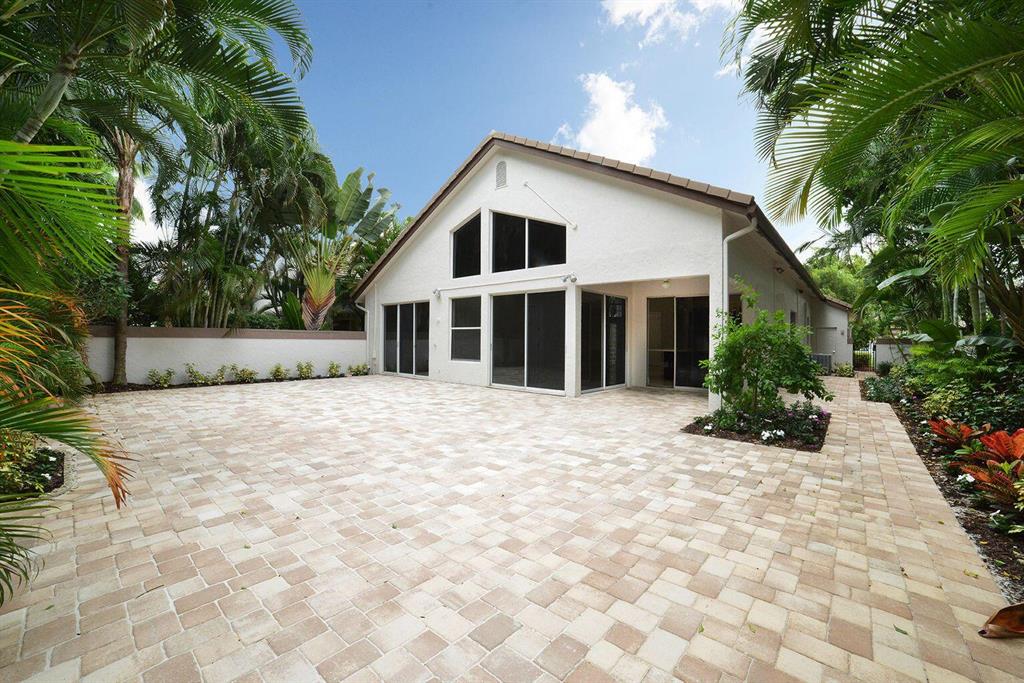 This sleek contemporary home is located in the thriving Country Club of Broken Sound in the heart of Boca Raton. This single story renovated home has an open floor plan with lots of light,& porcelain floors. The kitchen is adjacent to the living area with glossy cabinets, quartz counters and large center island. Floating vanities, frameless shower doors and quartz counters can be found in both bathrooms. The large private backyard features a covered screened in patio surrounded by beautiful brick pavers and plenty of Florida tropical landscaping. The village of Whisper Trace is a short walk or golf cart ride away from the main clubhouse, putting green, resort style pool and 23 har-tru tennis courts.This home is what you have been waiting for!
