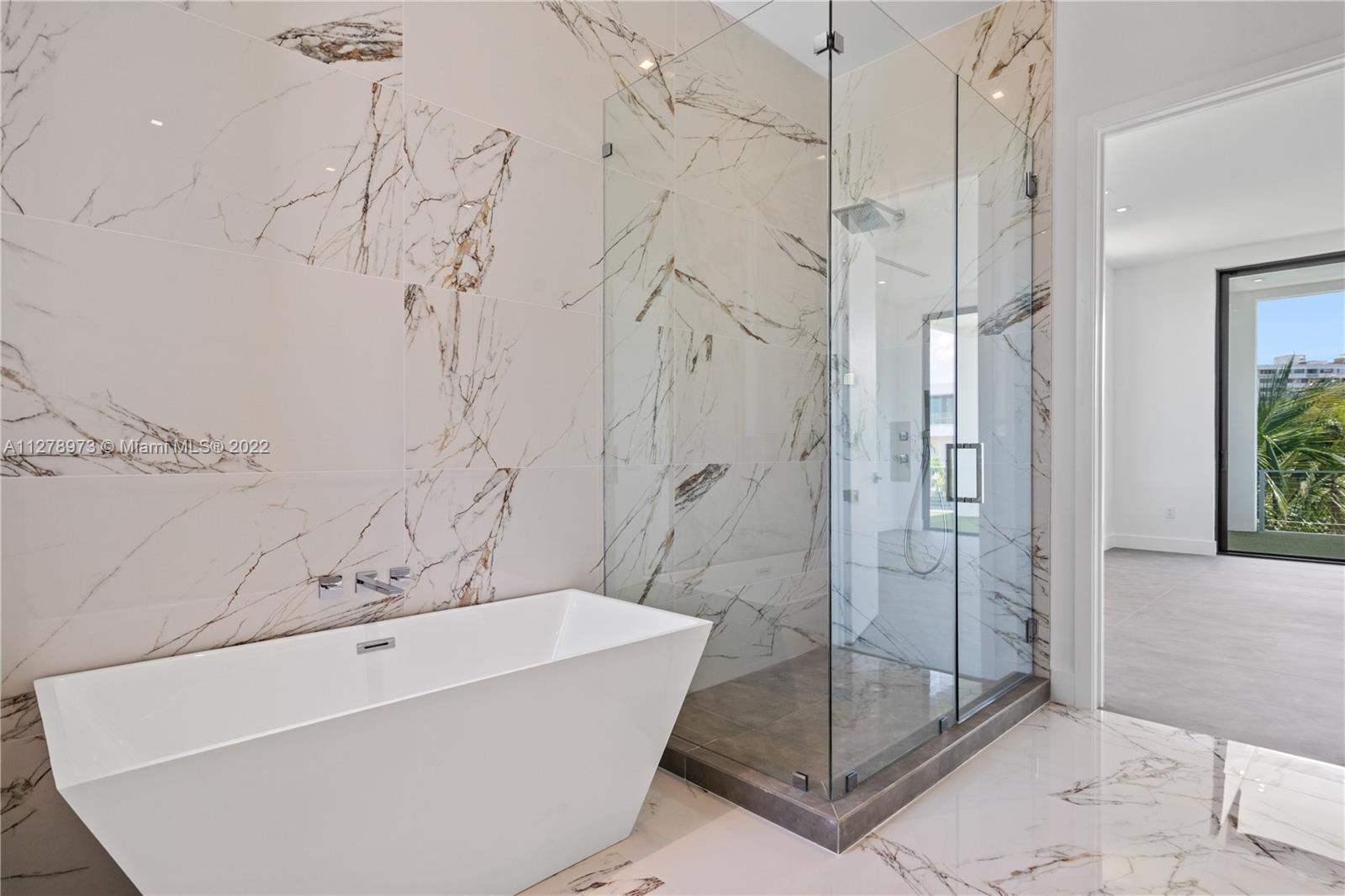 Just finished! Move in Immediately. NEW Modern 2 Story Waterfront Pool Home w/Ocean access, No bridges to Bay. 5 bed & 5 Baths (5th room set us as den/office/upstairs sitting area) on quiet cul-de-sac street. 1st and 2nd floors are solid concrete. Features: New synthetic Dock with 75 ft on the water, Quick ocean access! Water views from many rooms. Open floor plan with soaring high ceilings, impact/Hurricane rated glass and 10ft floor to ceiling glass, natural gas, and 2 car garage. Primary bedroom features huge balcony overlooking the pool and water. All closets built out! New Heated pool with inlayed waterfall Jacuzzi. Located in 24 hr guard gated Islands of Keystone Point, Miami, Florida.