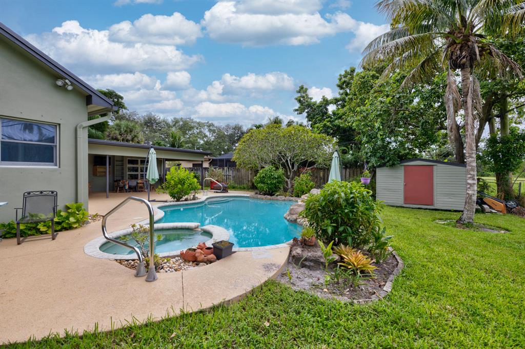 Spacious updated ranch style 4/3.5 pool home, No HOA in highly desirable Cooper City with tree lined streets plus amazing schools. This one-story home has 2 large master bedroom suites, split floorplan, open kitchen, plenty of cabinet storage, food pantry, pass through, eat in kitchen & additional dining area. Perfect for entertaining, large covered outdoor patio, pool with spa, heater and all the equipment you'll need. No shortage of parking, room for 6 cars in the driveway plus 2 car garage & additional boat/RV parking on the side. Dual zone AC, walk in closet, makeup vanity area, living & family rooms, laundry room inside, additional storage with multiple attic storage areas. Easy walking distance to executive golf course and Christie Schafale Park. Easy access to 95, Tpke, airport.